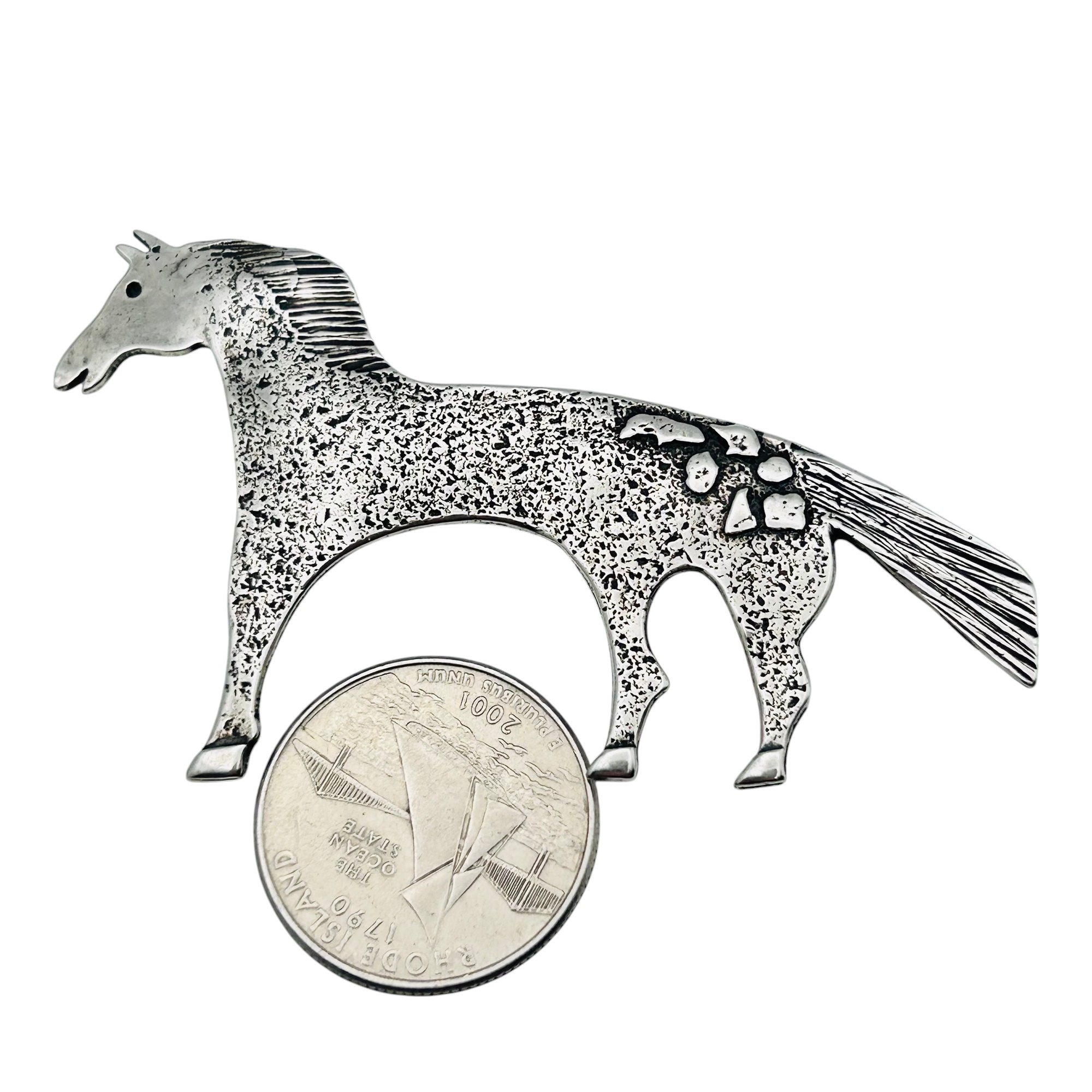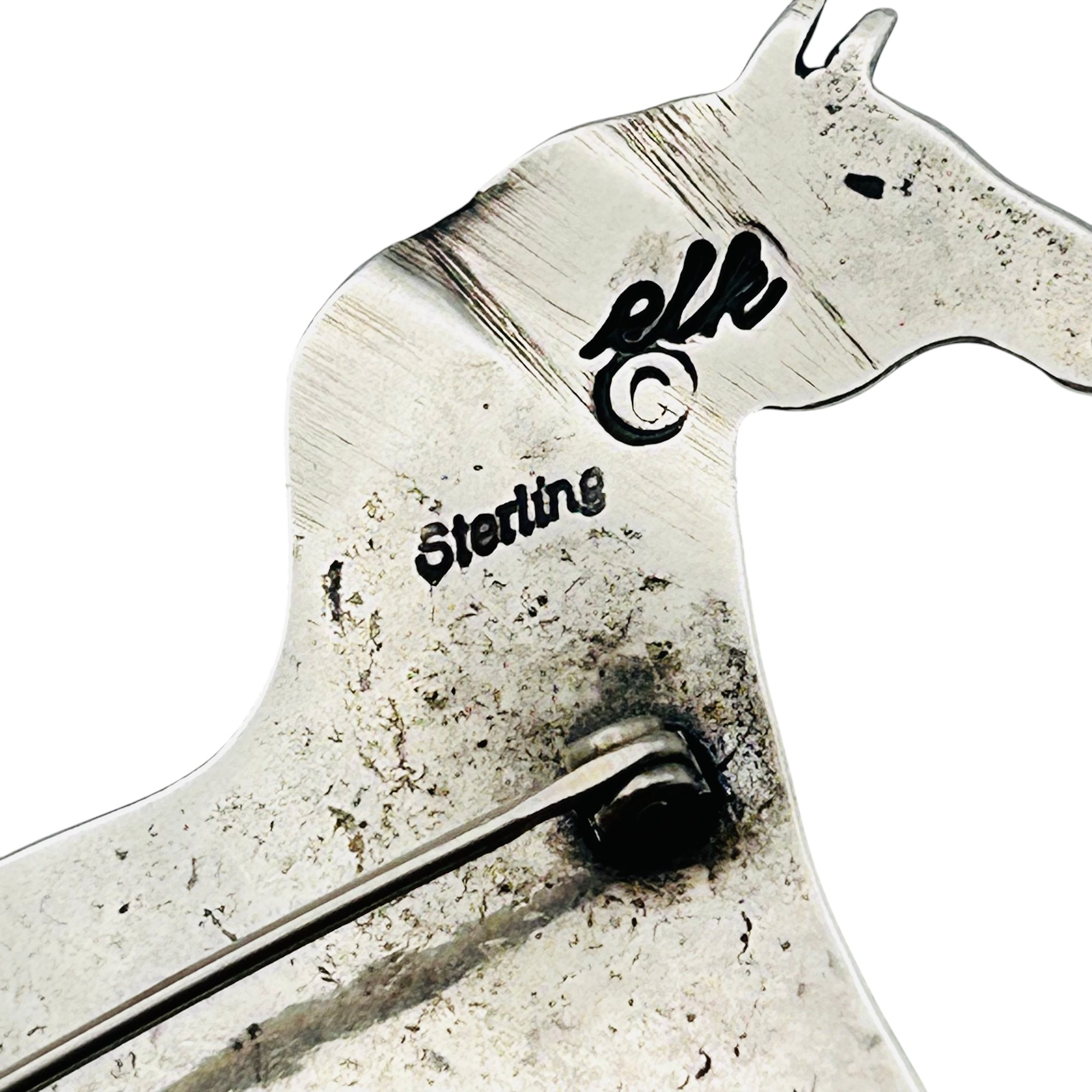 Navajo signed ELK Sterling horse brooch 11.91 g