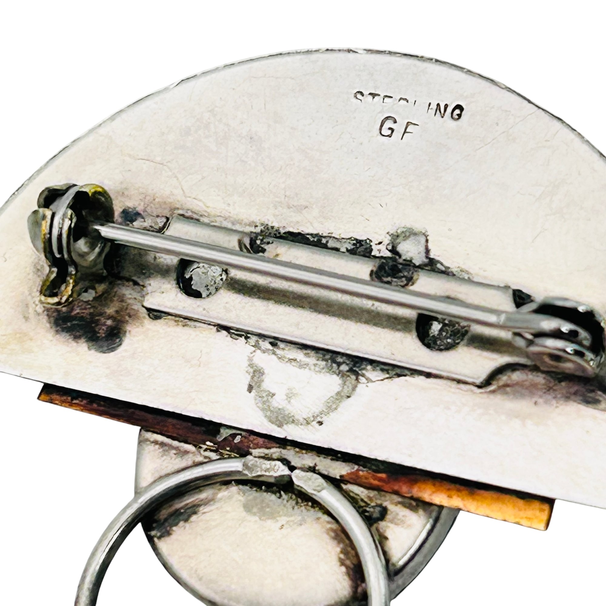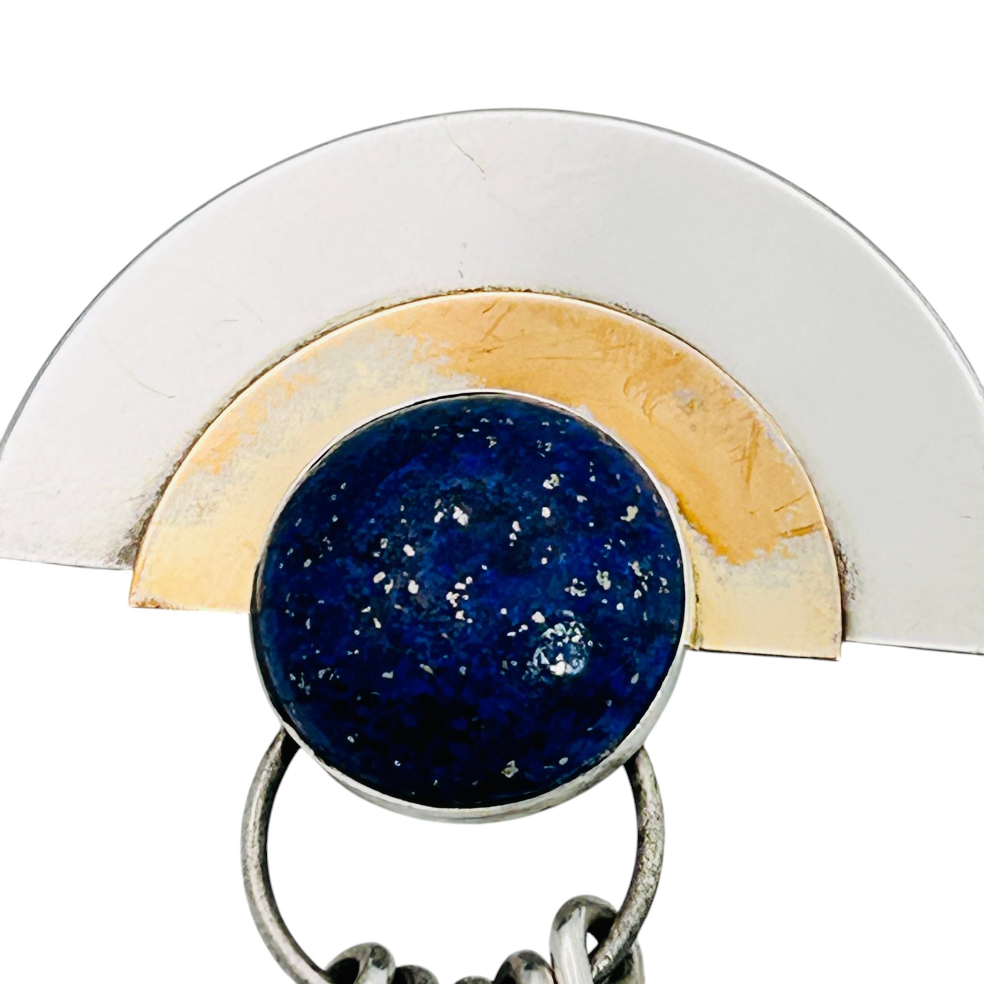 Navajo signed GF Sterling half moon lapis lazuli brooch. 9.7g