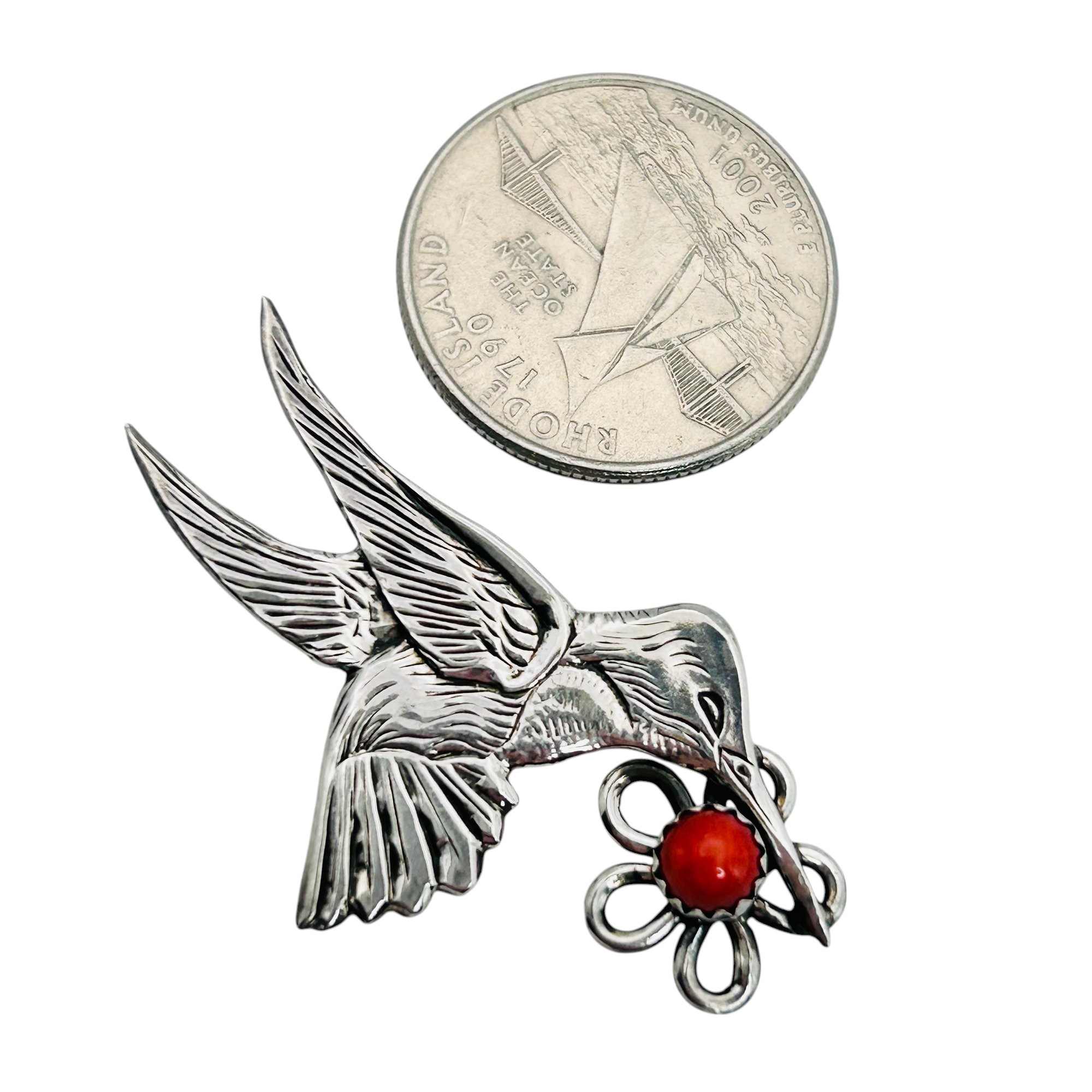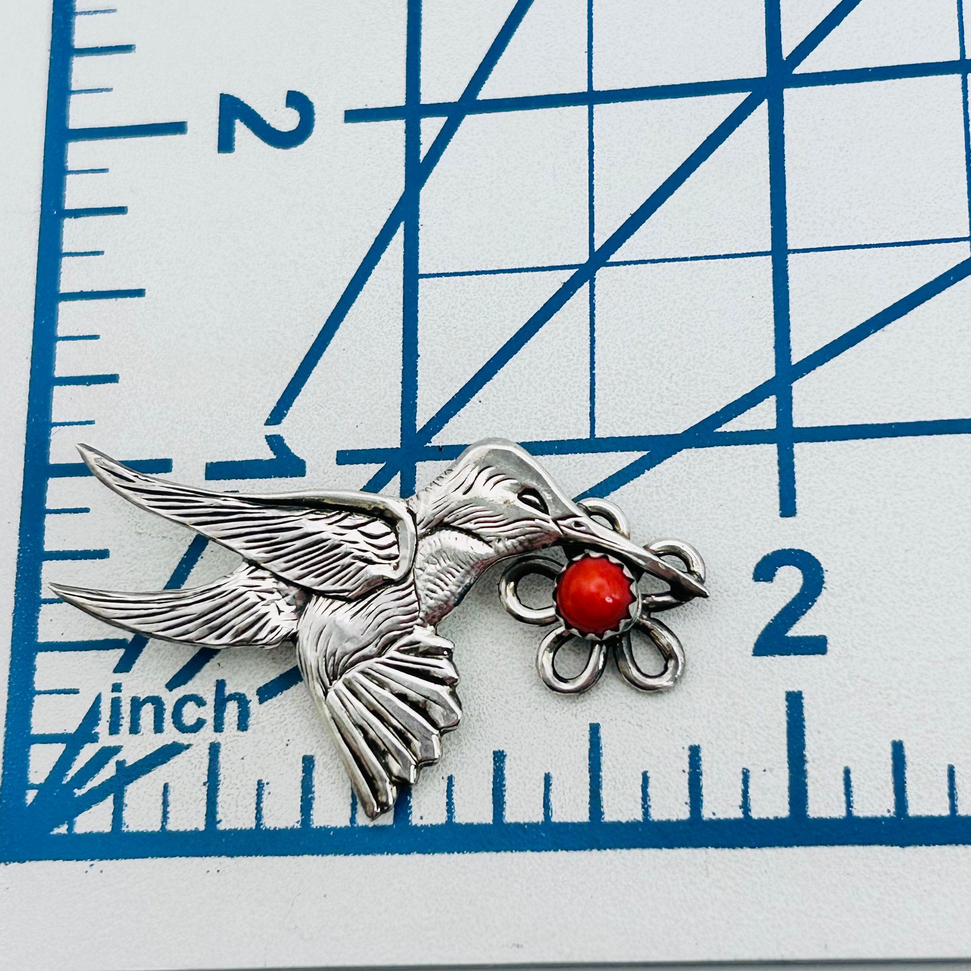 Navajo signed TG Coral Sterling bird PIN 4.48 g