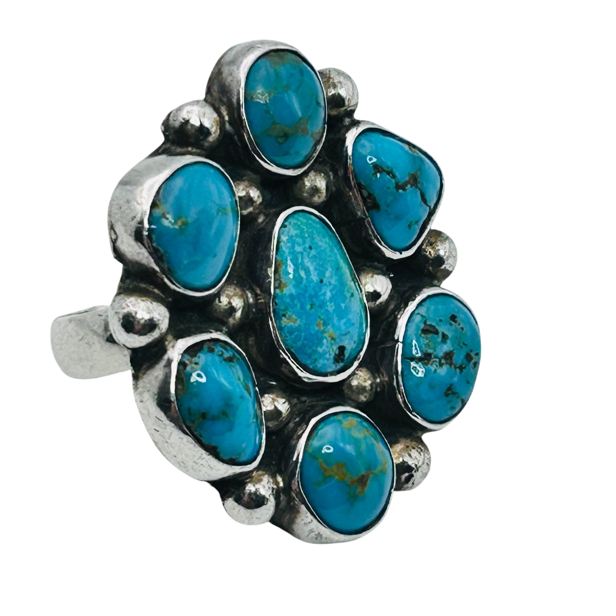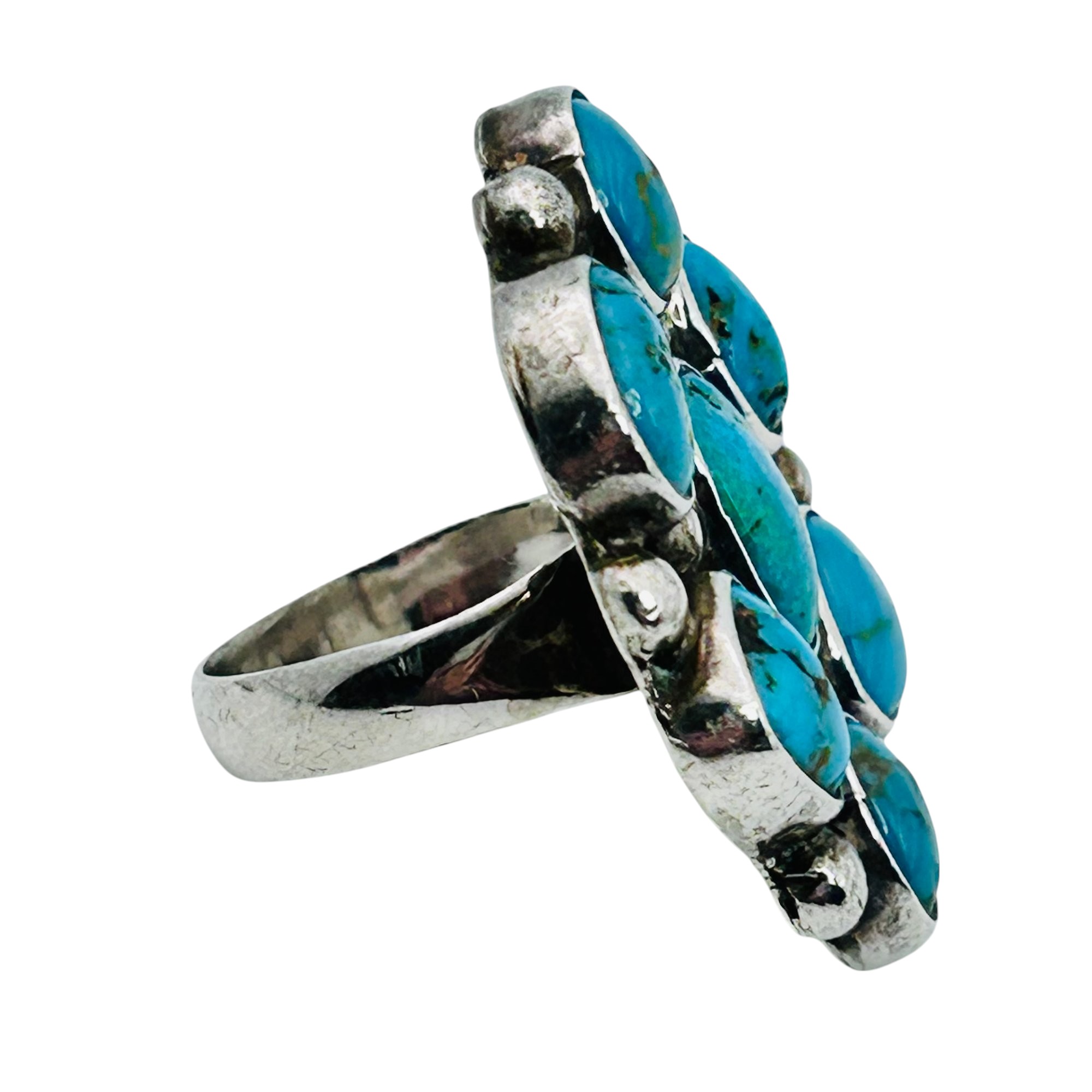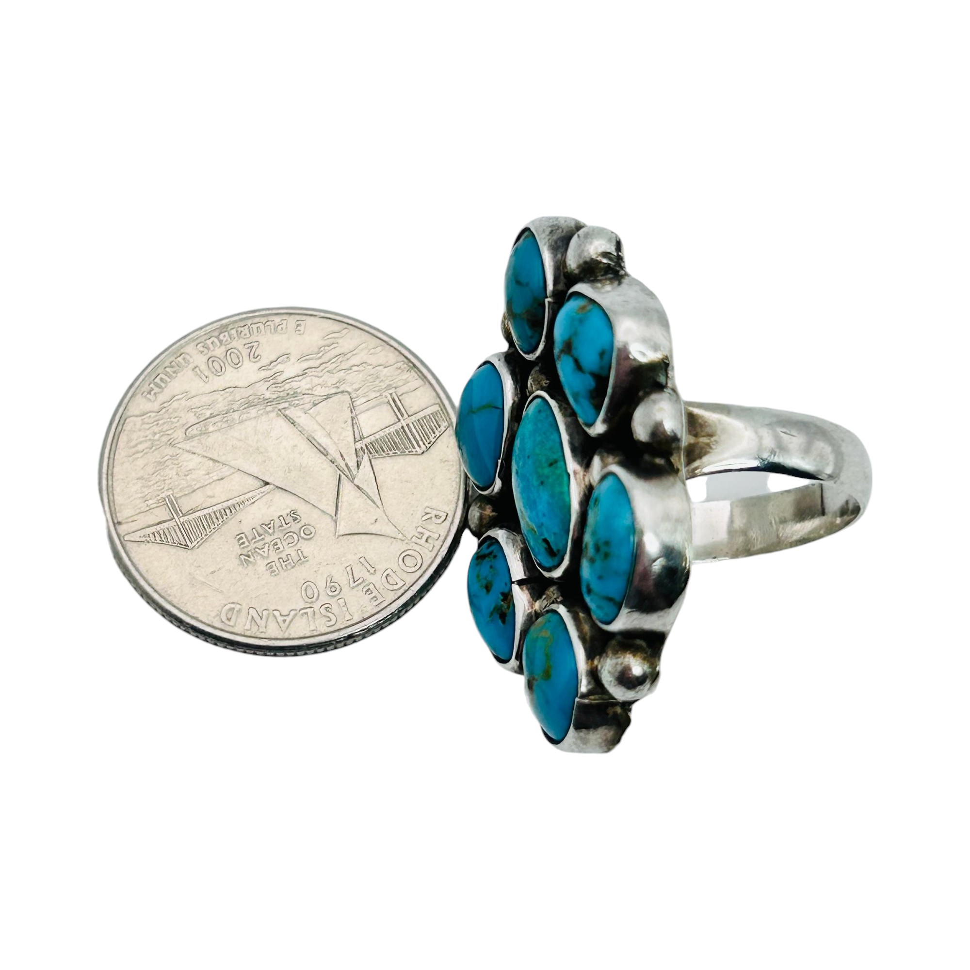 Signed PR Navajo Sterling cluster turquoise ring size 6 10.92 g