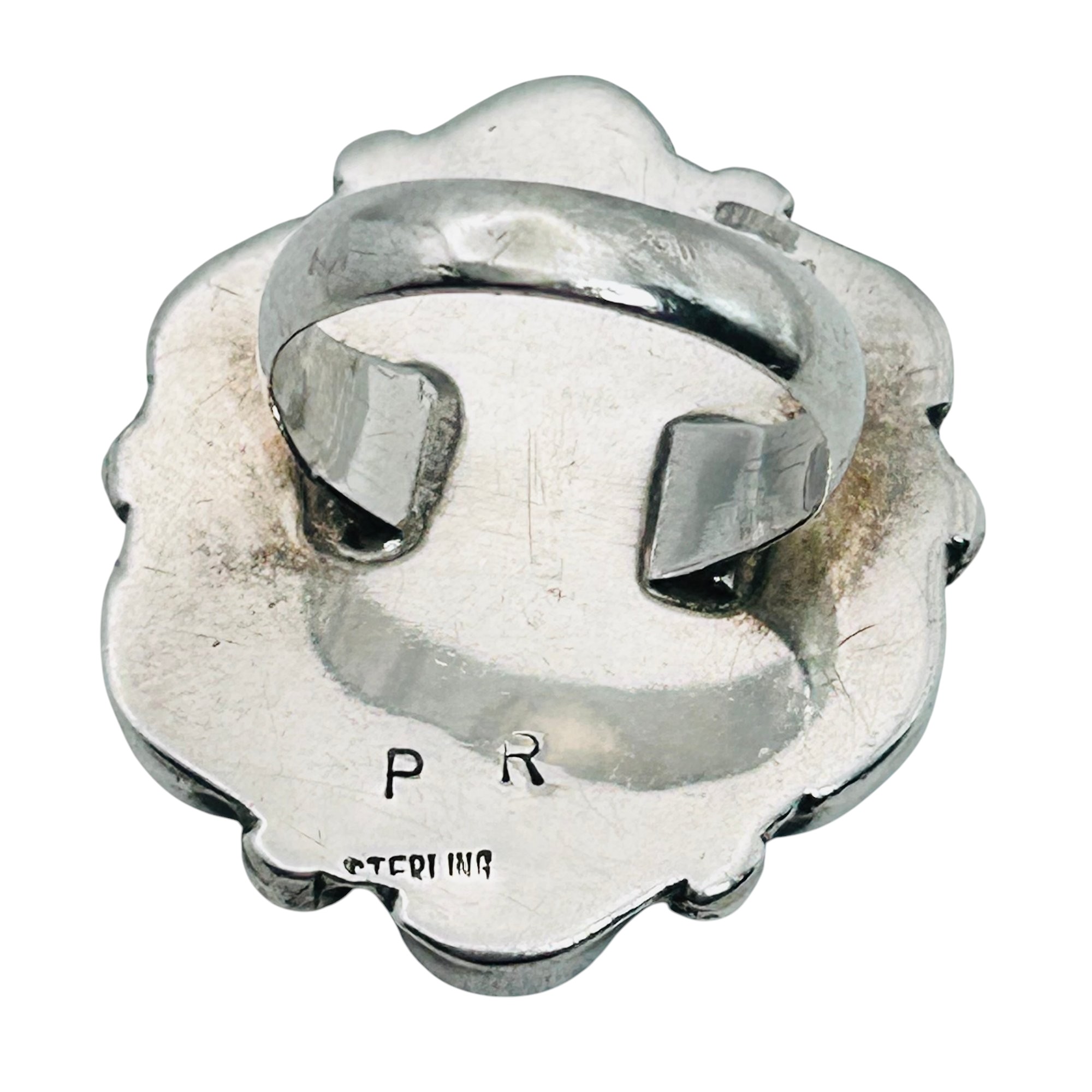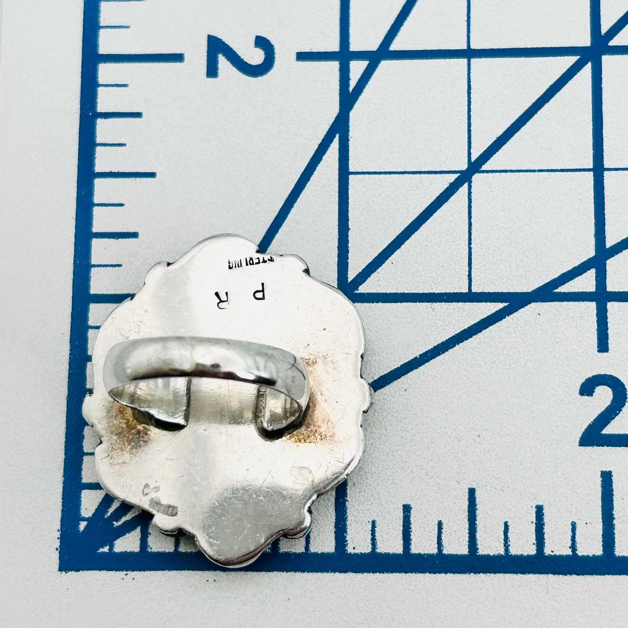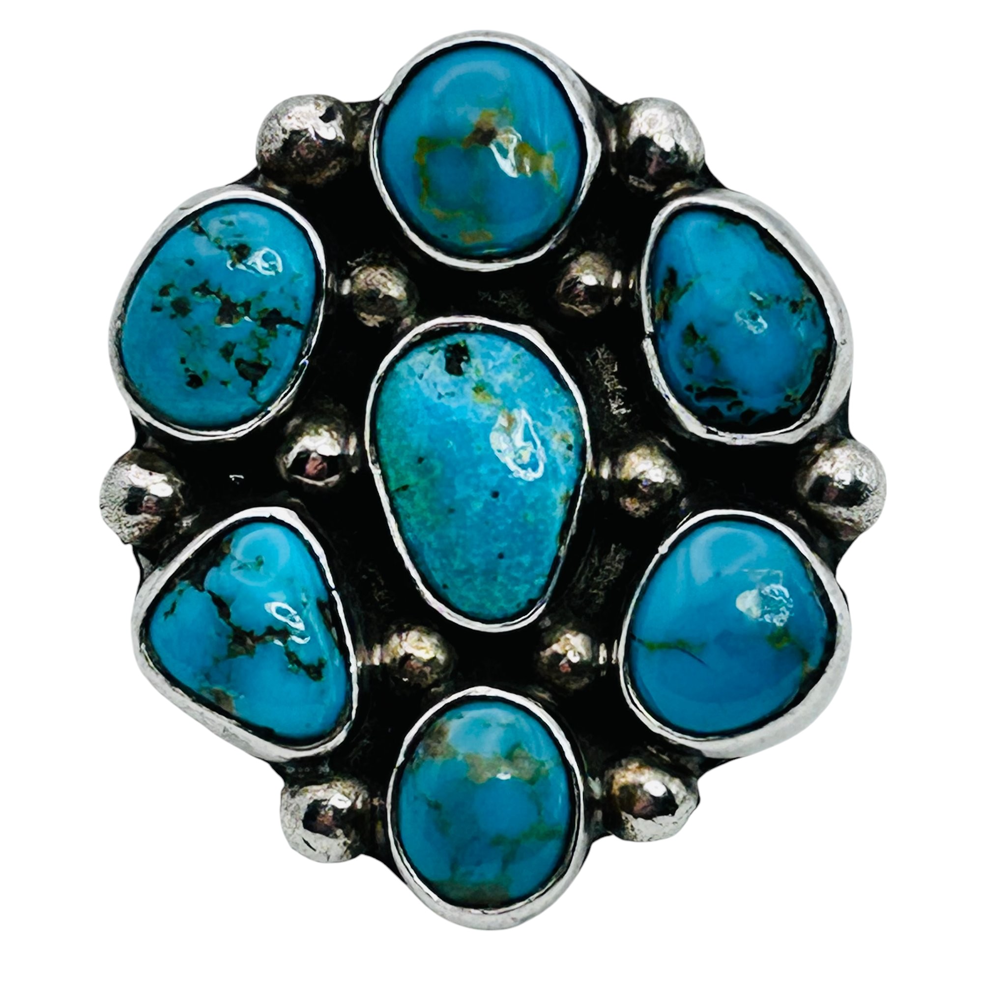 Signed PR Navajo Sterling cluster turquoise ring size 6 10.92 g