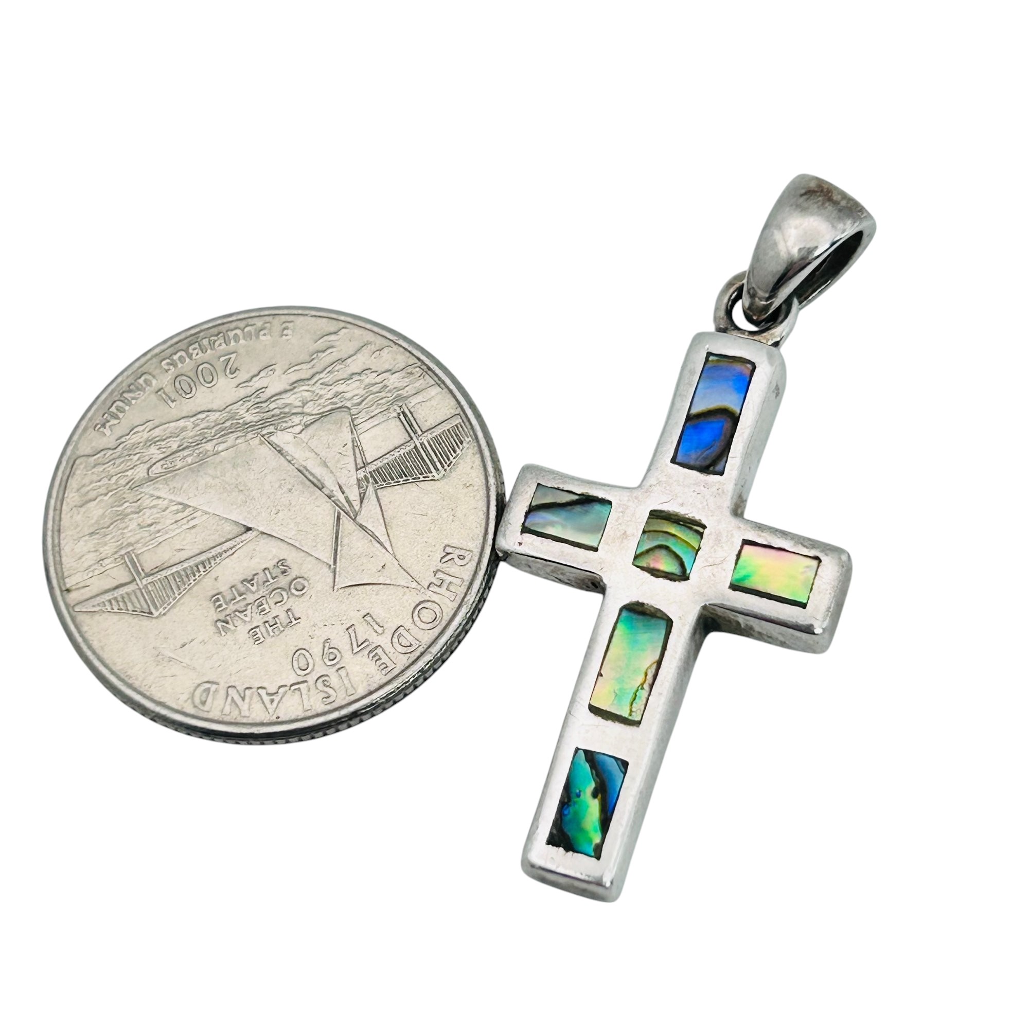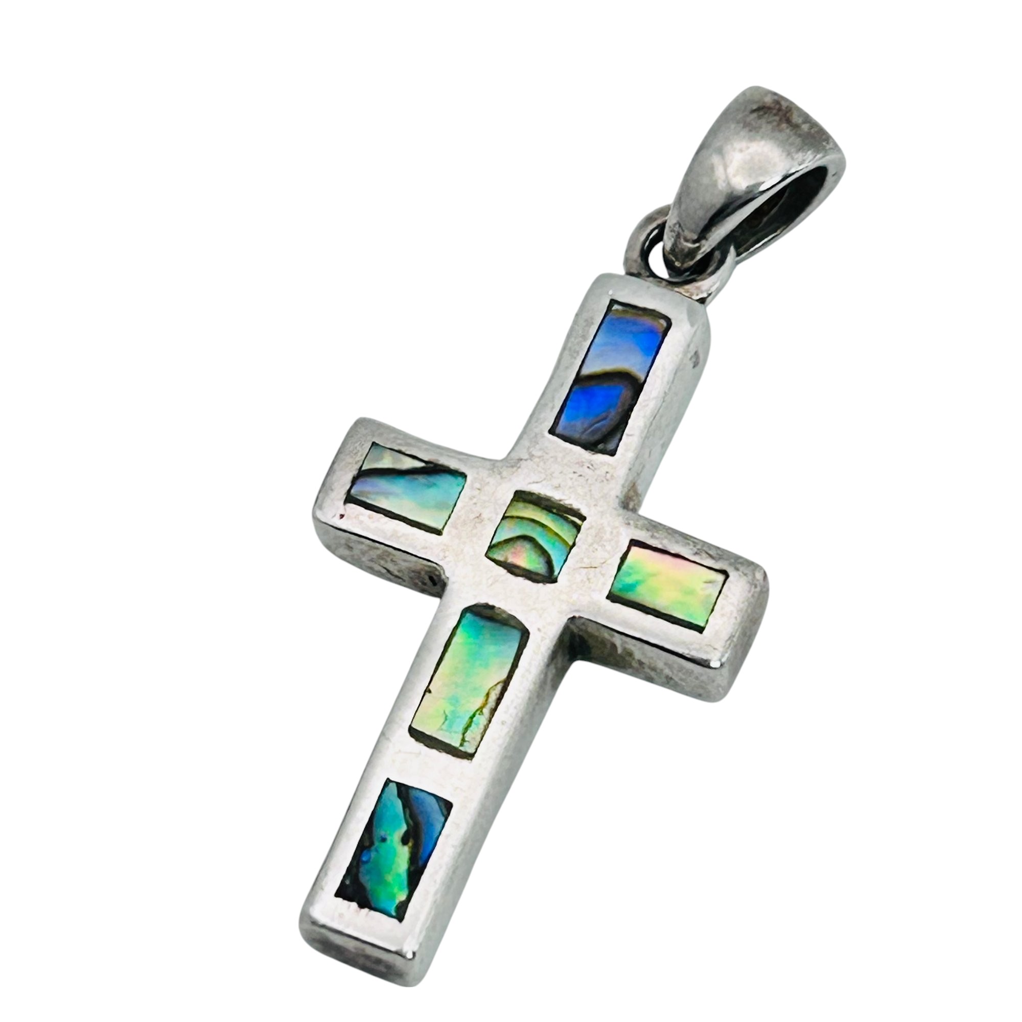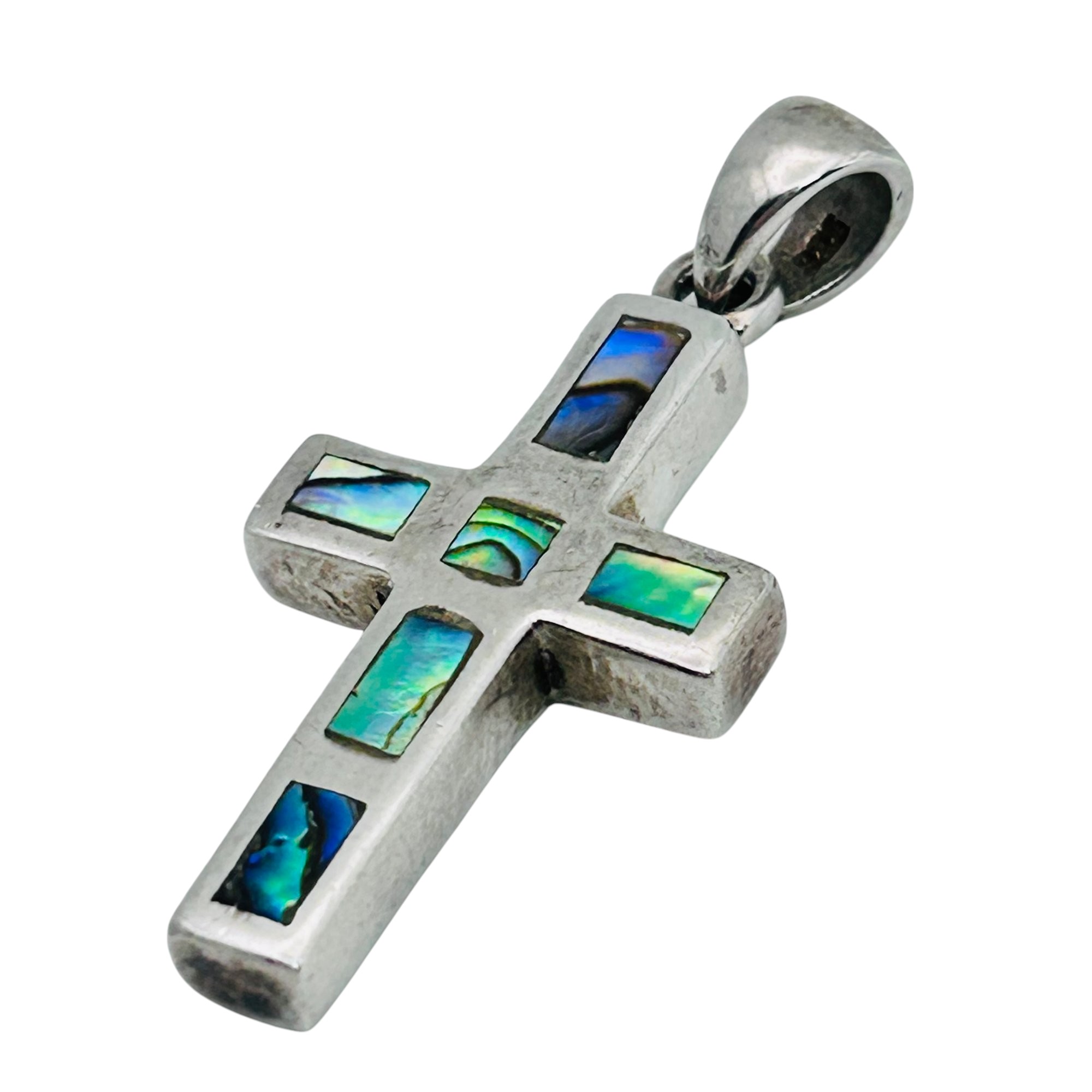 NF chapel zenray inc Sterling inlay abalone cross pendant 7.17 g
