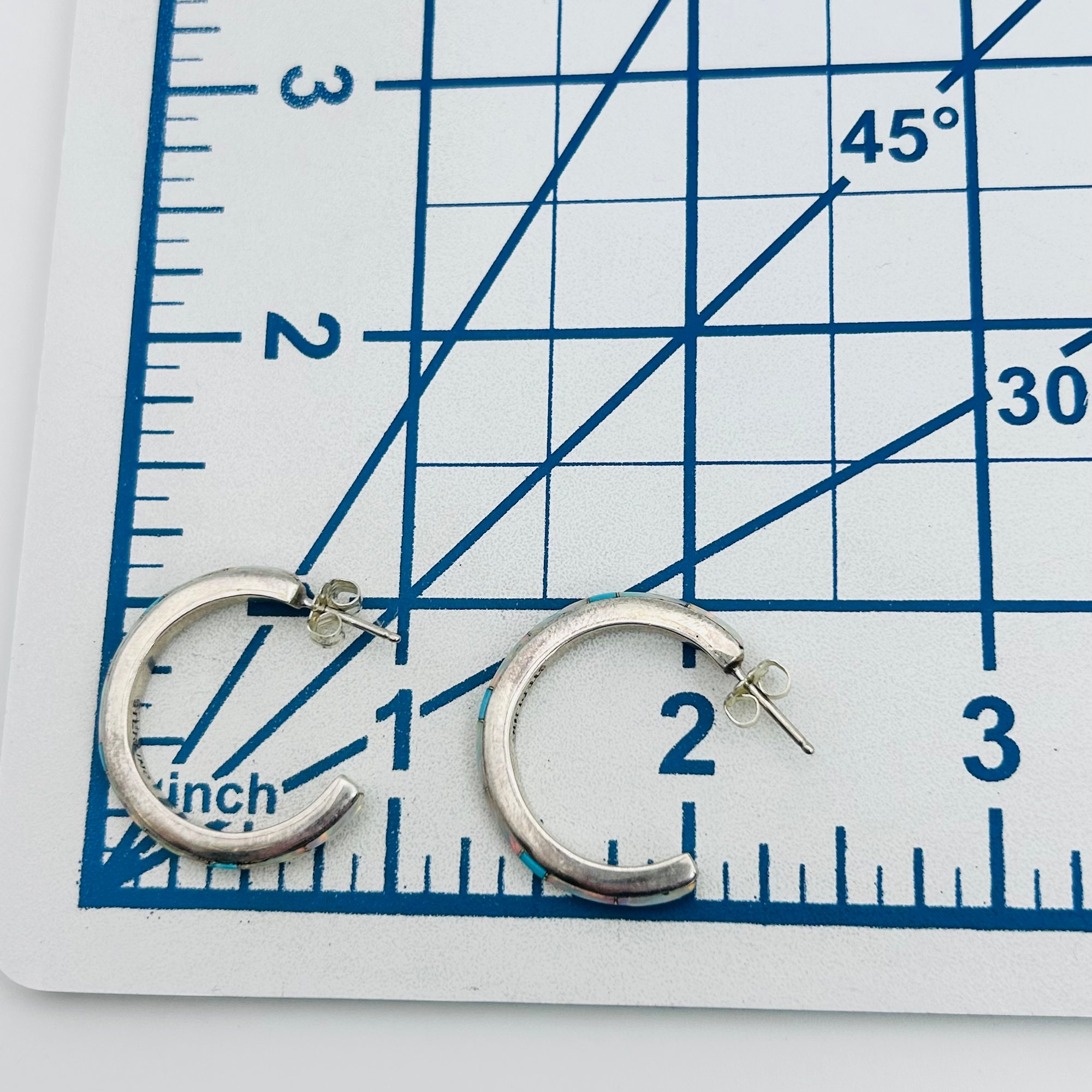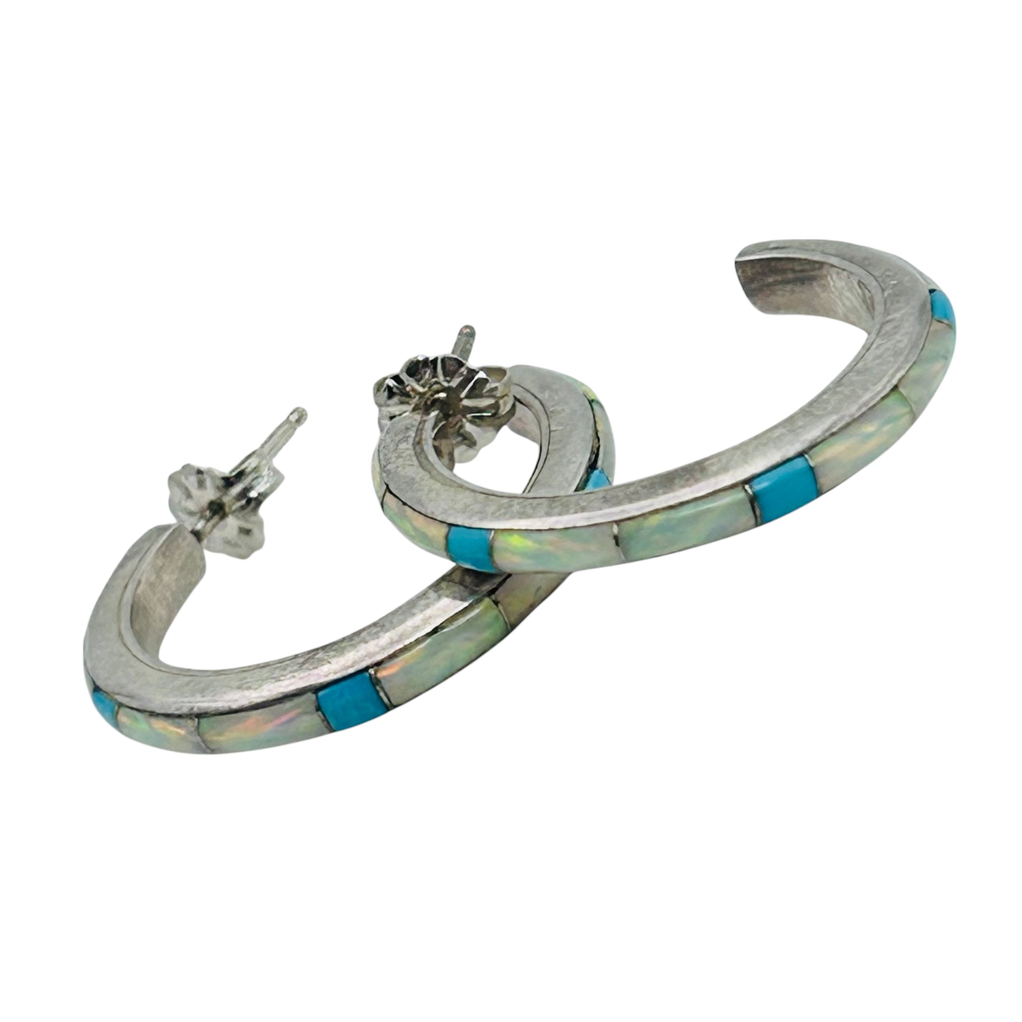 Southwest Opal turquoise sterling hoop earrings 4.8 g