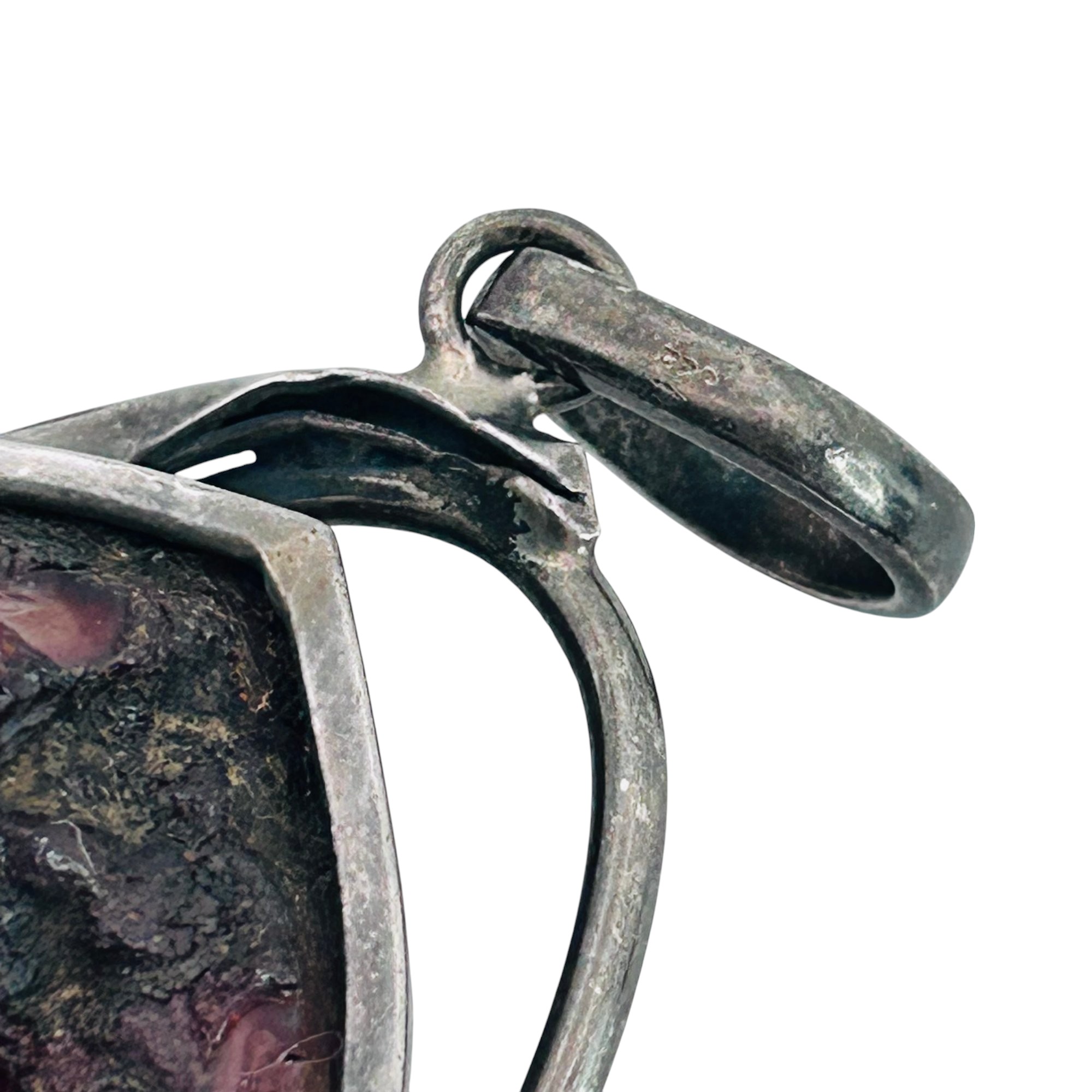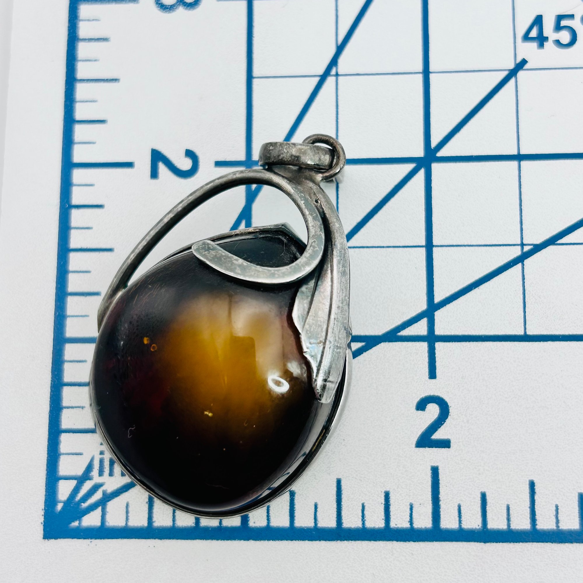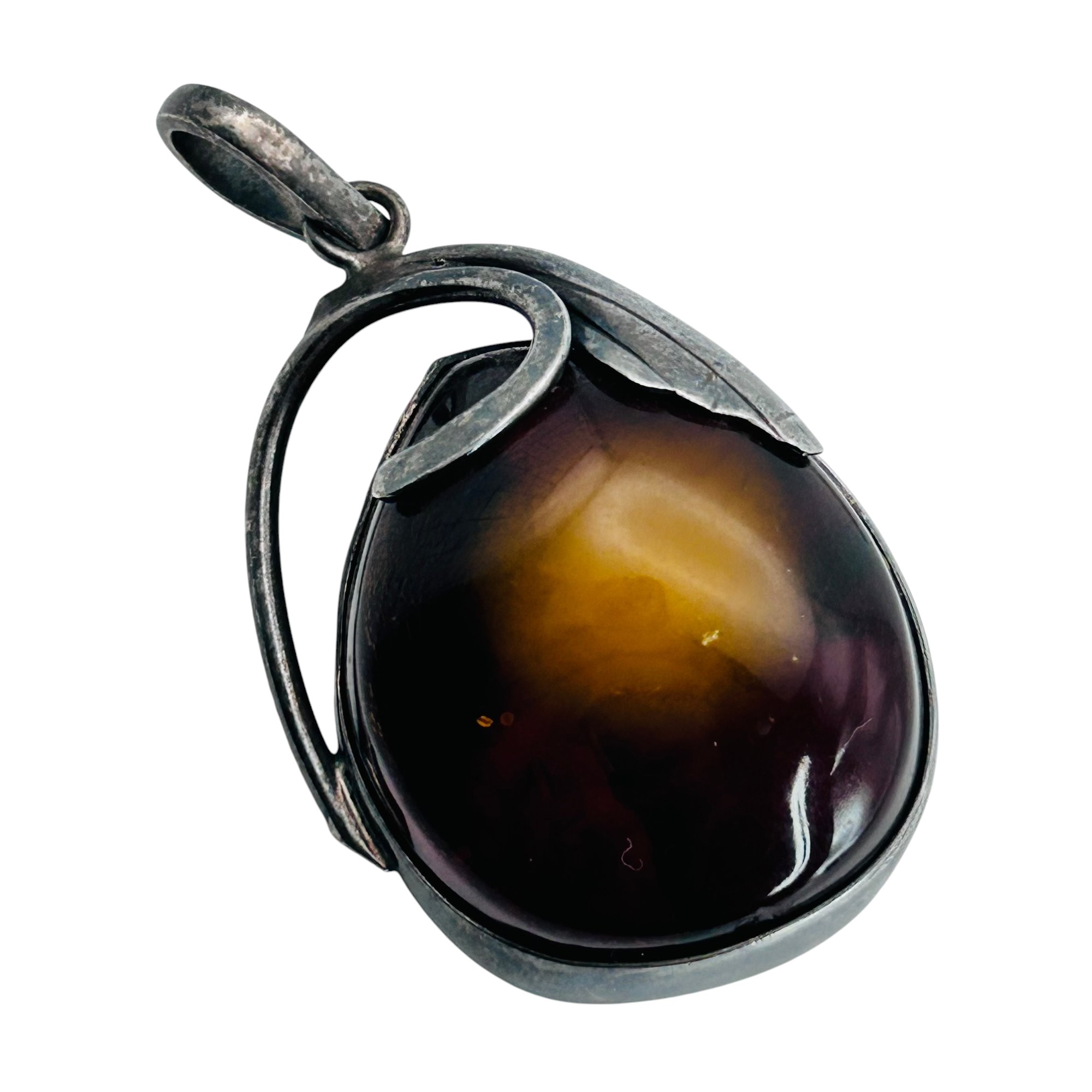 Amber Sterling large oval pendant leaf detail 23.61 g