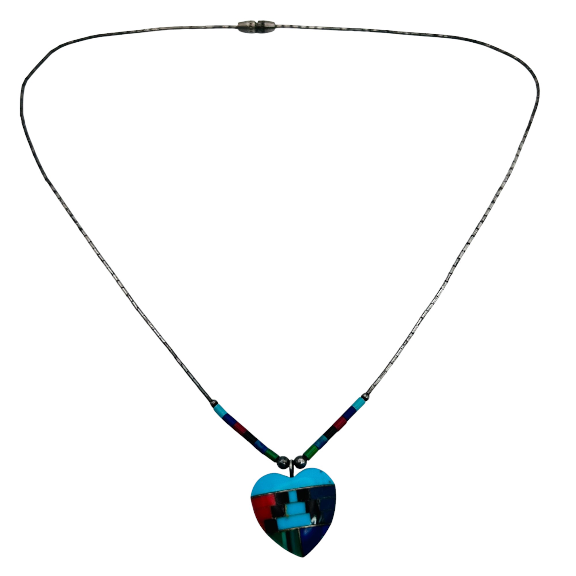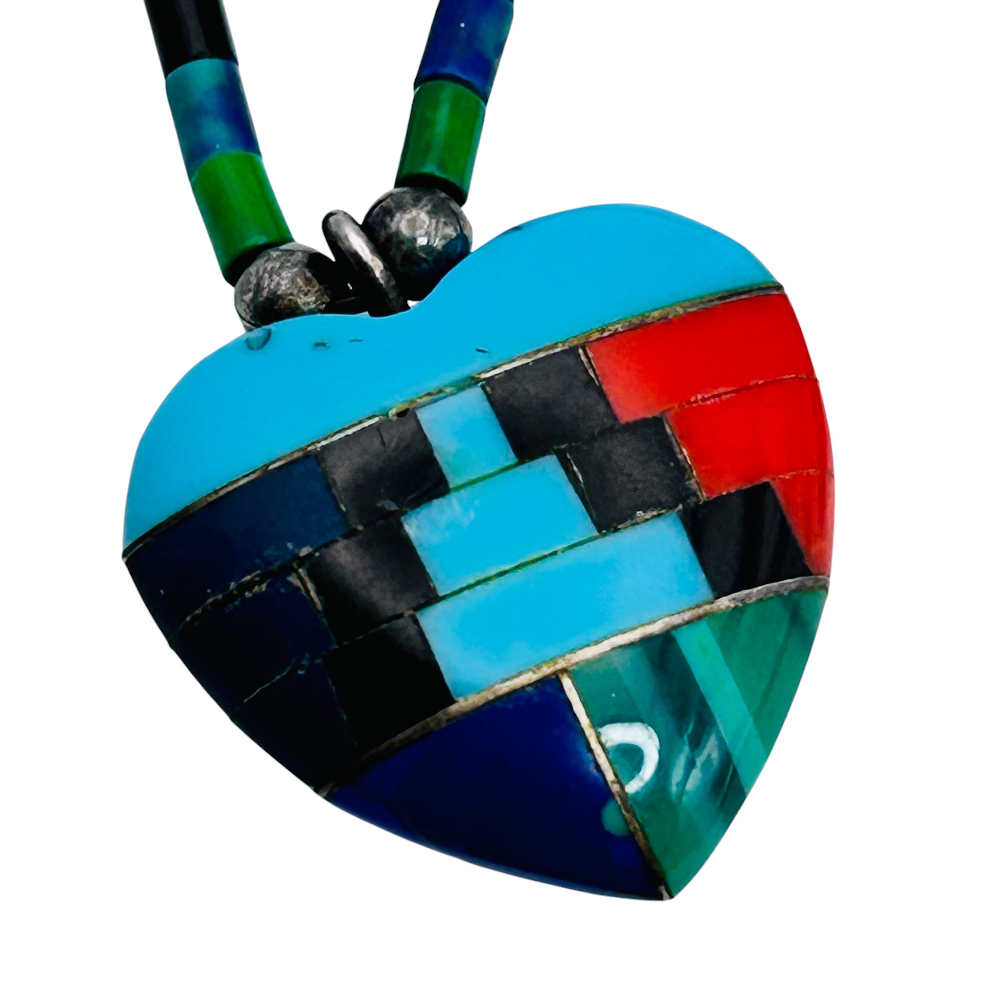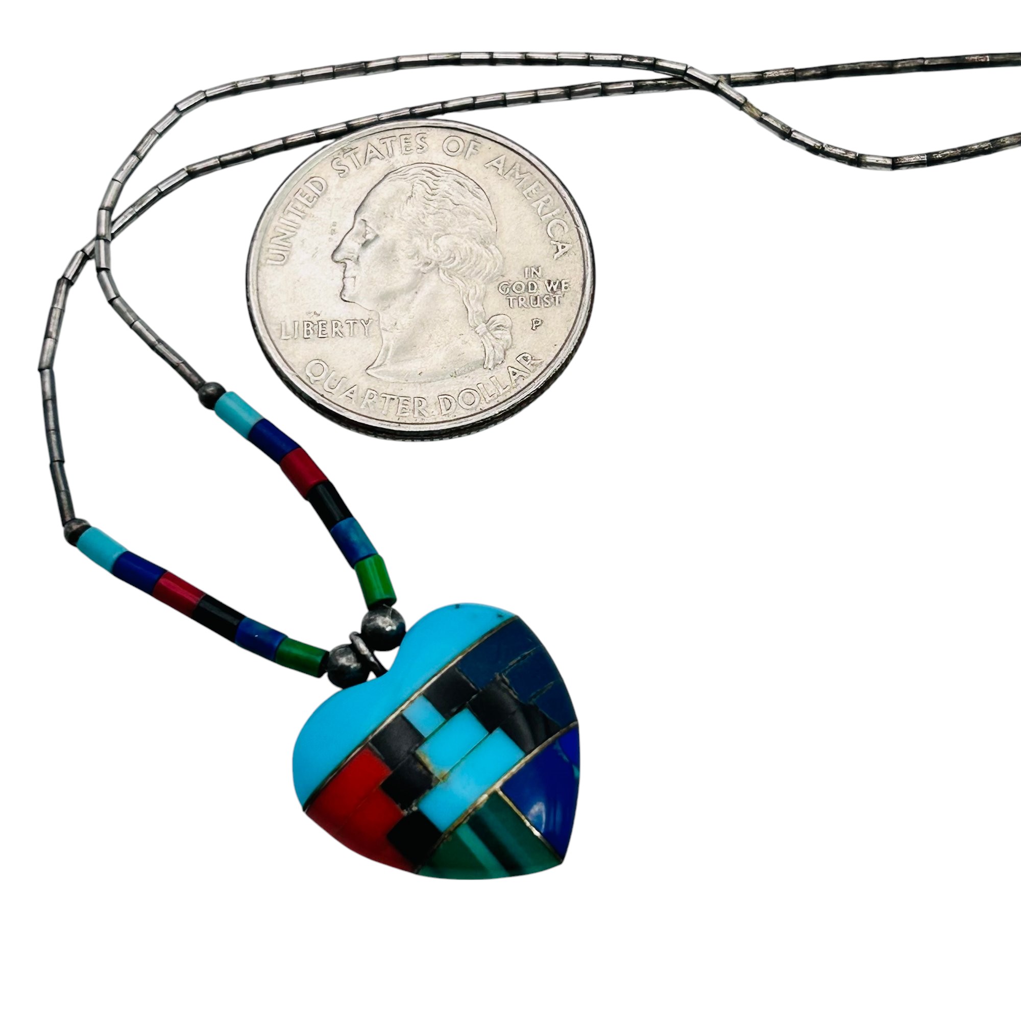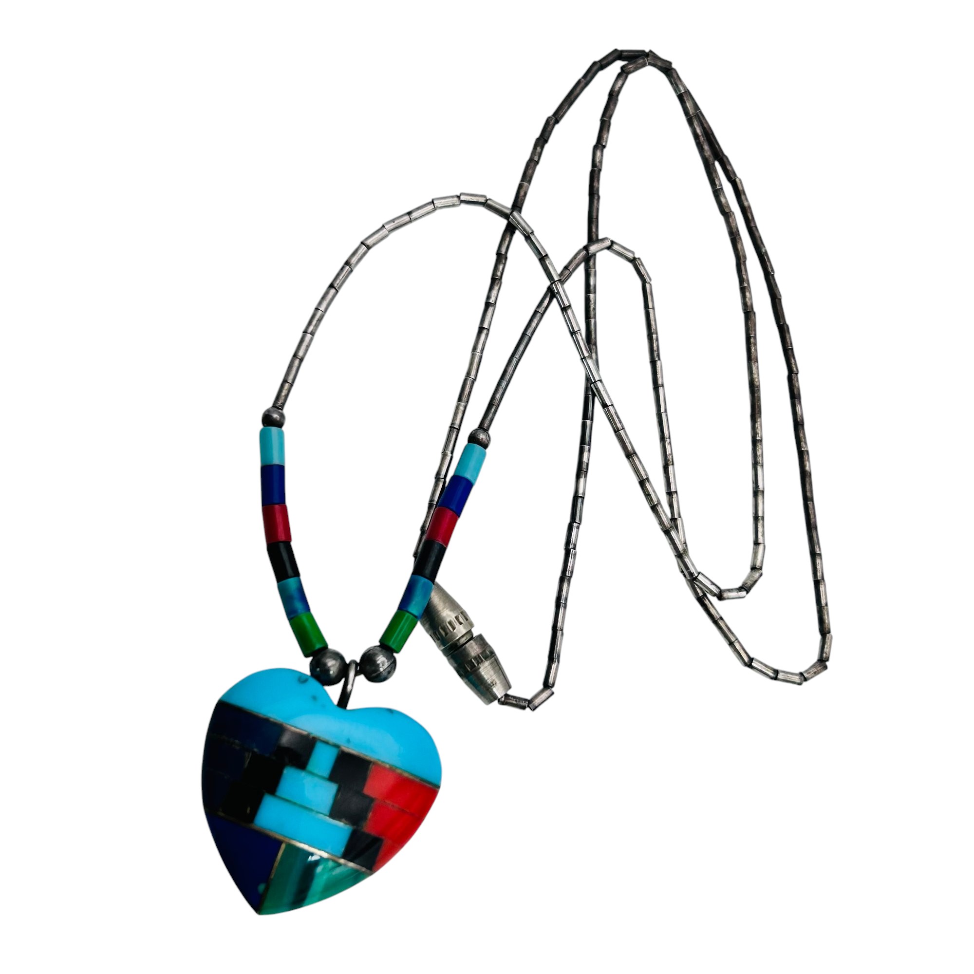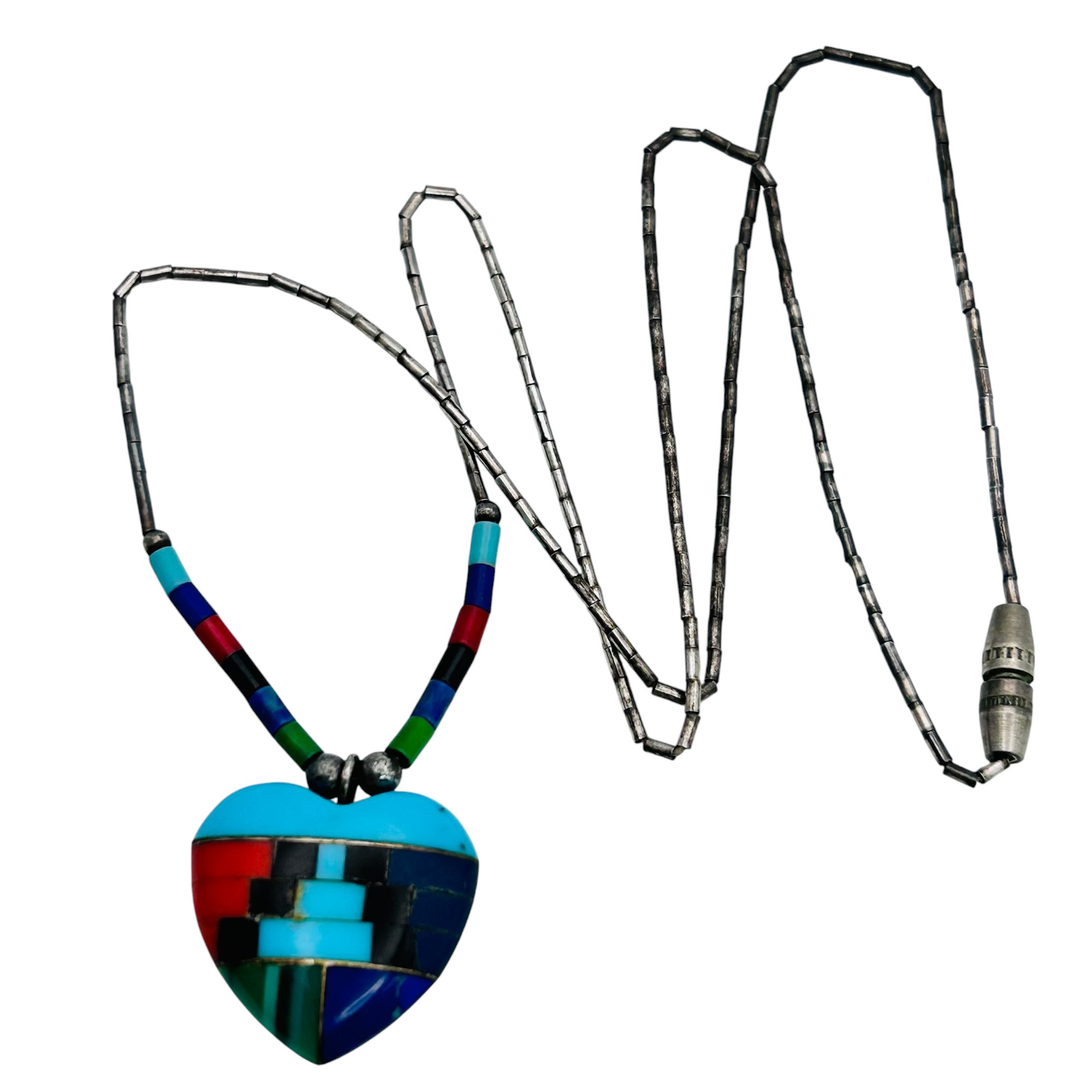 Zuni Sterling multi stone heart bar bead necklace 4.63 g