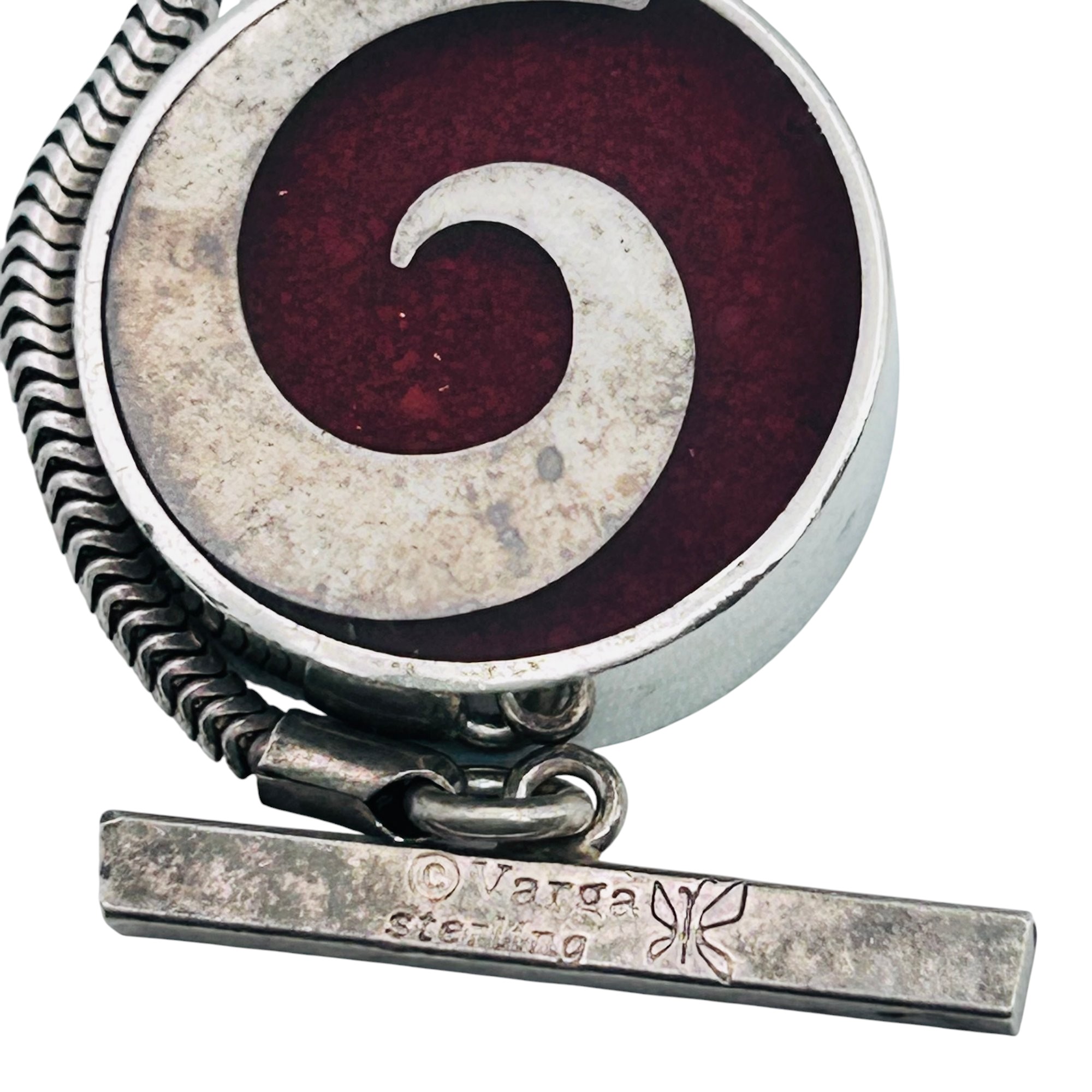 Victoria Varga Sterling red swirl pendant snake chain toggle clasp necklace 12.9 g