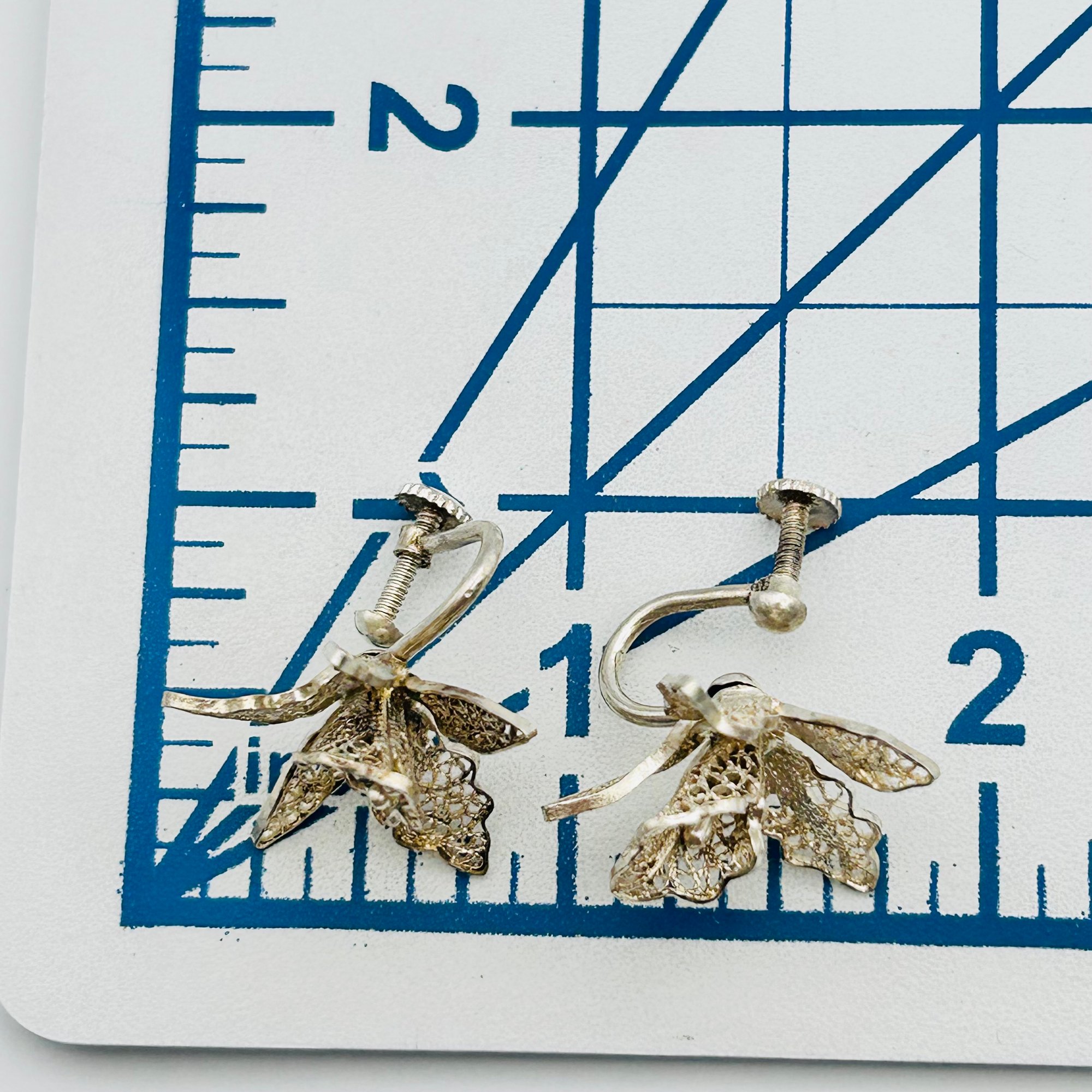 Portugal TOPAZIO Sterling Screw Back Flower Earrings 5.06 G