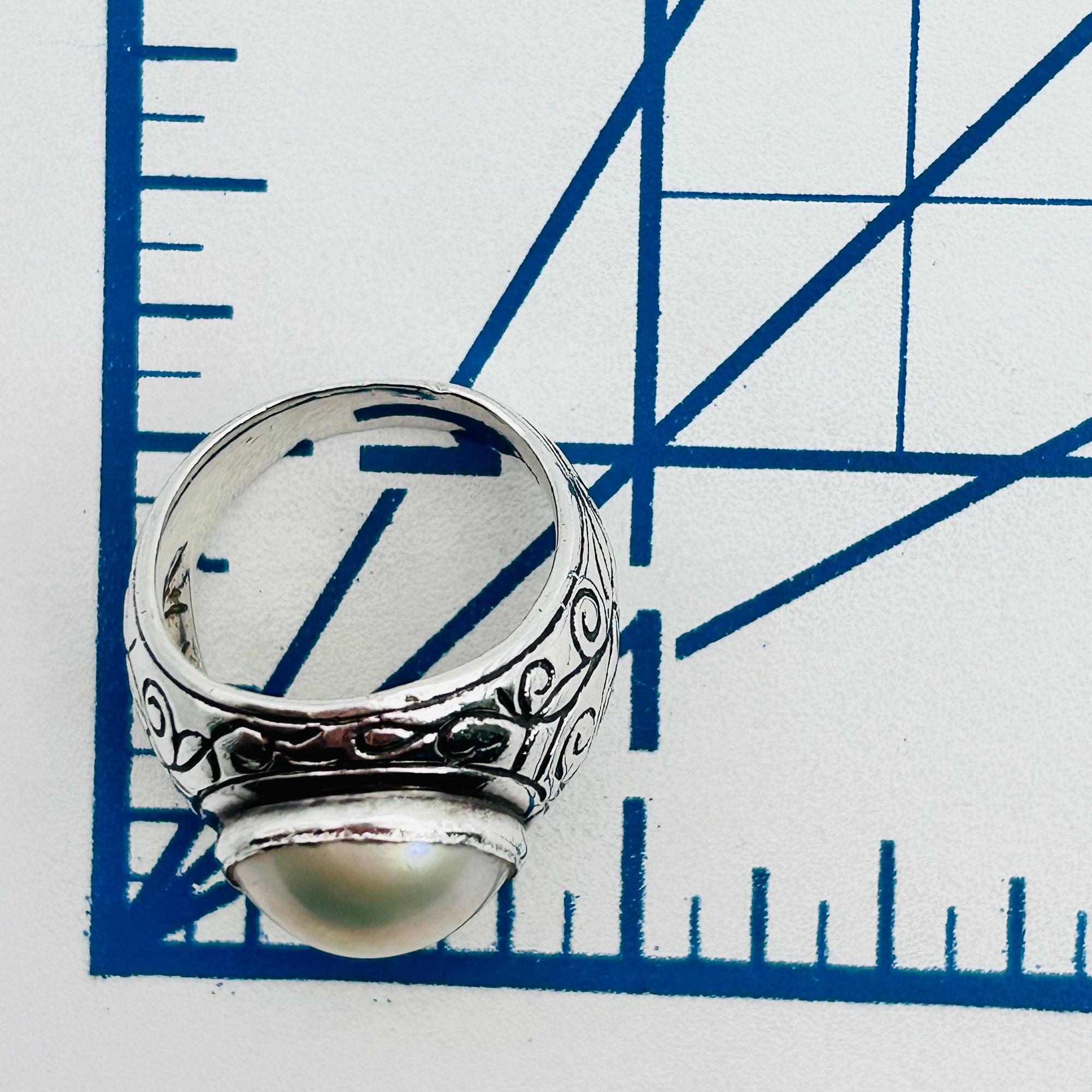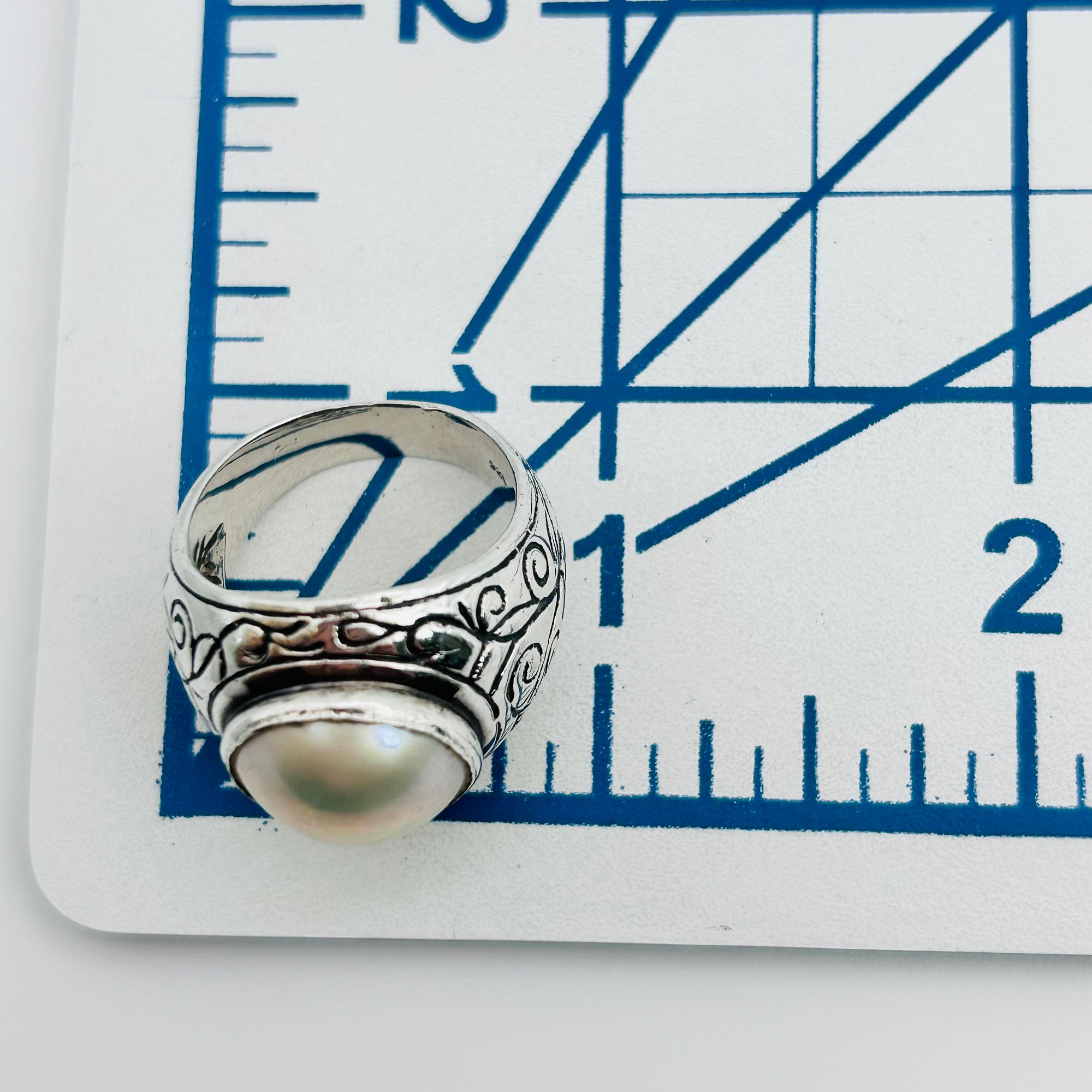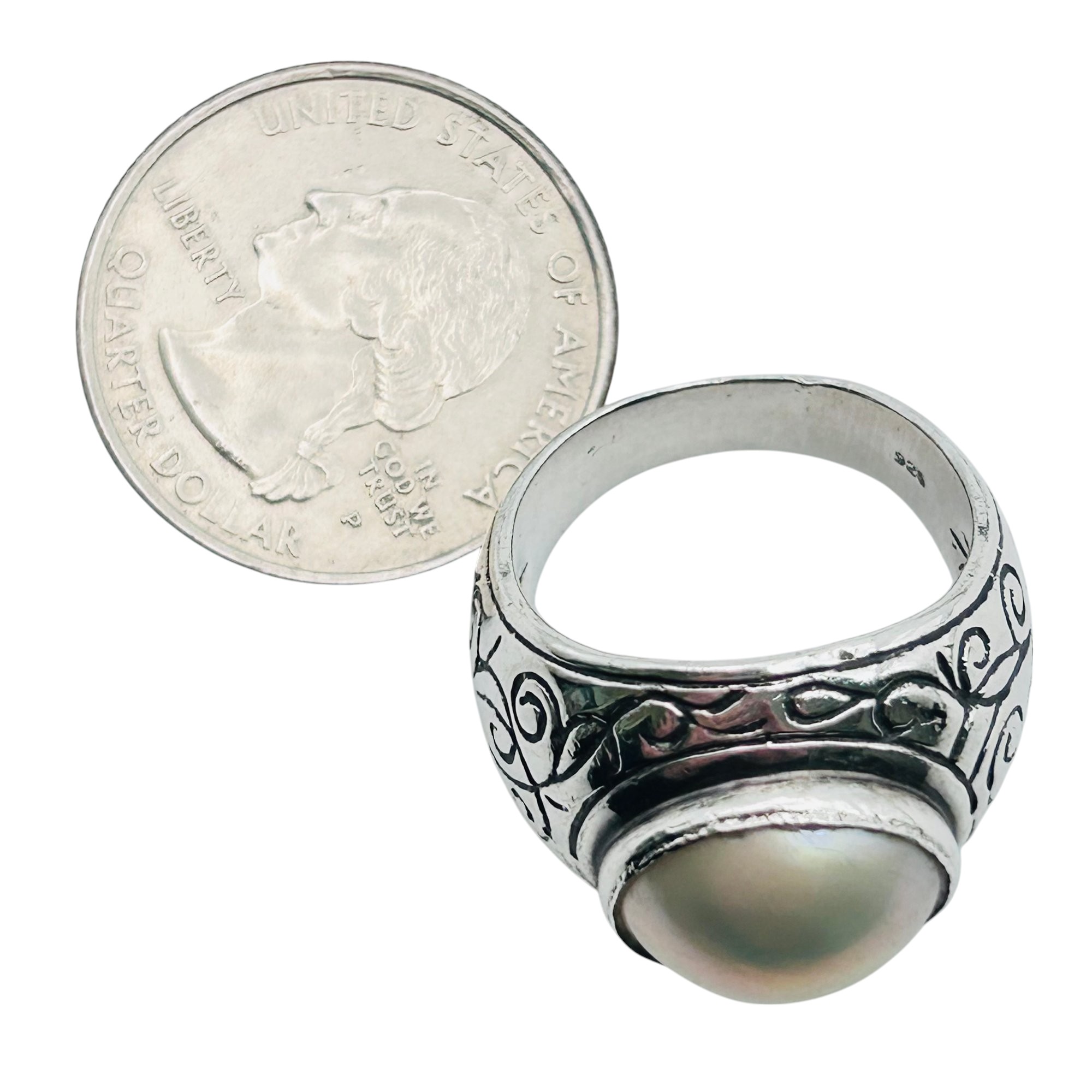 Pearl Sterling statement ring size 8 10 g