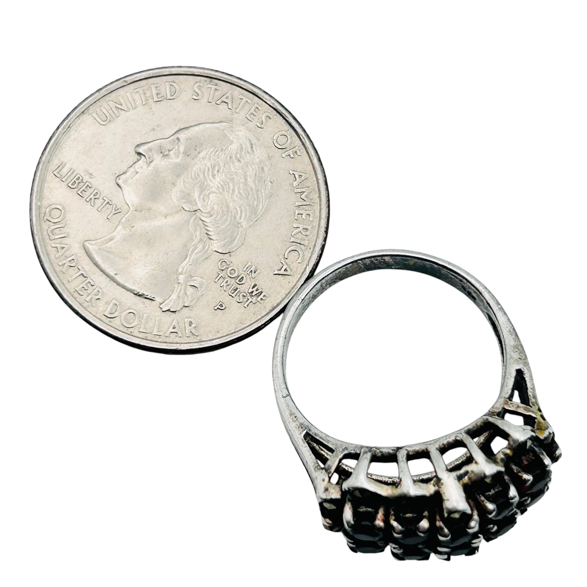 Garnet Marcasite Sterling Clustering Size 6, 5.15 G