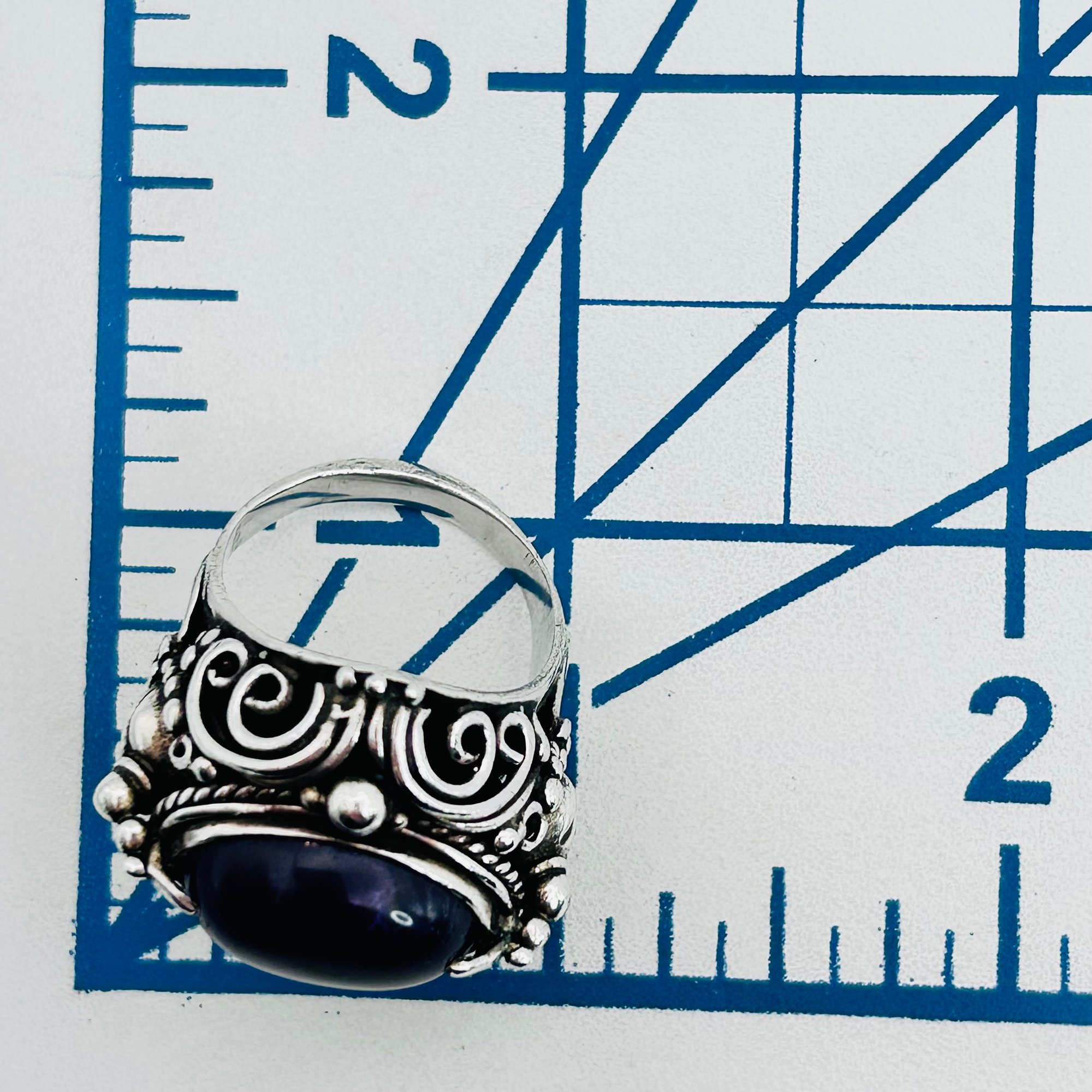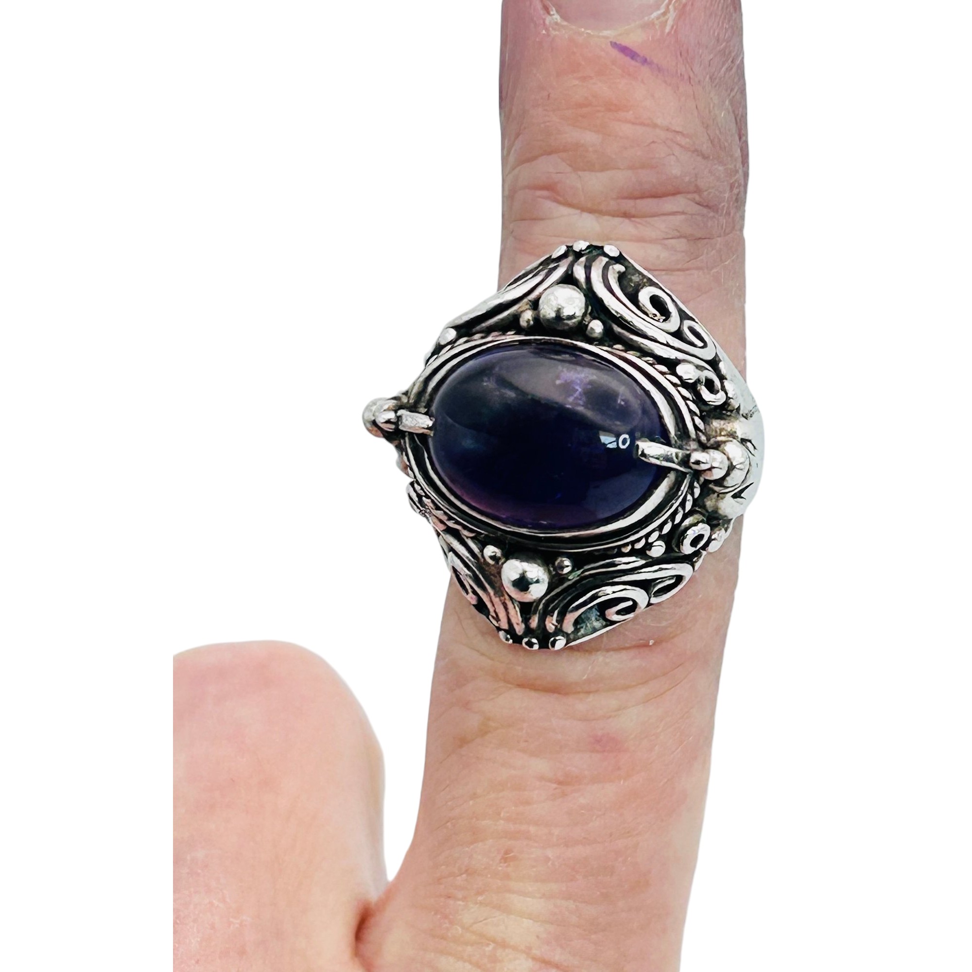 Amethyst ornate Sterling statement ring size 7.5 17.18 g