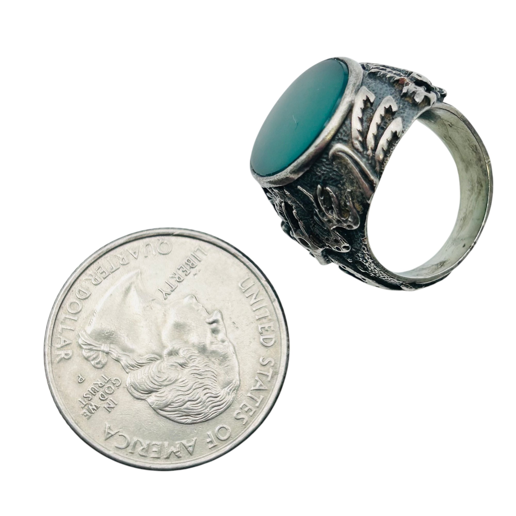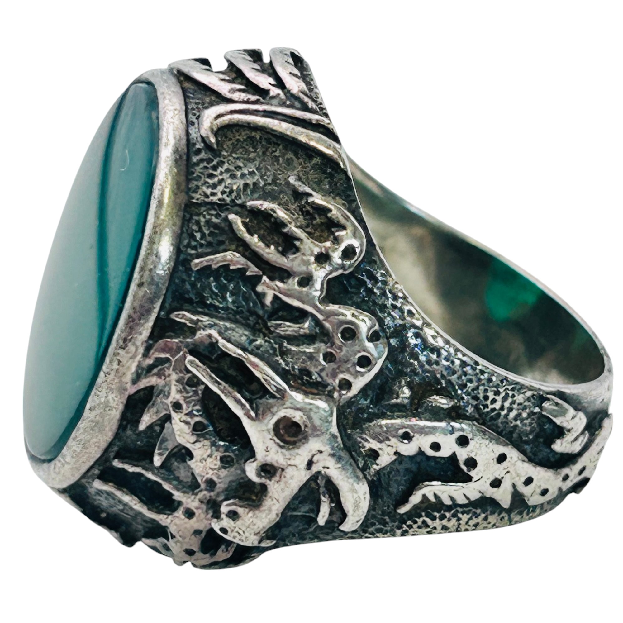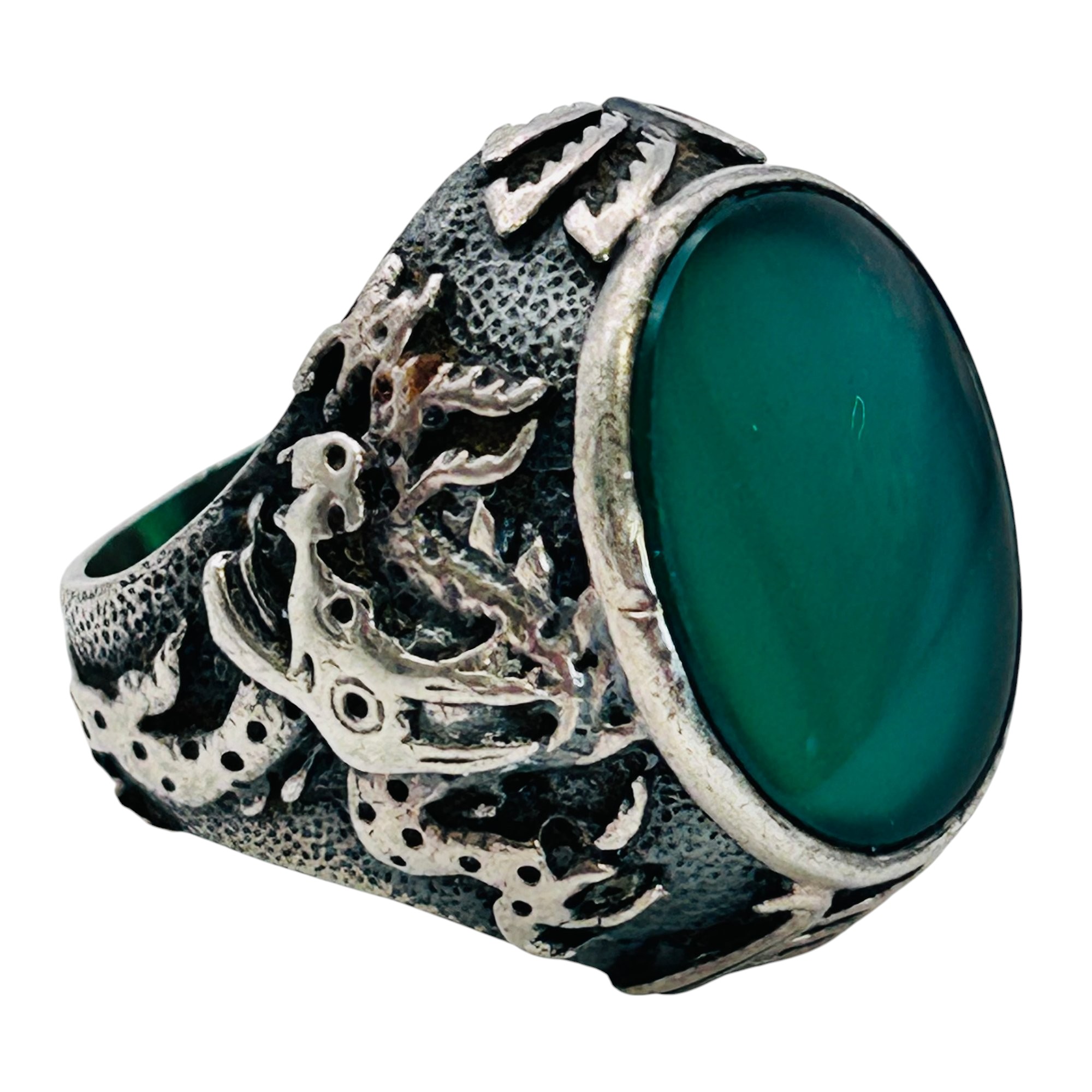 Green ONYX Sterling dragon ring band size 4.5 9 g