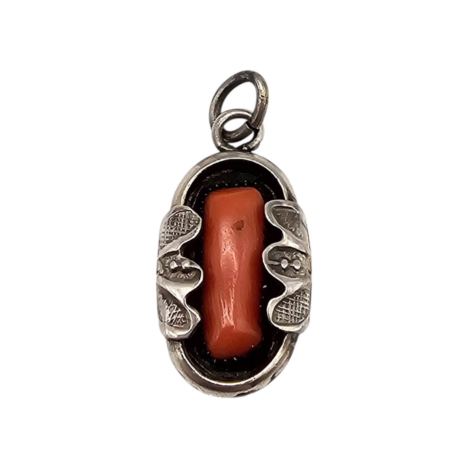 Navajo Coral Sterling Silver Shadow Box Pendant 3.9 G