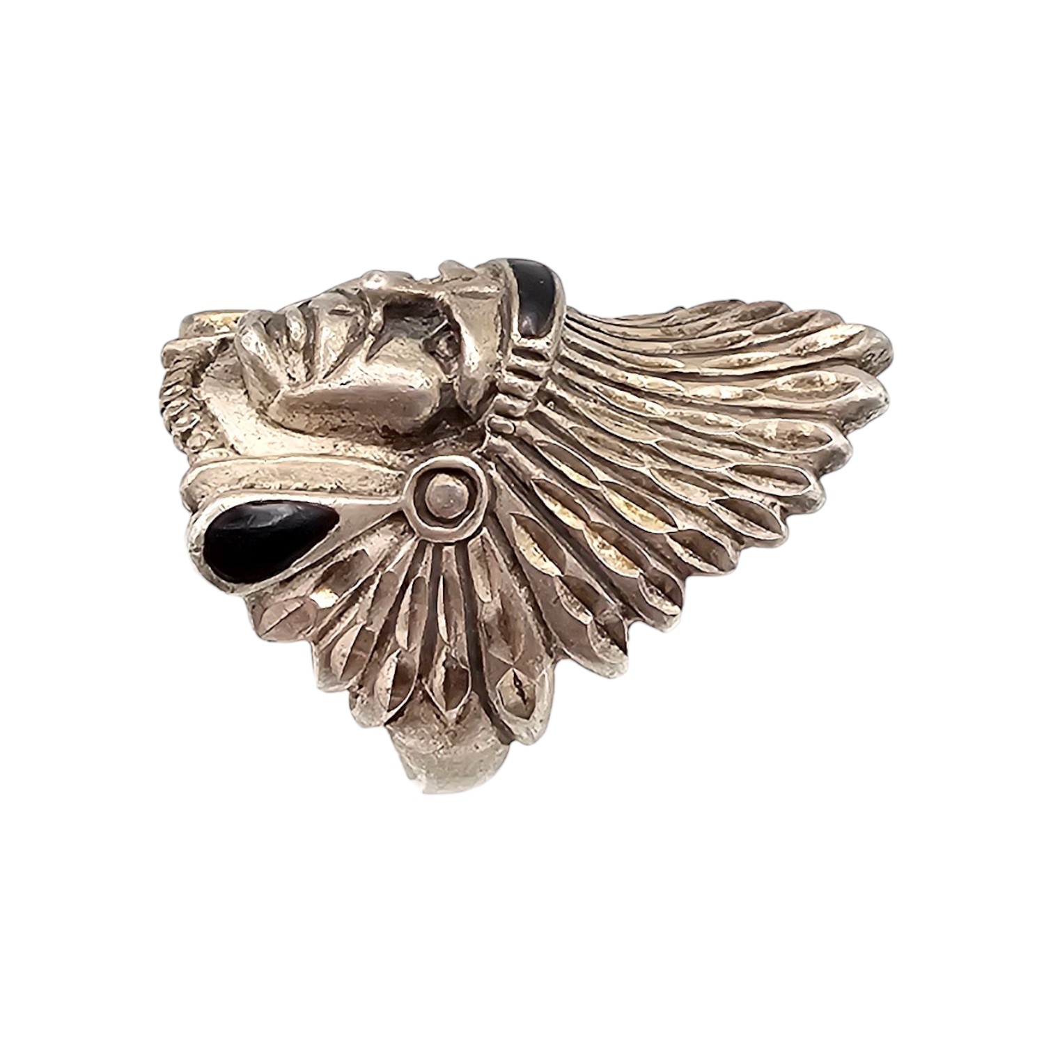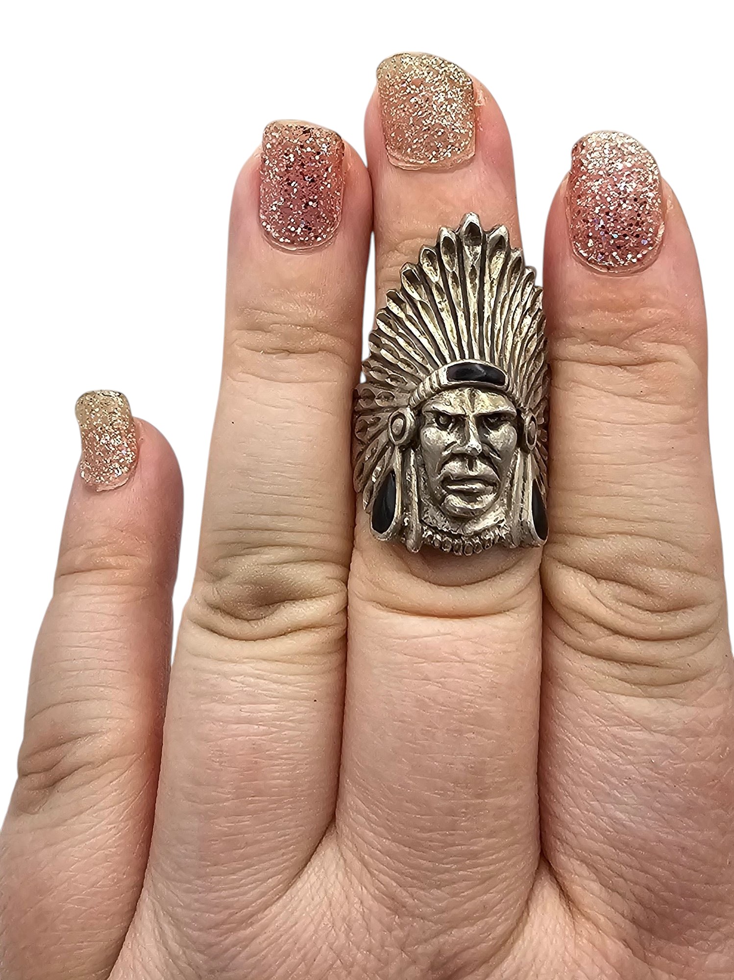 OTT Southwestern Onyx Sterling Silver Native Chief Ring Size 7.75 13.1 G