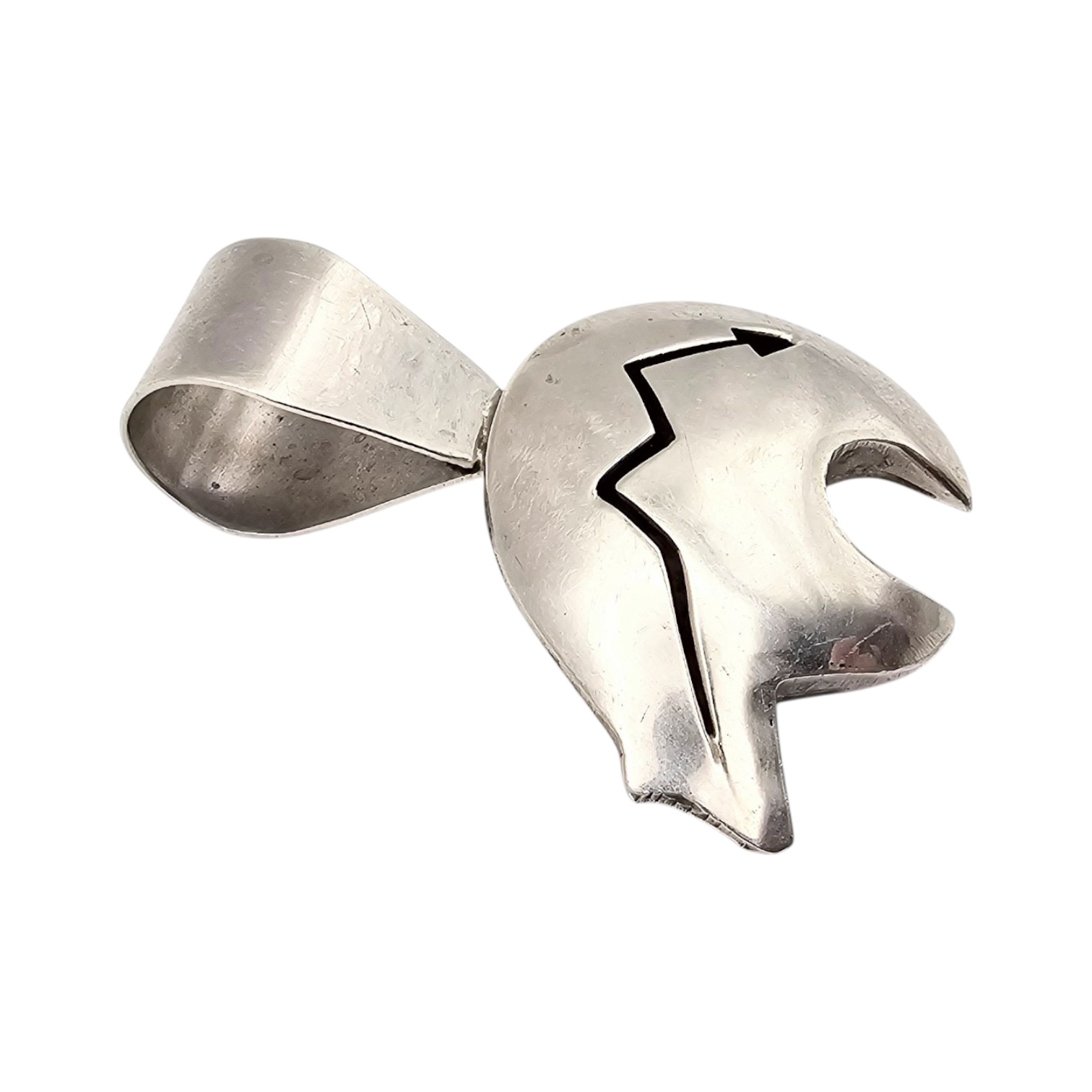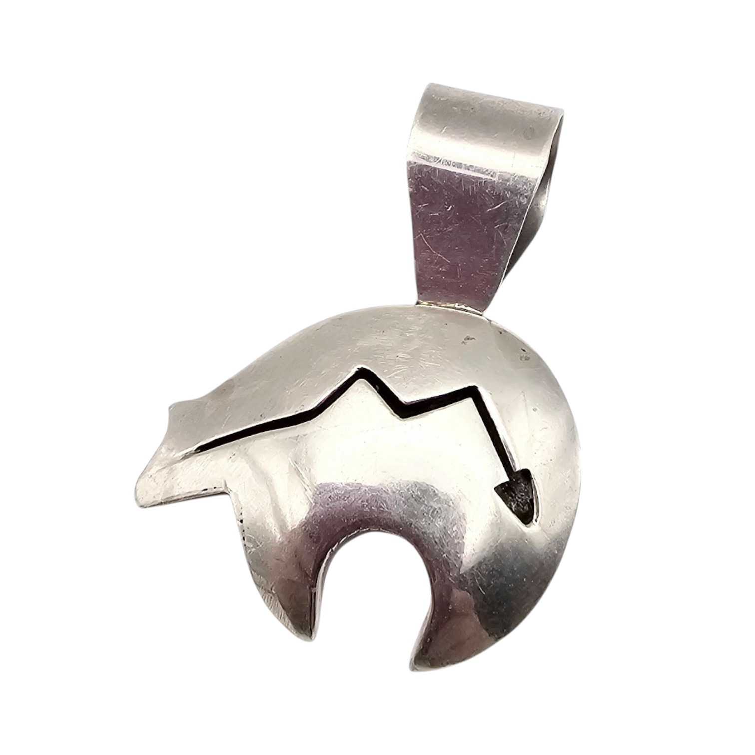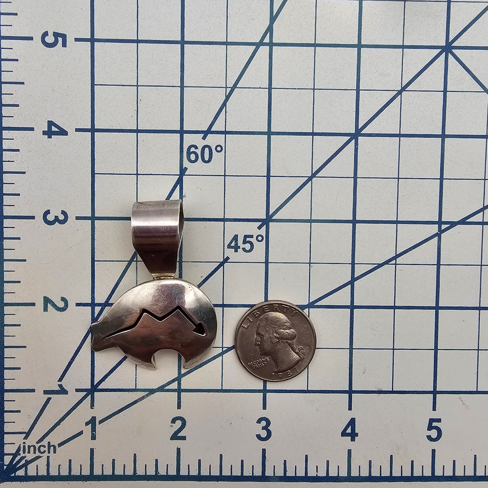 Native/Southwestern Signed with Unidentified Feather and Eagle Sterling Silver Bear Pendant 12.1 G