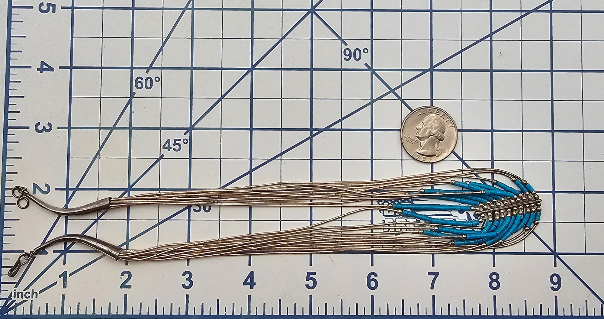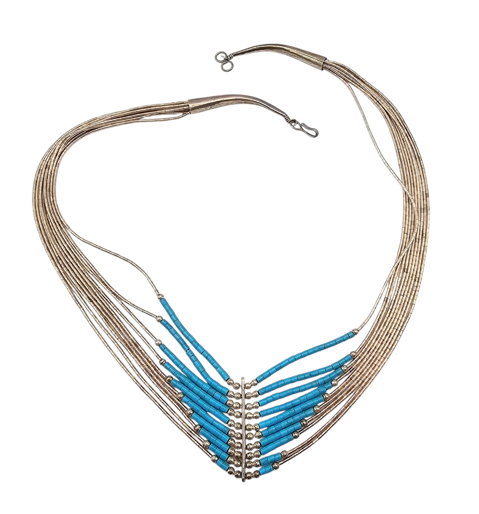 Southwestern Turquoise Sterling Liquid Silver Multi Strand Necklace 15.7 G