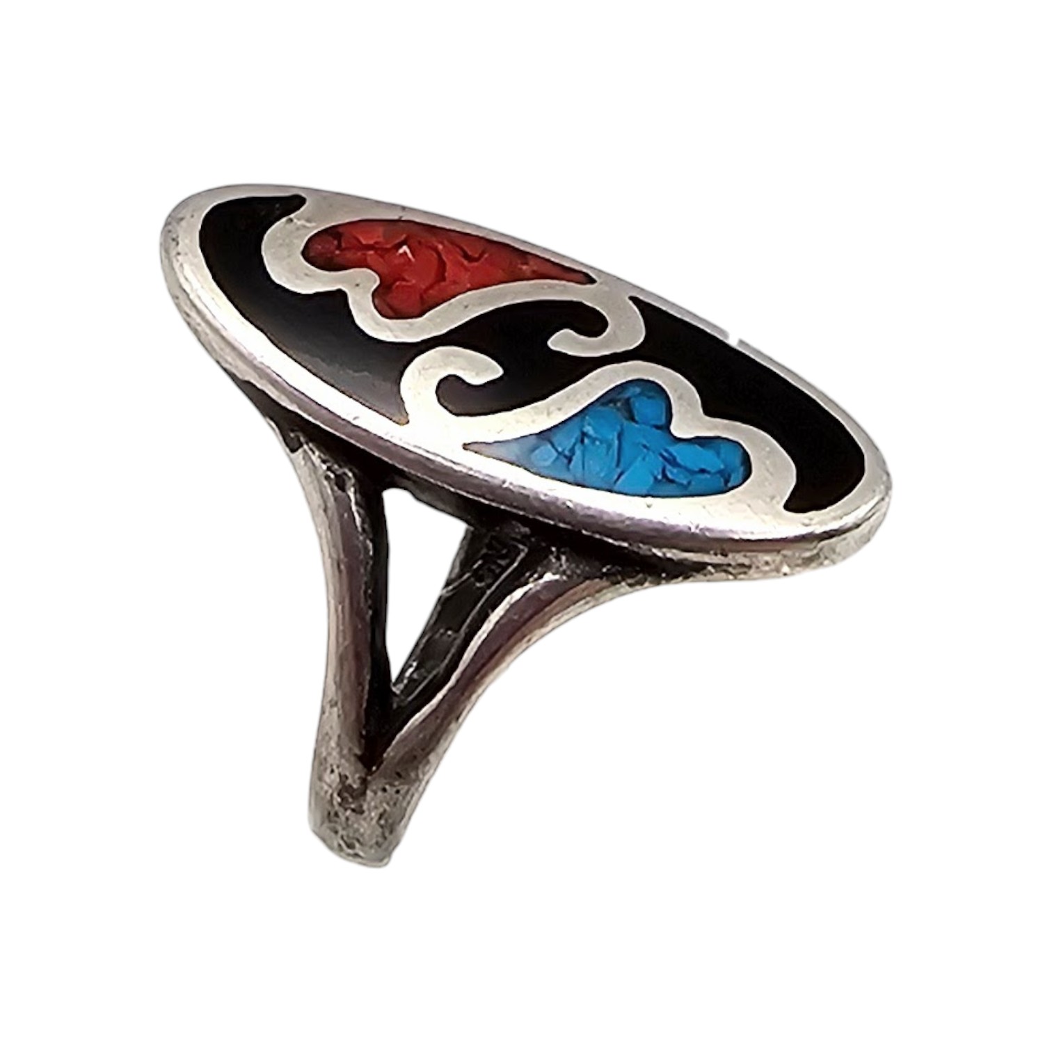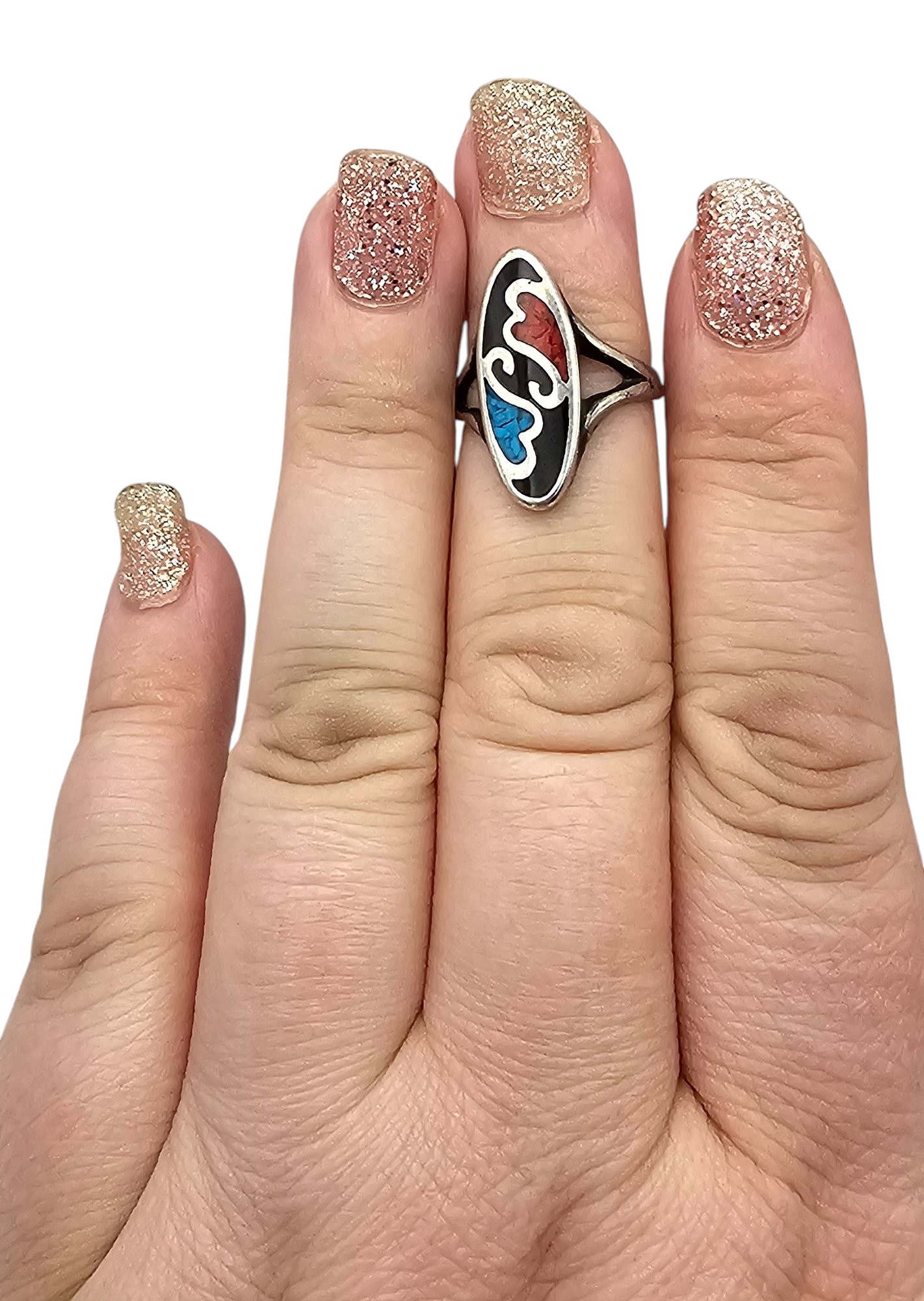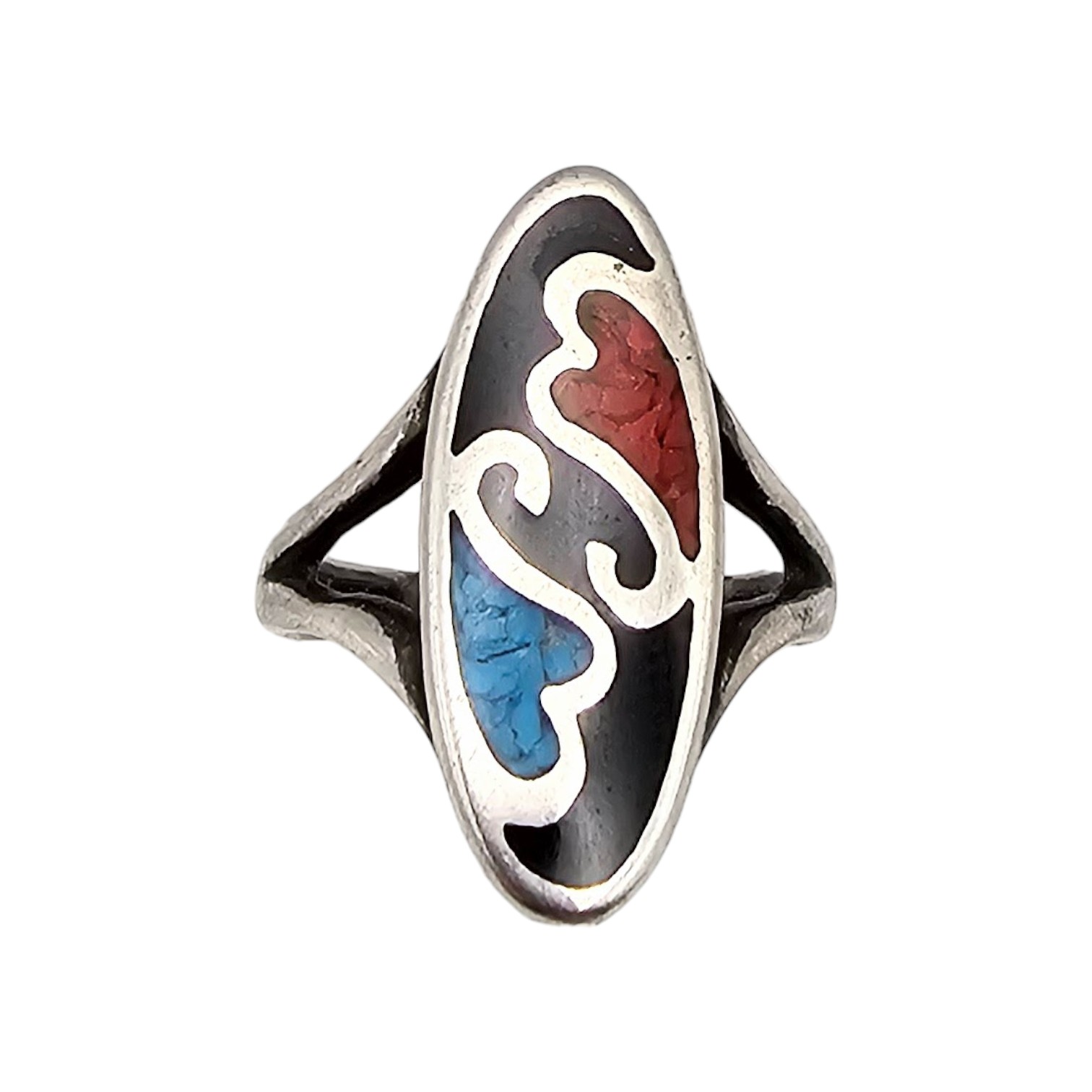 Signed Southwestern Crushed Coral Turquoise Sterling Silver Enamel Sterling Silver Ring Size 5.5 4.3 G