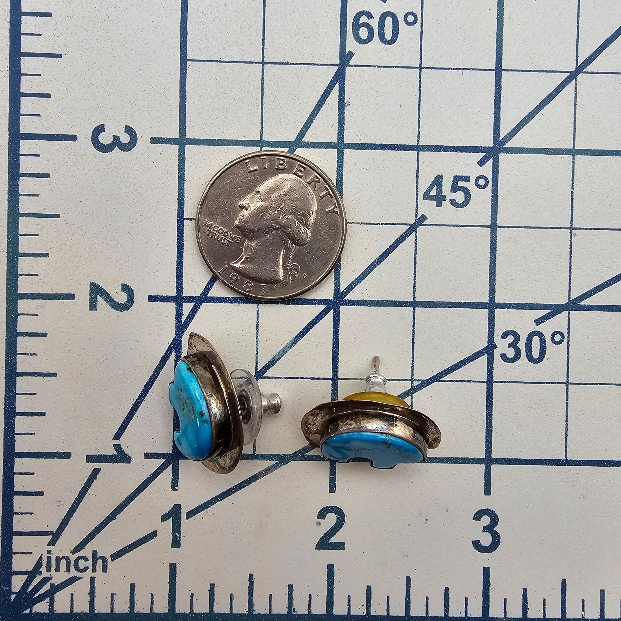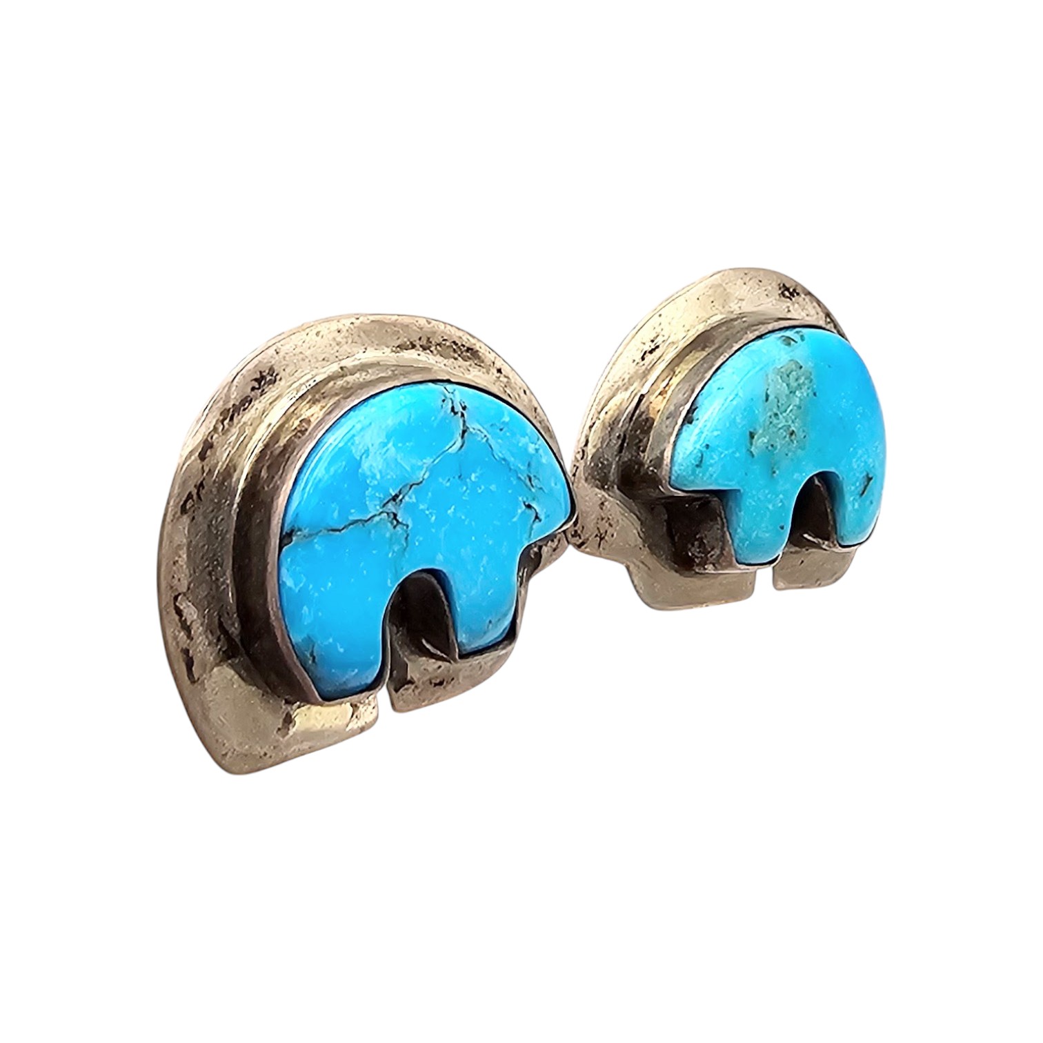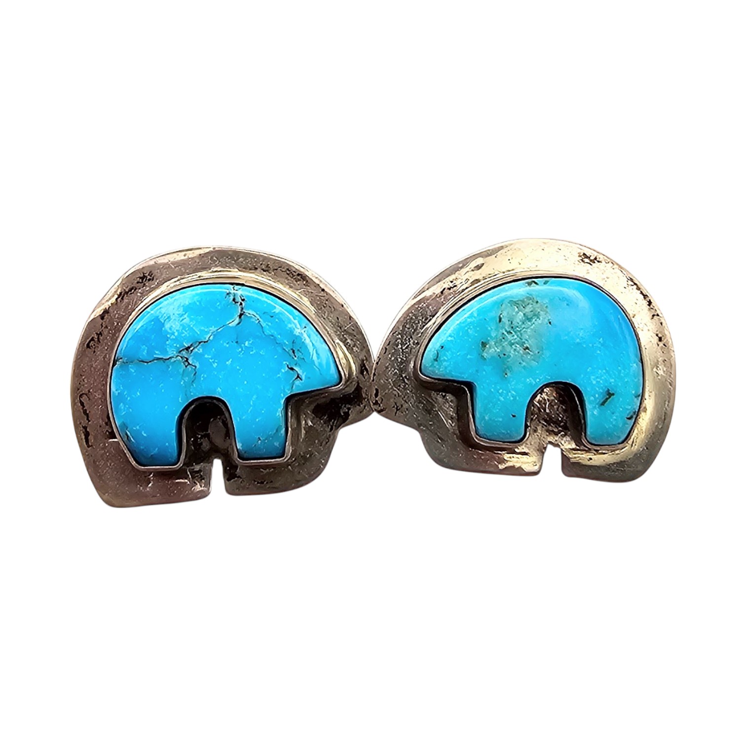 Southwestern Turquoise Sterling Silver Fetish Bear Earrings 5.3 G, as-is, crack shown in photos