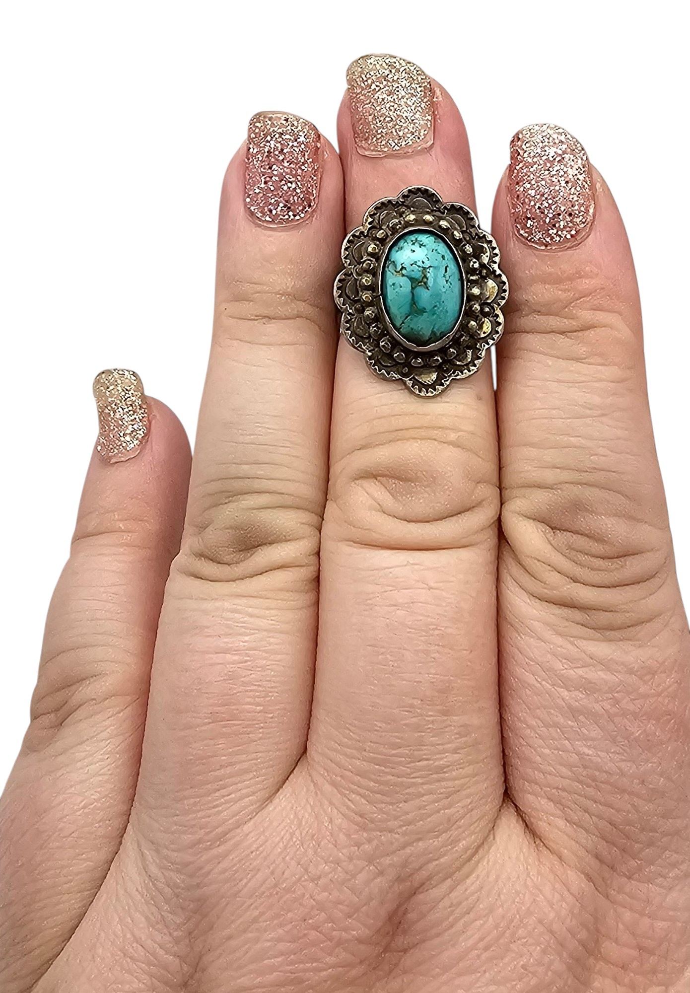 Southwestern Turquoise Sterling Silver Ring Size 5.25 5.9 G