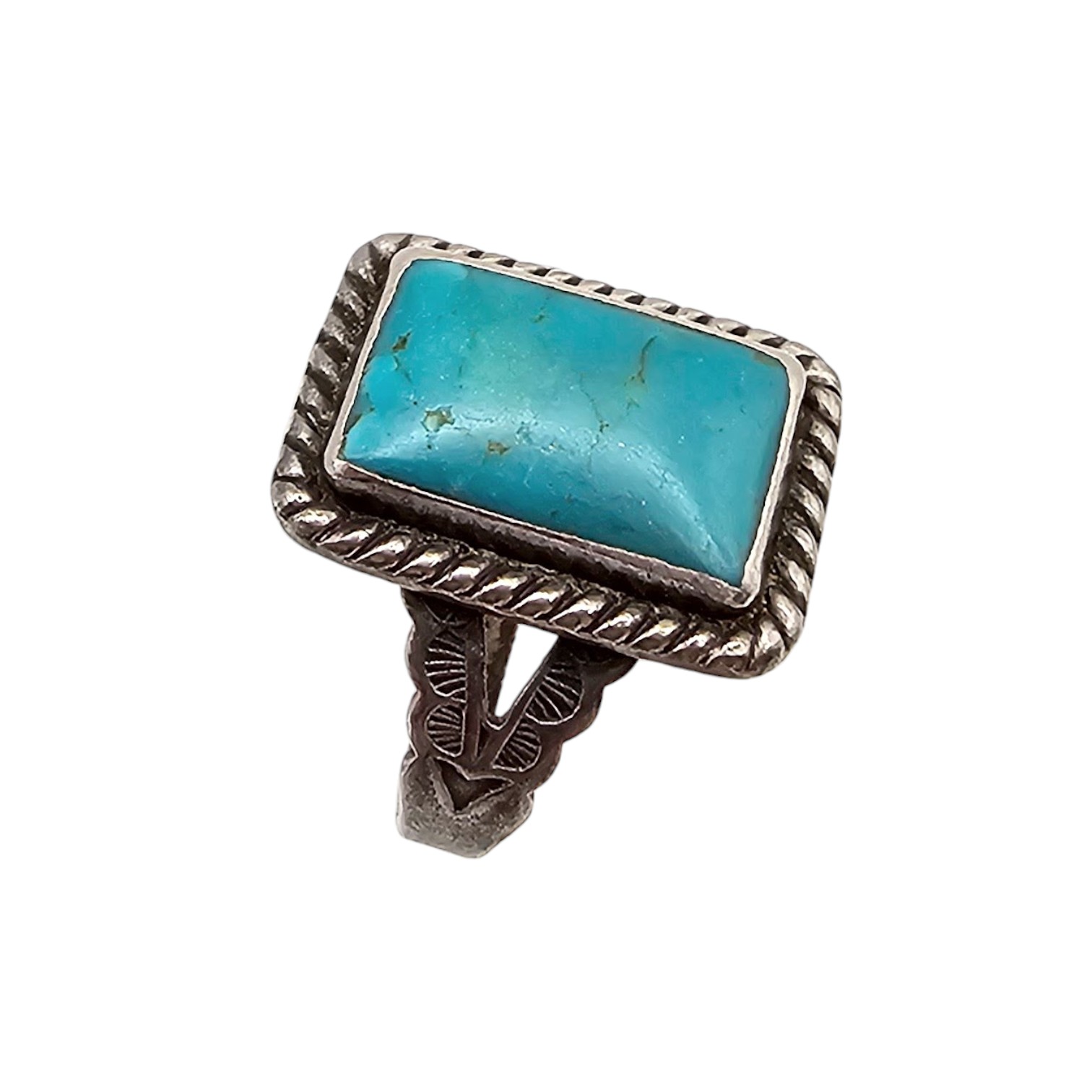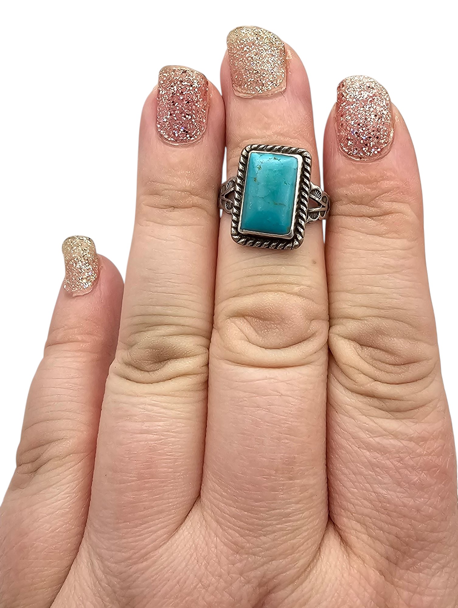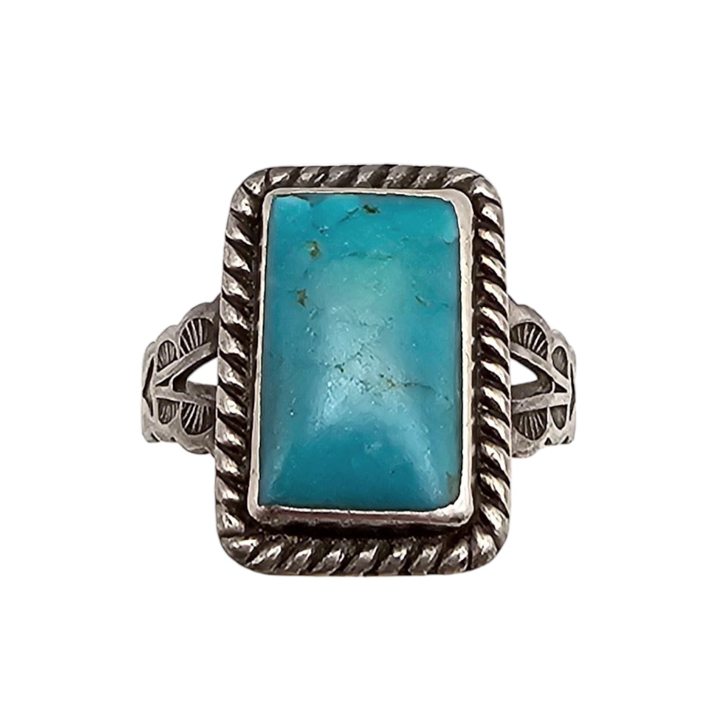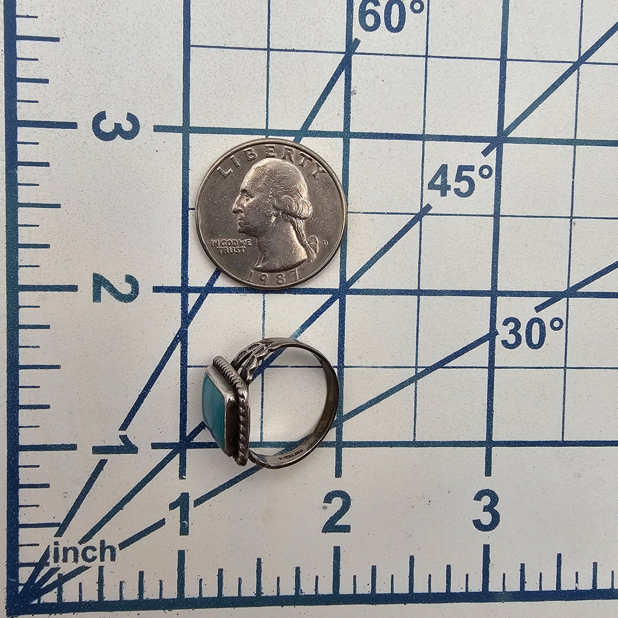 Southwestern Turquoise Sterling Silver Square Ring Size 6 5 G