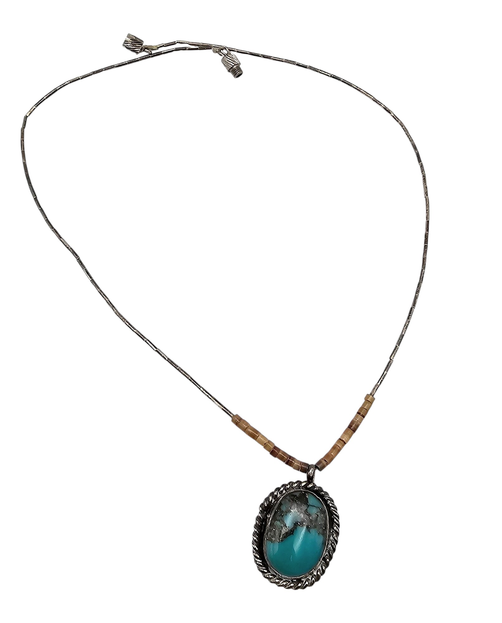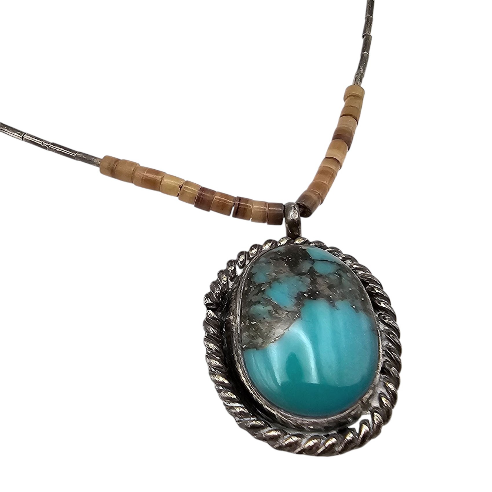 Southwestern Turquoise Heishi Sterling Liquid Silver Necklace 8.2 G