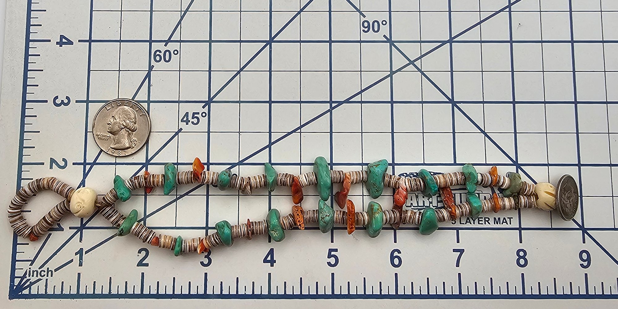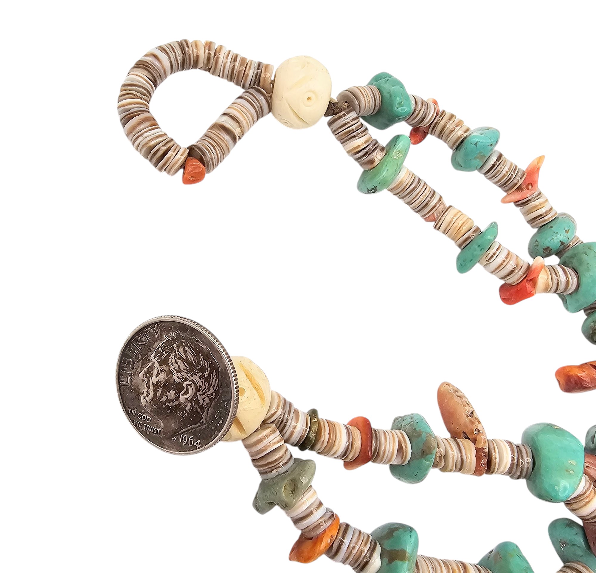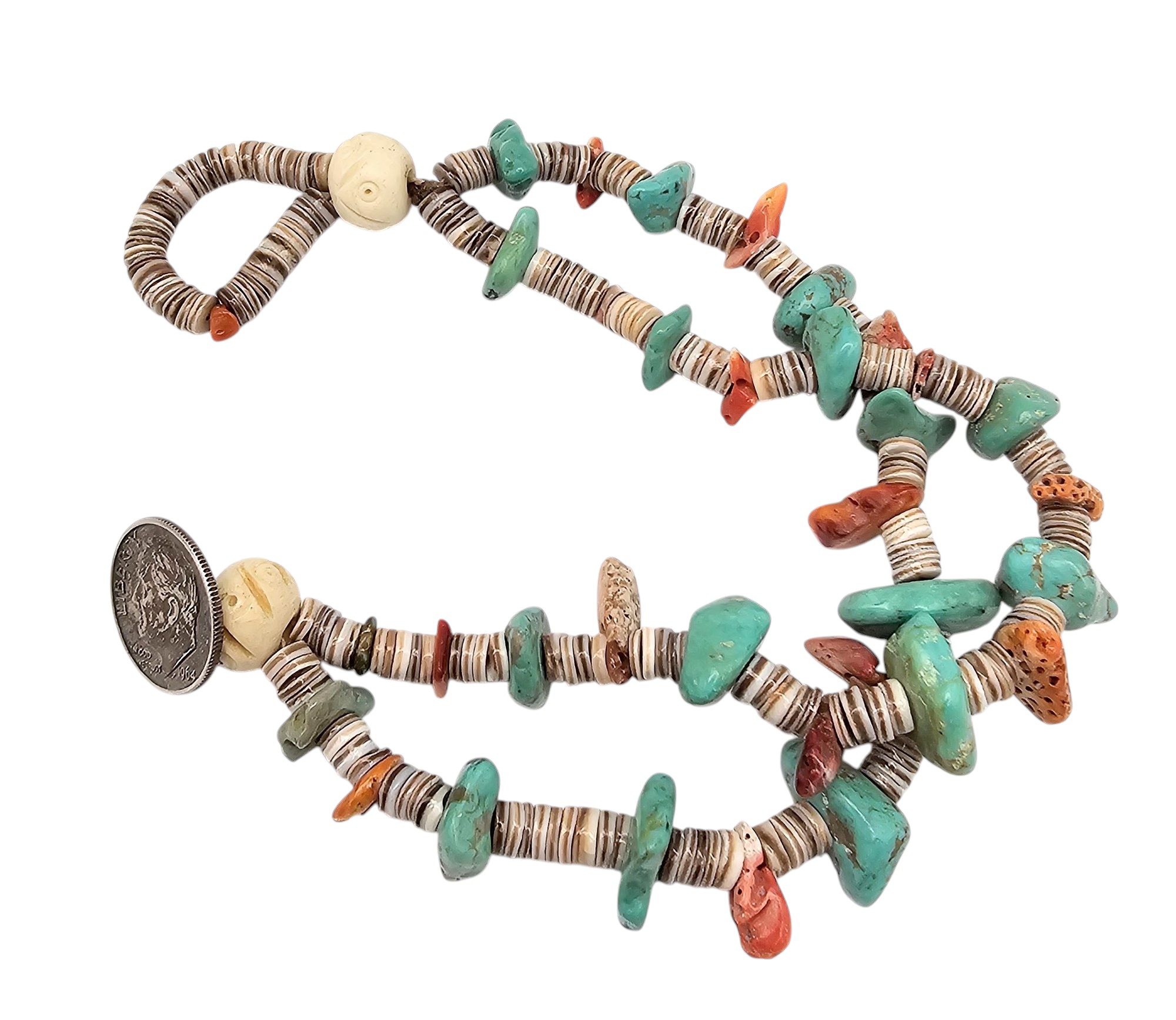 Southwestern Dime Turquoise Coral Heishi Toggle Bracelet 36.8 G