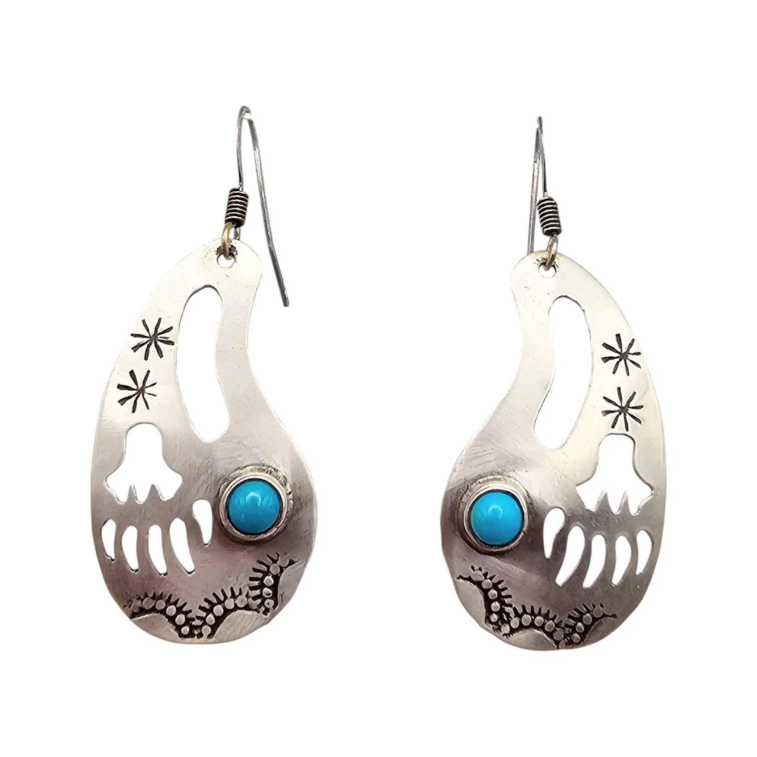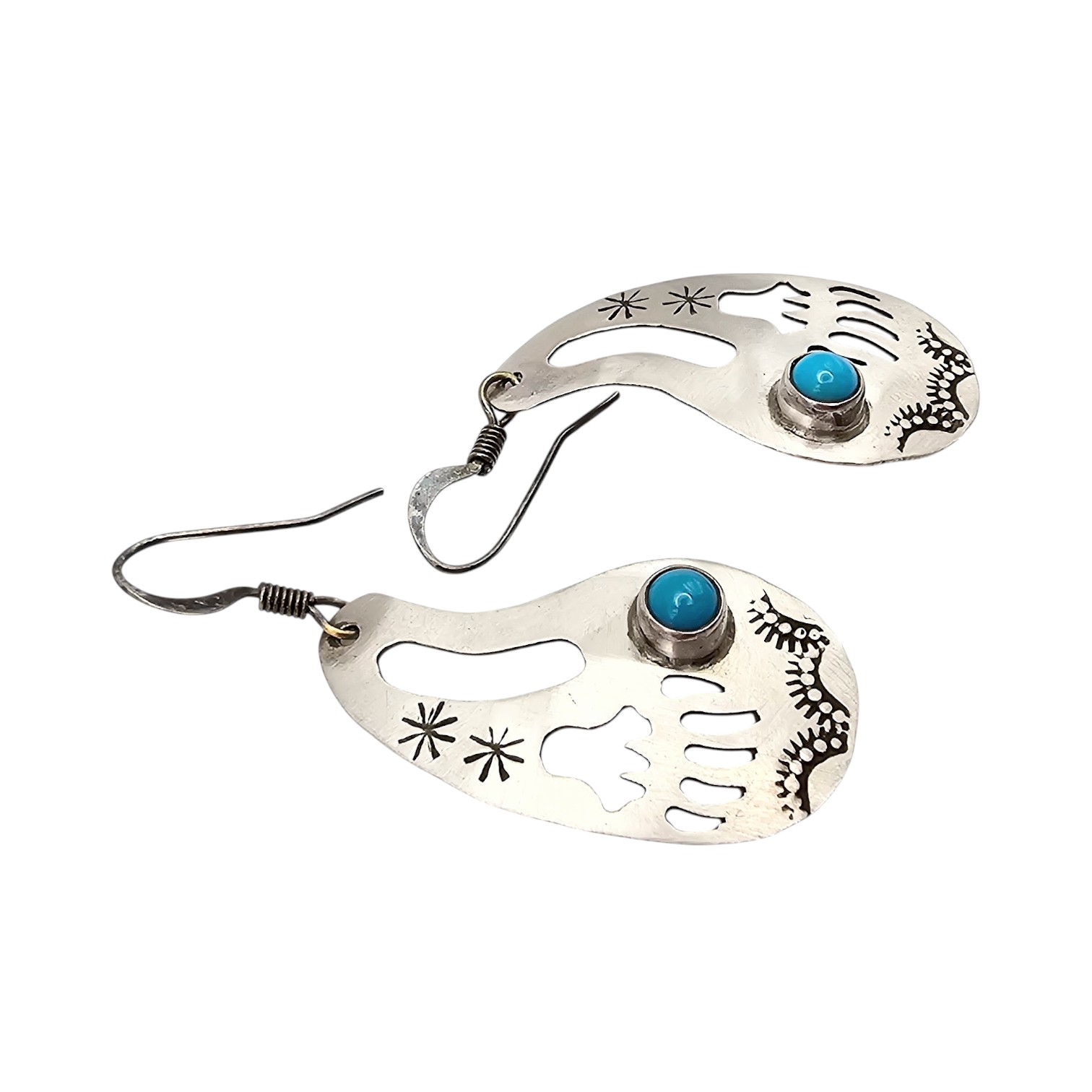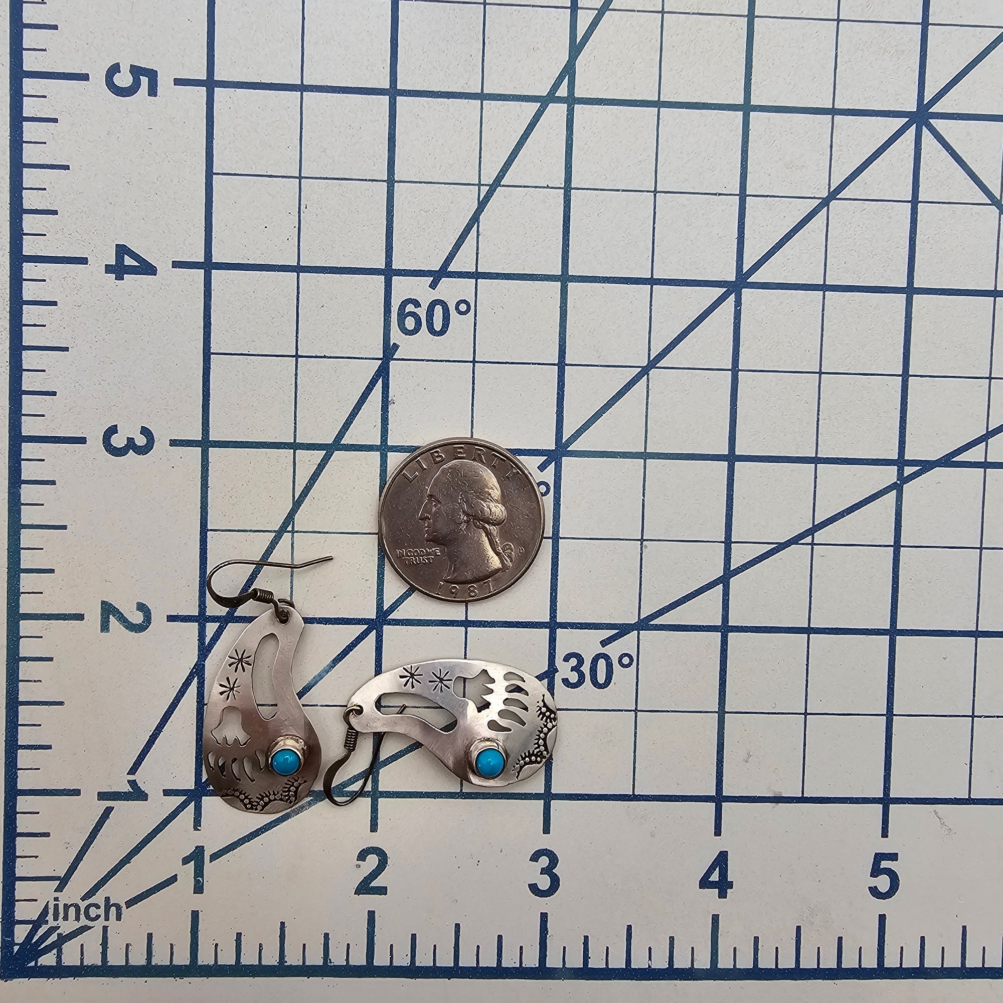 JJ Southwestern Turquoise Sterling Silver Bear Paw Dangle Earrings 3.3 G