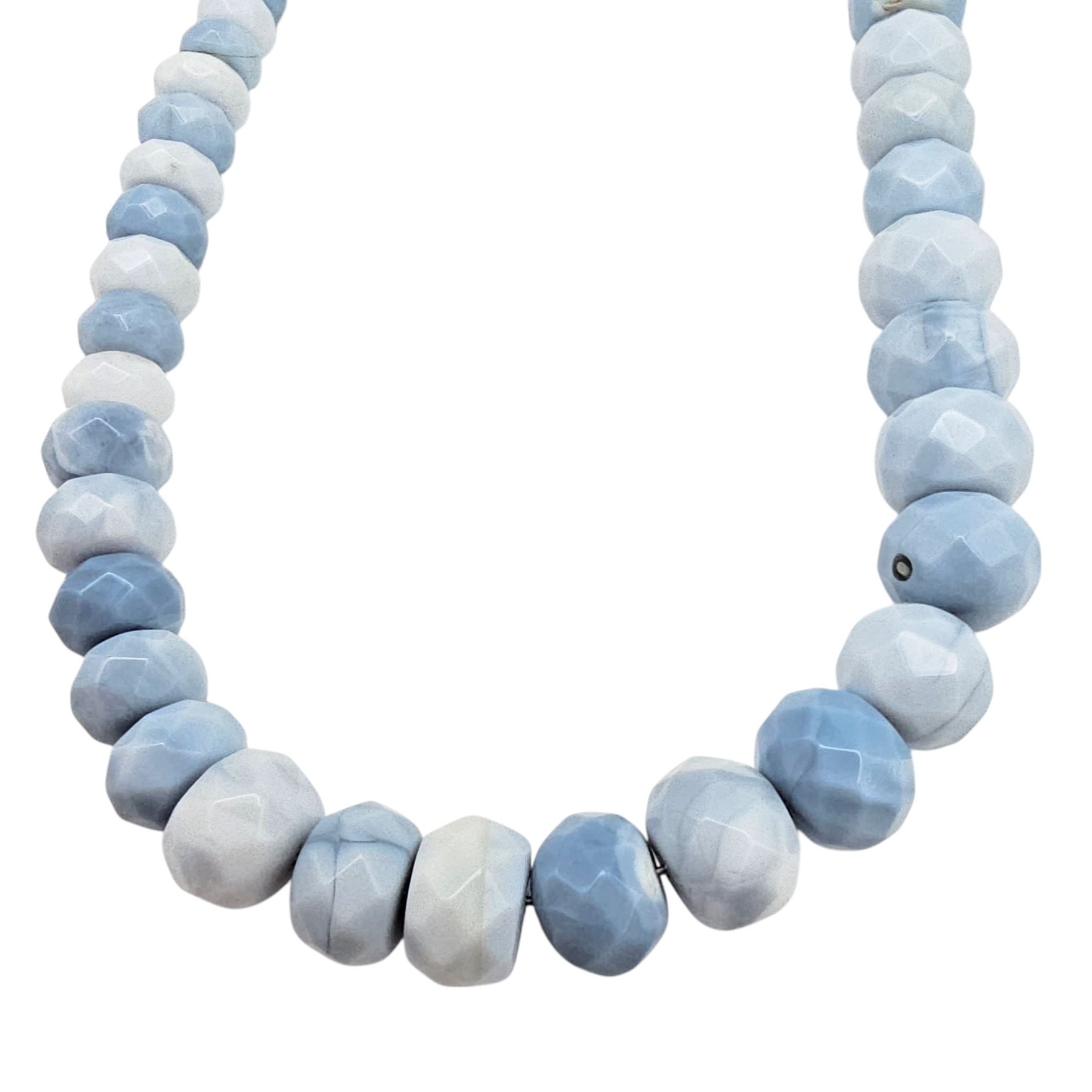 Jay King Mine Finds Cushion Cut Blue Opal Sterling Silver Graduated Bead Necklace 36.2 G
