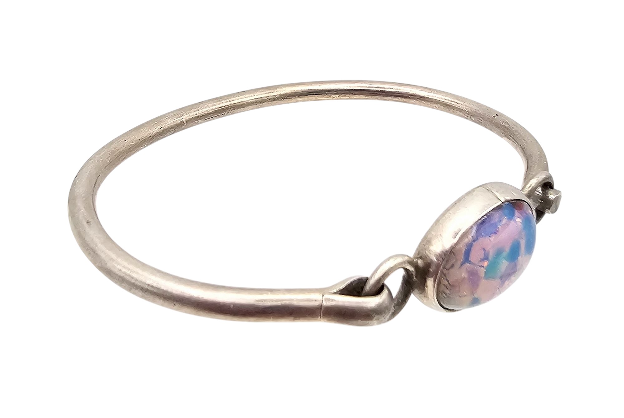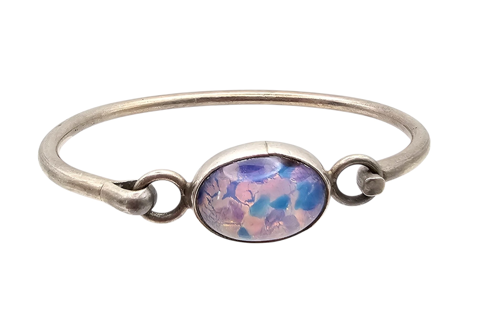 Mexico Foiled Glass Sterling Silver Eye Hook Bangle Bracelet 20 G