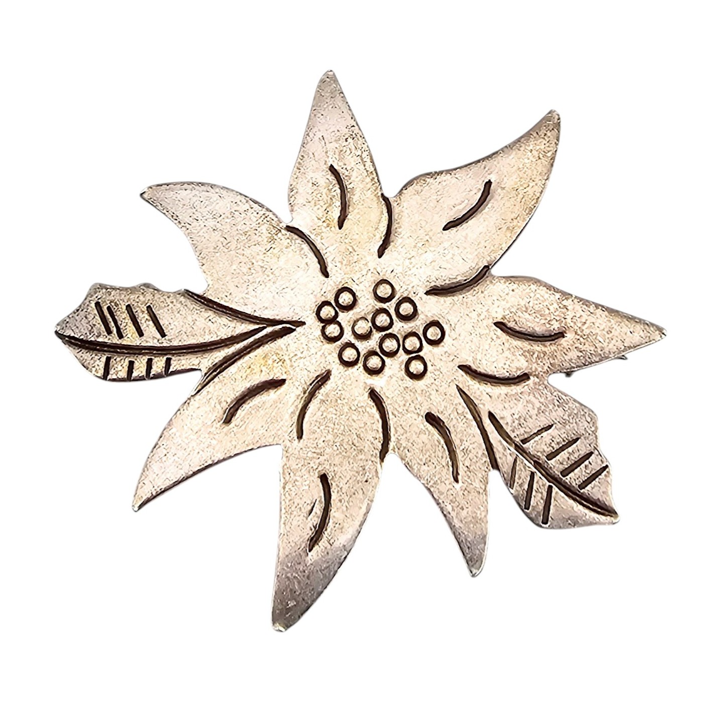 Mexico TV-?? Sterling Silver Poinsettia Flower Brooch 11.2 G