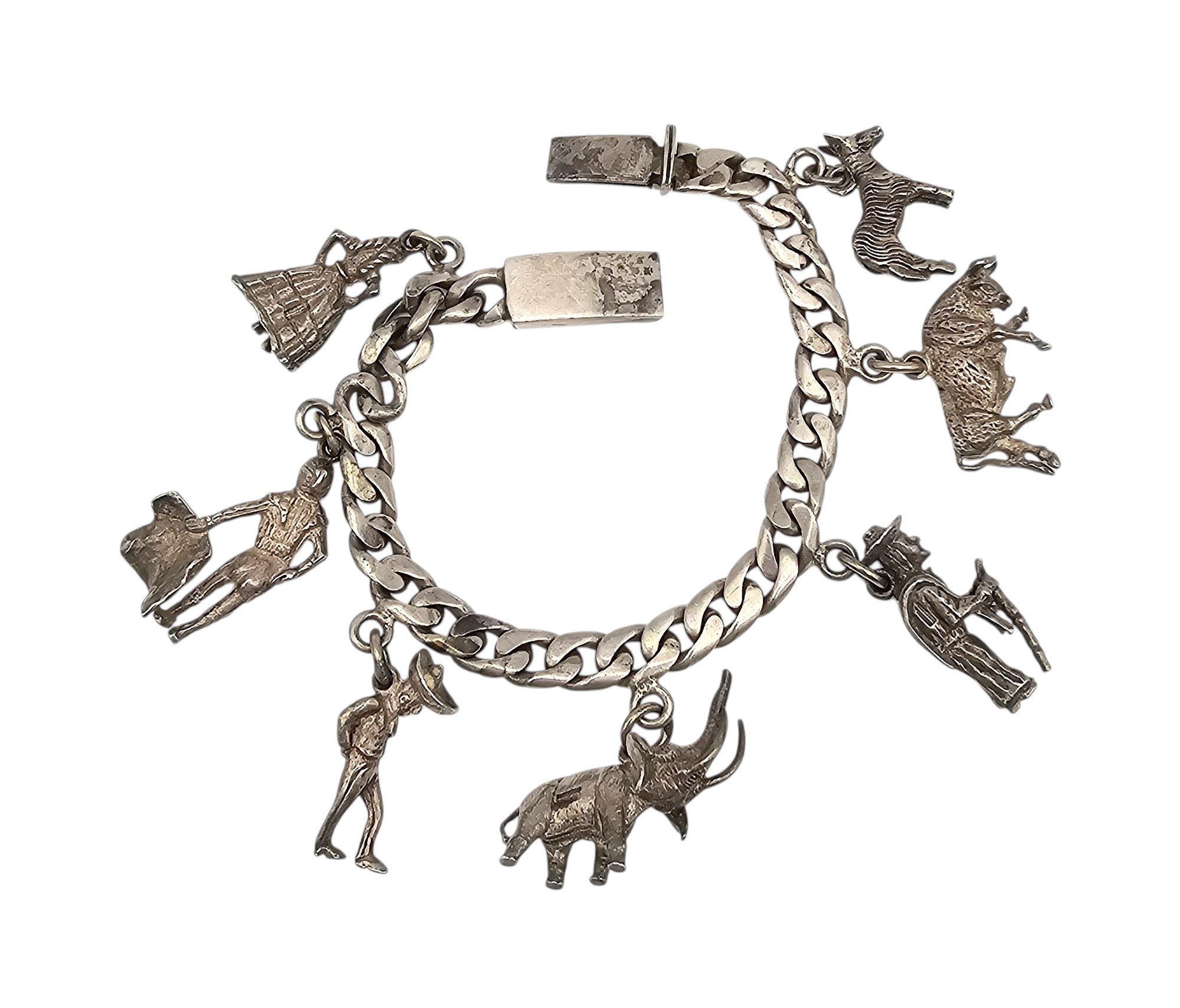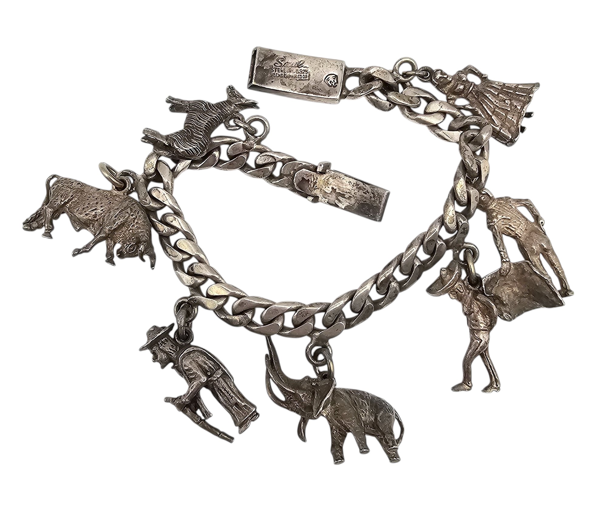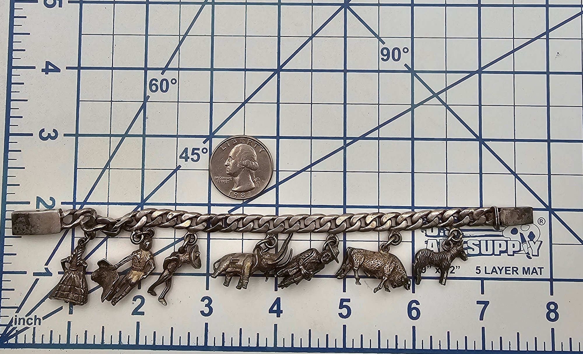 Saul Sterling Silver Matador Bull Charm Bracelet 64.5 G