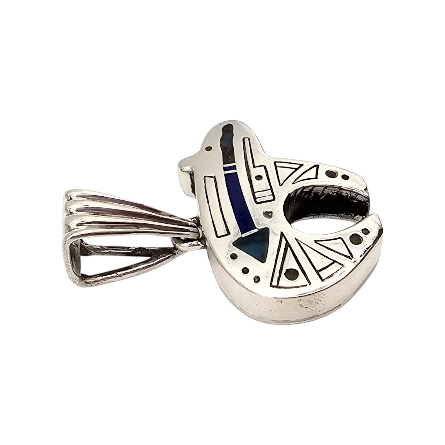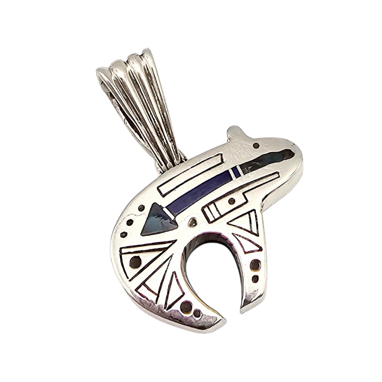 Ray Tracey Knifewing Navajo Malachite Lapis Turquoise Sterling Bear Pendant 7.2 G