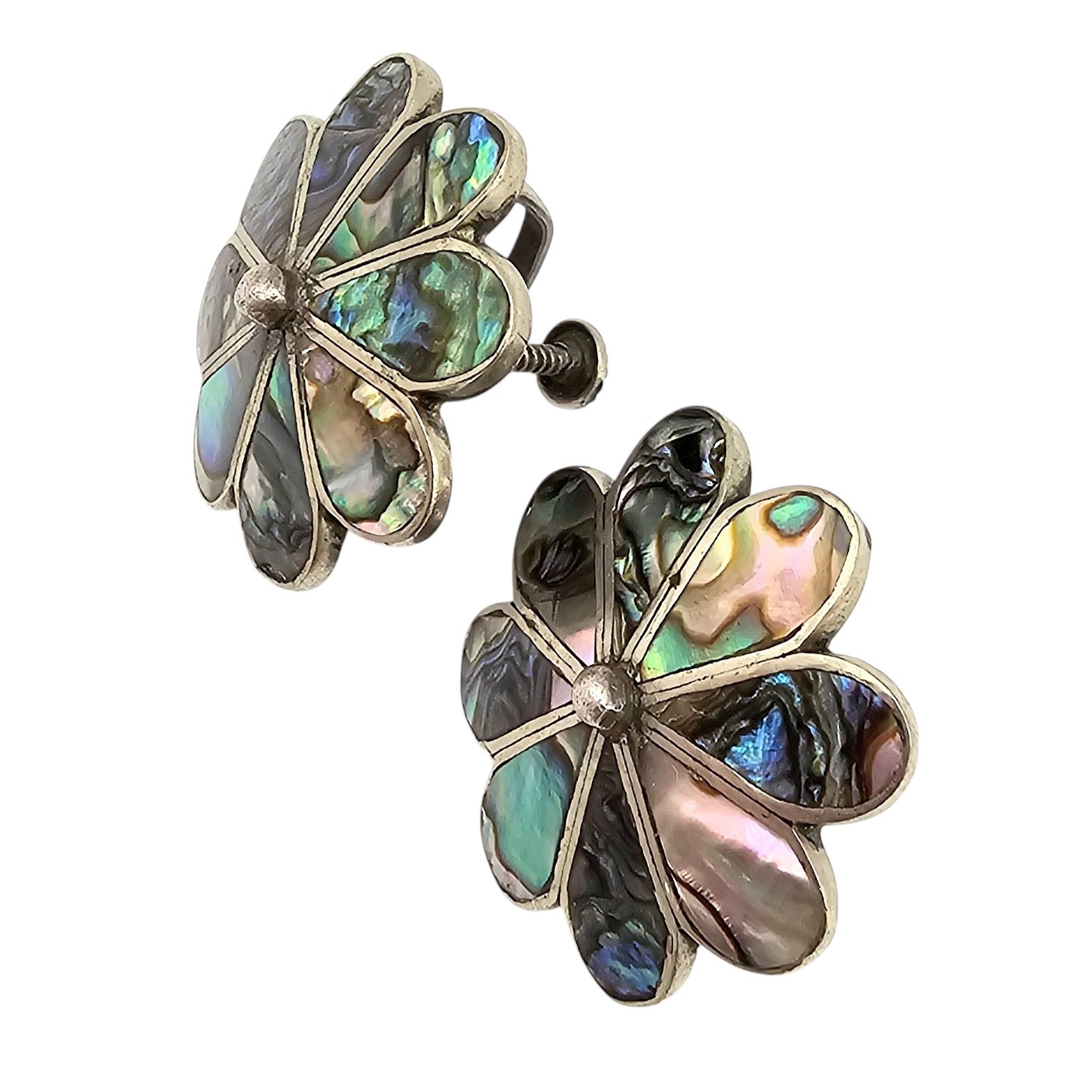 Mexico Alpaca Abalone Flower Earrings 10.9 G