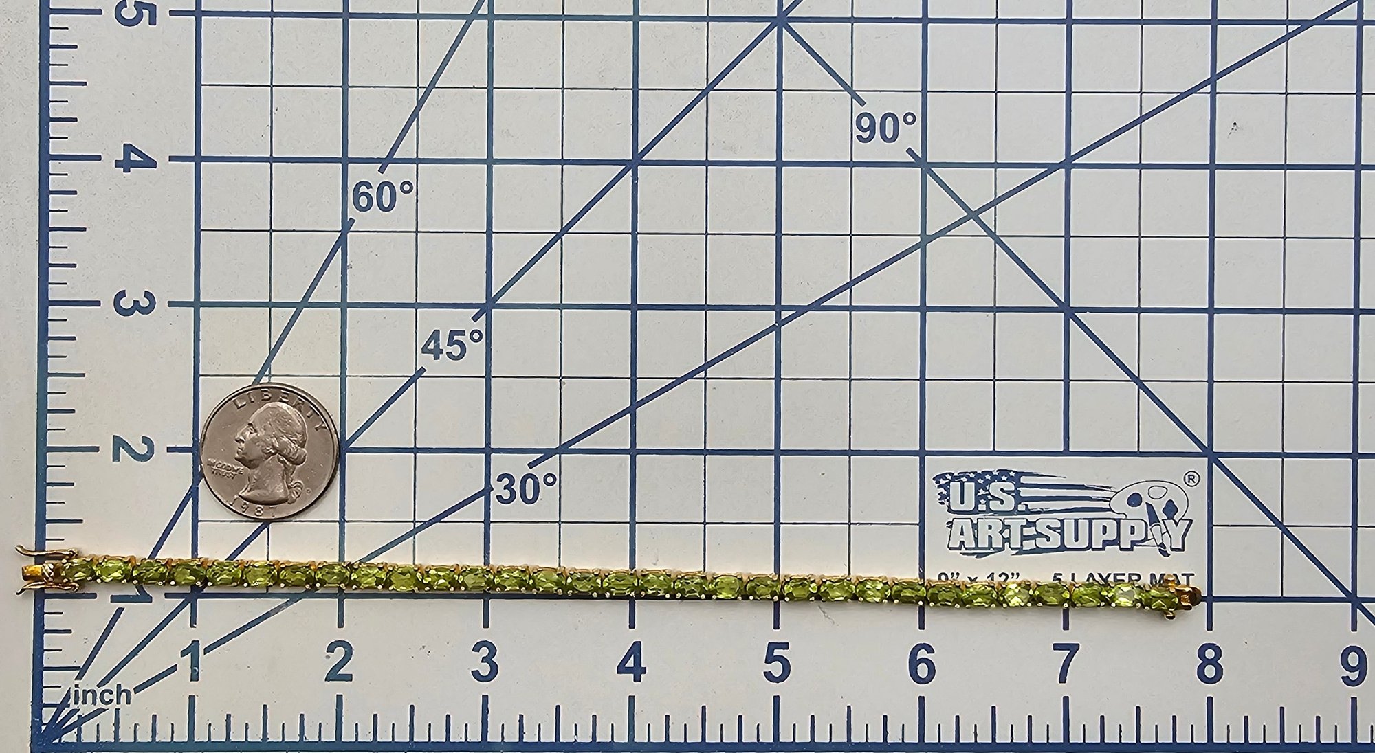Peridot Gold Over Sterling Silver Tennis Bracelet 12.2 G