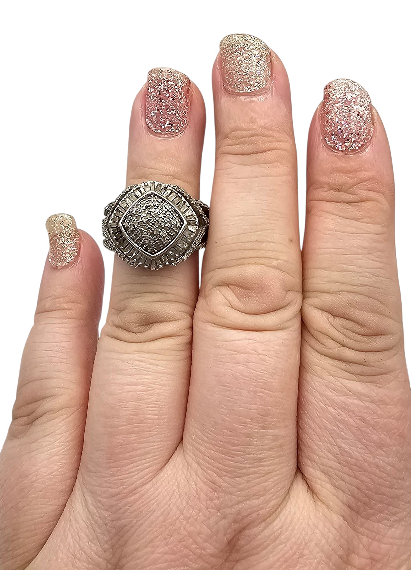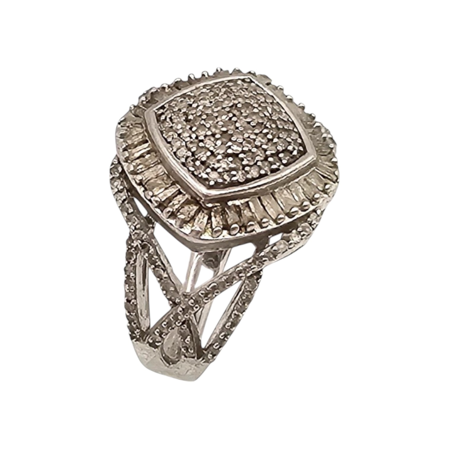 Signed Diamond Sterling Silver Cocktail Ring Size 5.75 6.3 G
