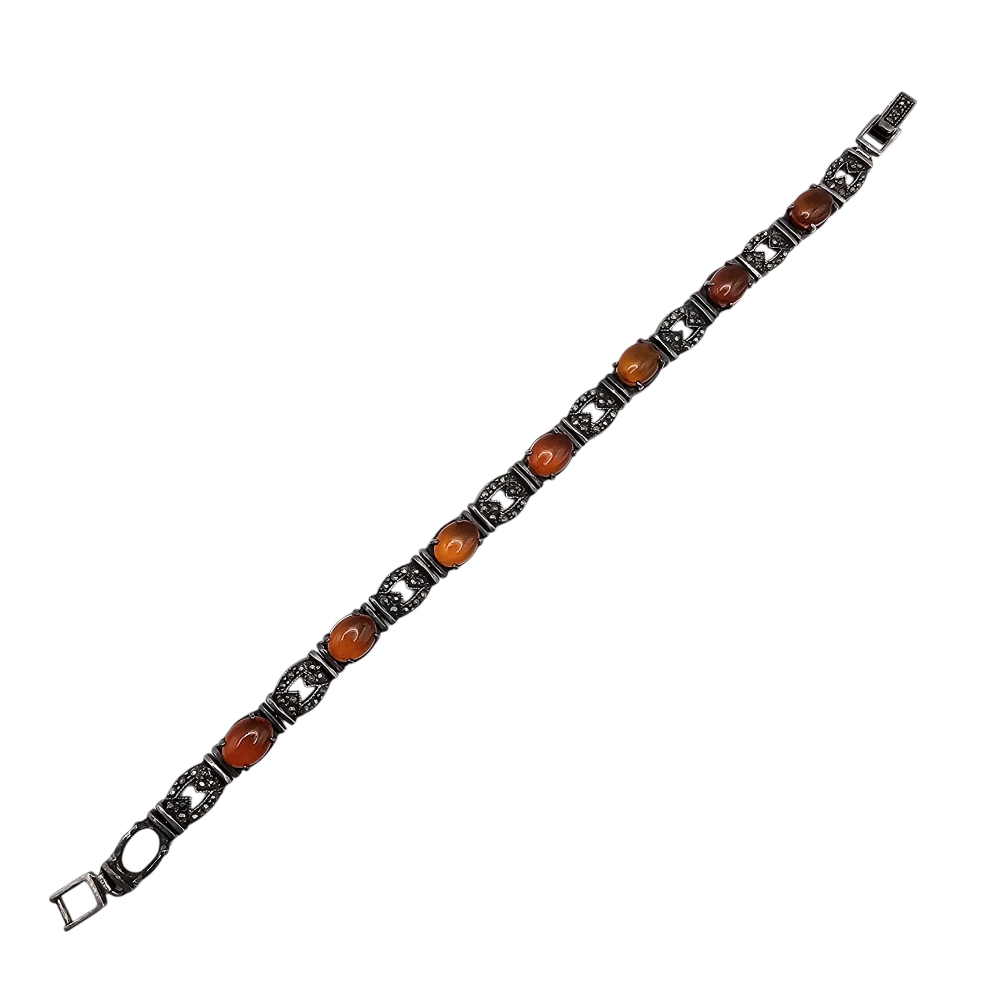 JJ Amber Marcasite Sterling Silver Bracelet 16.7 G missing one stone