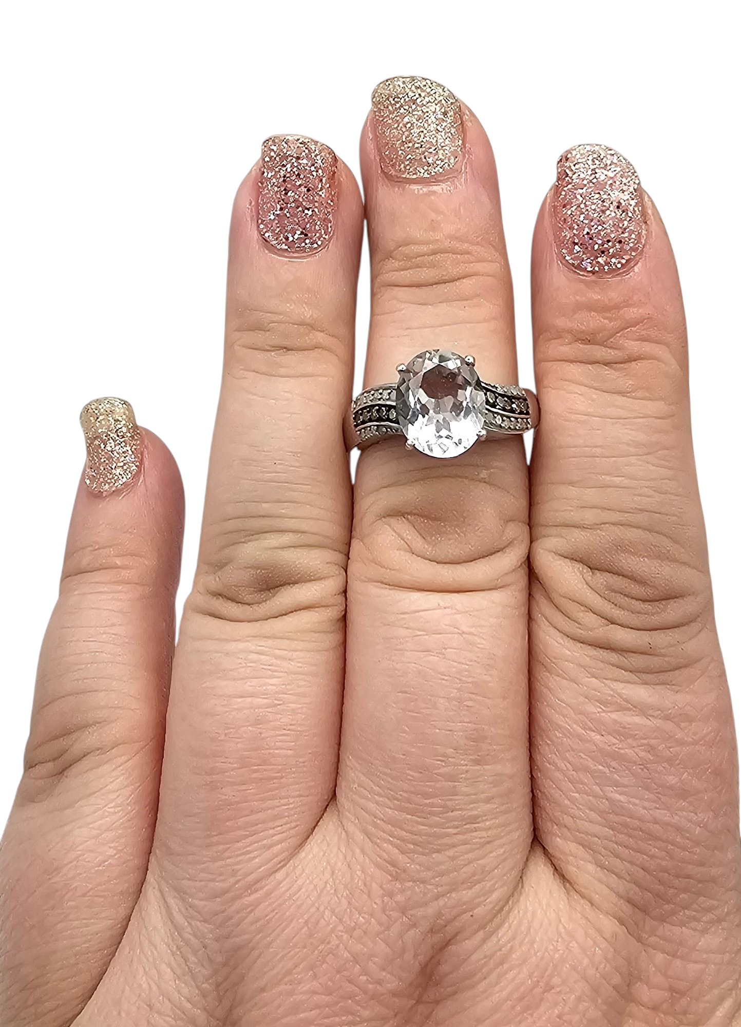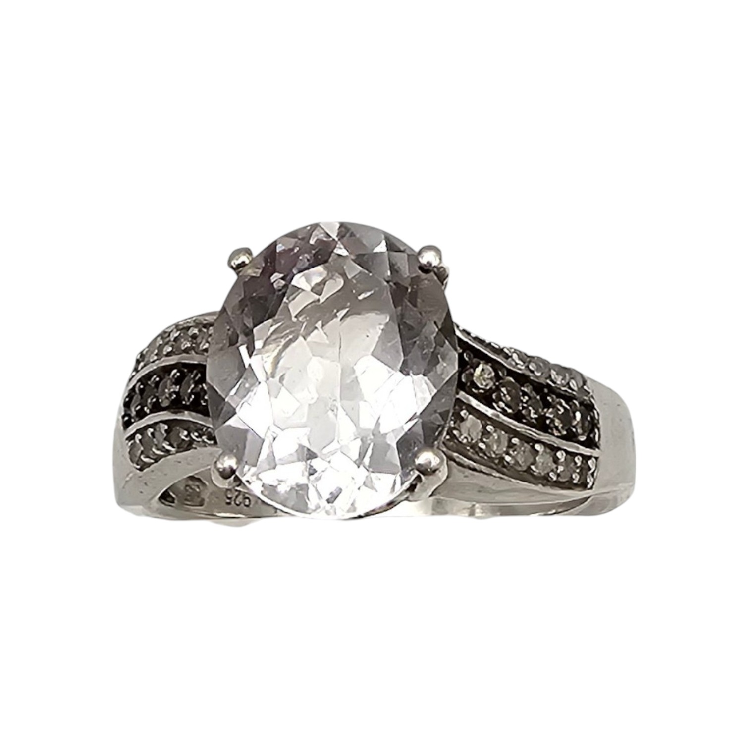 D’Joy Clear stone Sterling Silver Cocktail Ring Size 7.5 4.8 G