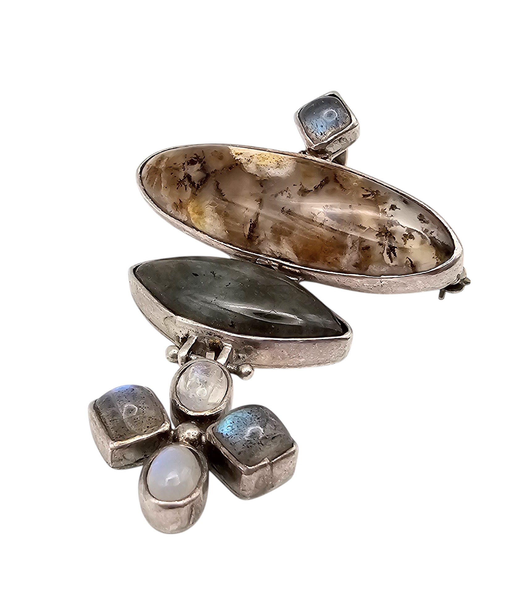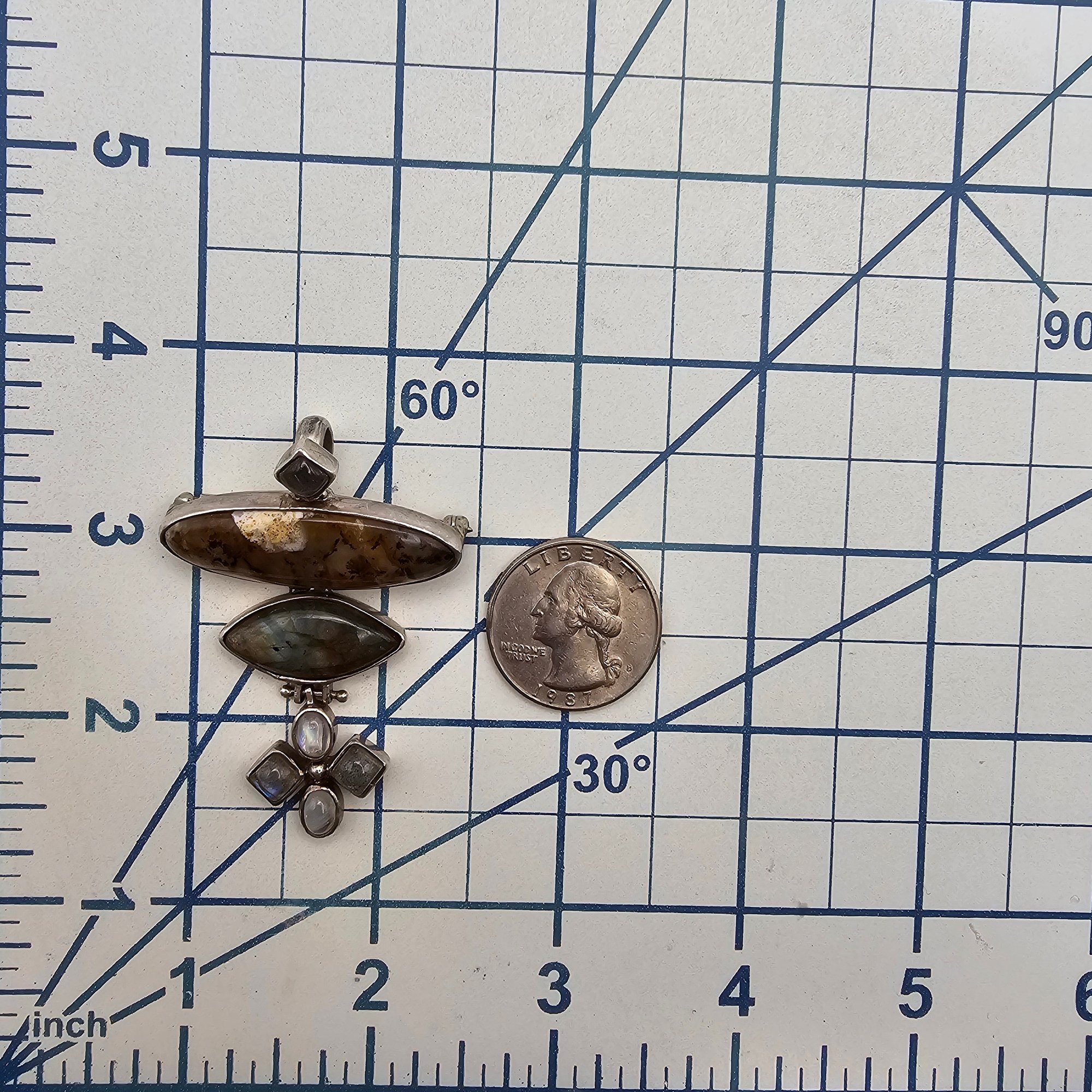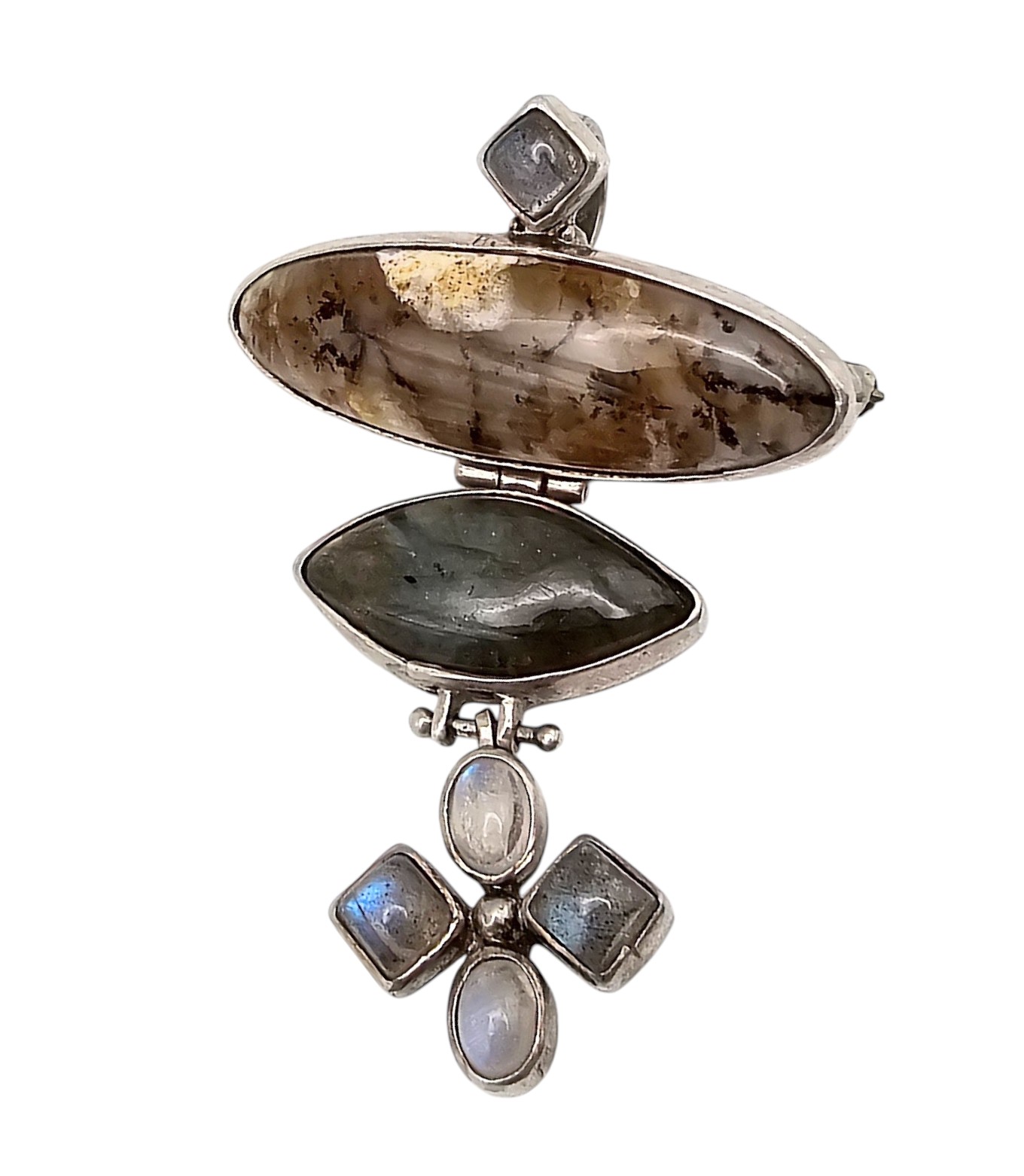 50M'S Agate Moonstone Labradorite Sterling Silver Hinge Pendant 17.3 G