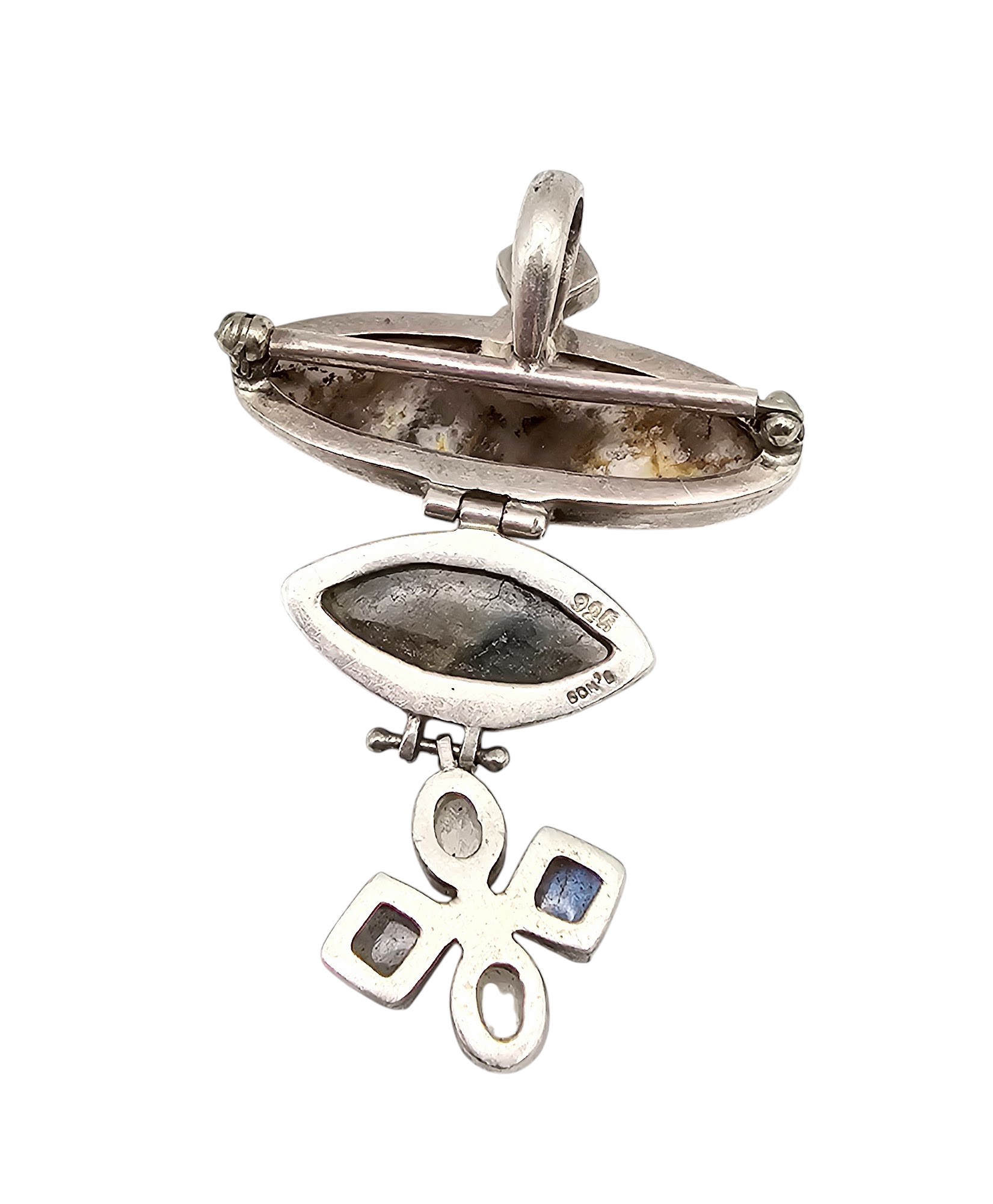 50M’S Agate Moonstone Labradorite Sterling Silver Hinge Pendant 17.3 G