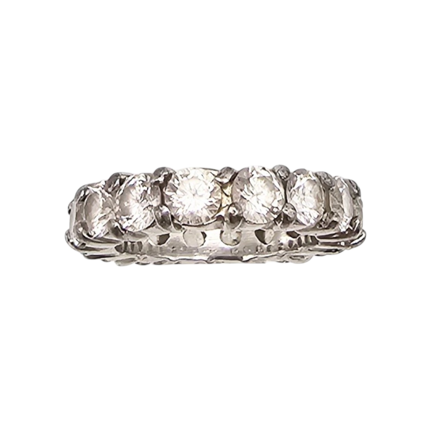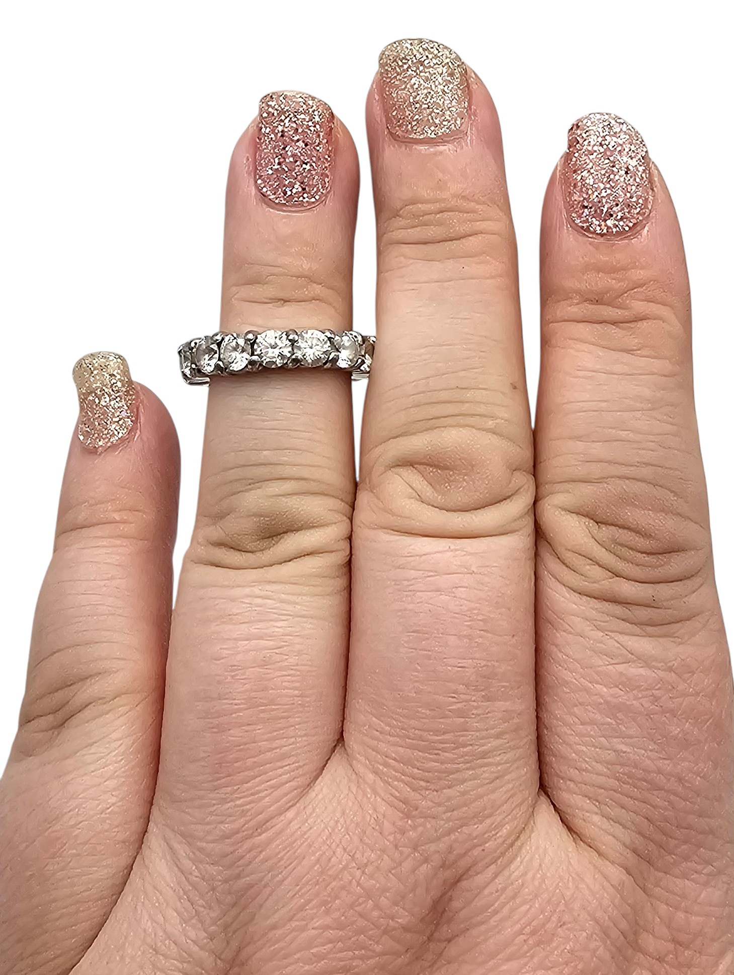 Rhinestone Sterling Silver Eternity Ring Size 5 5.9 G