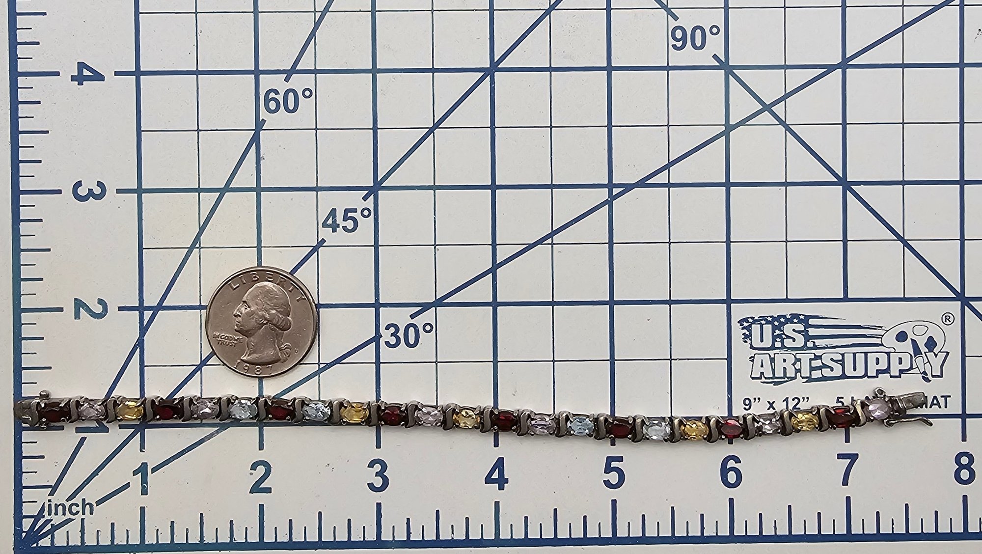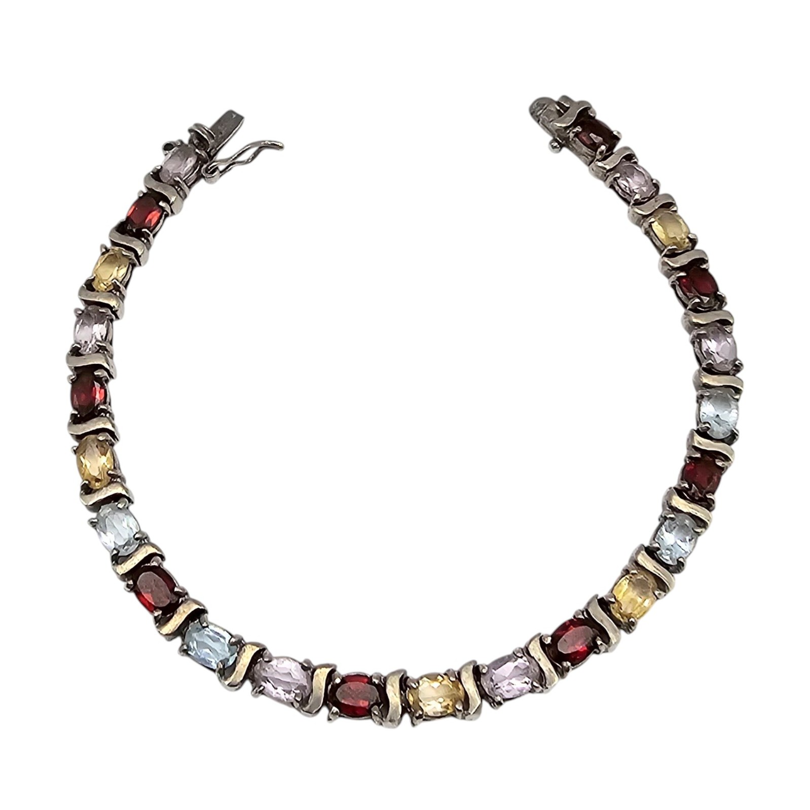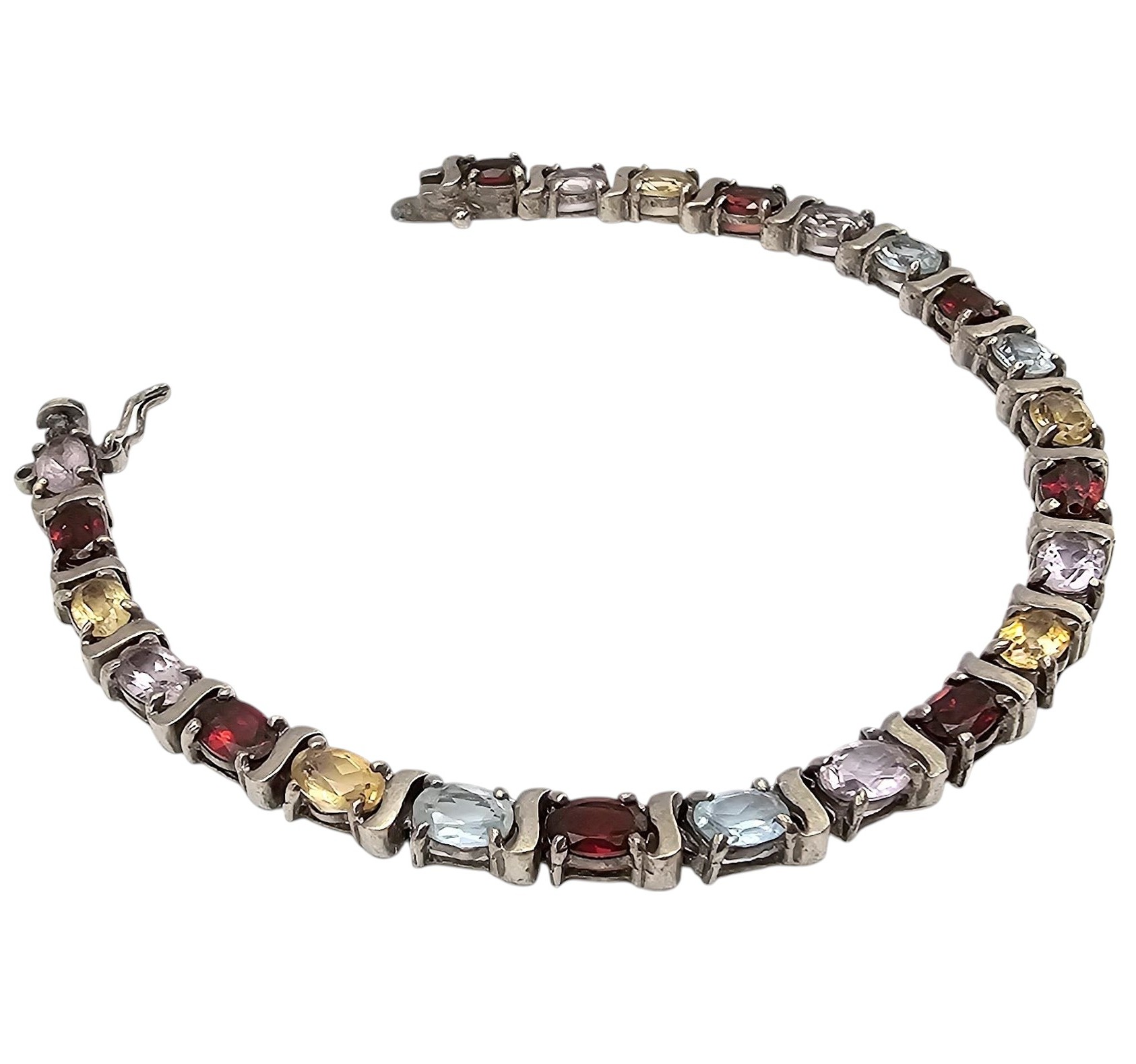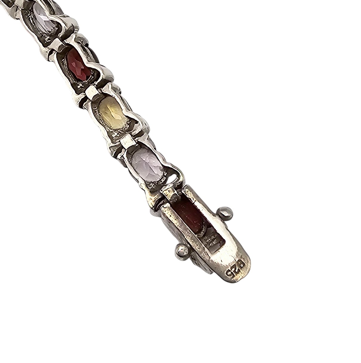 Topaz Citrine Garnet Sterling Silver Tennis Bracelet 12.7 G