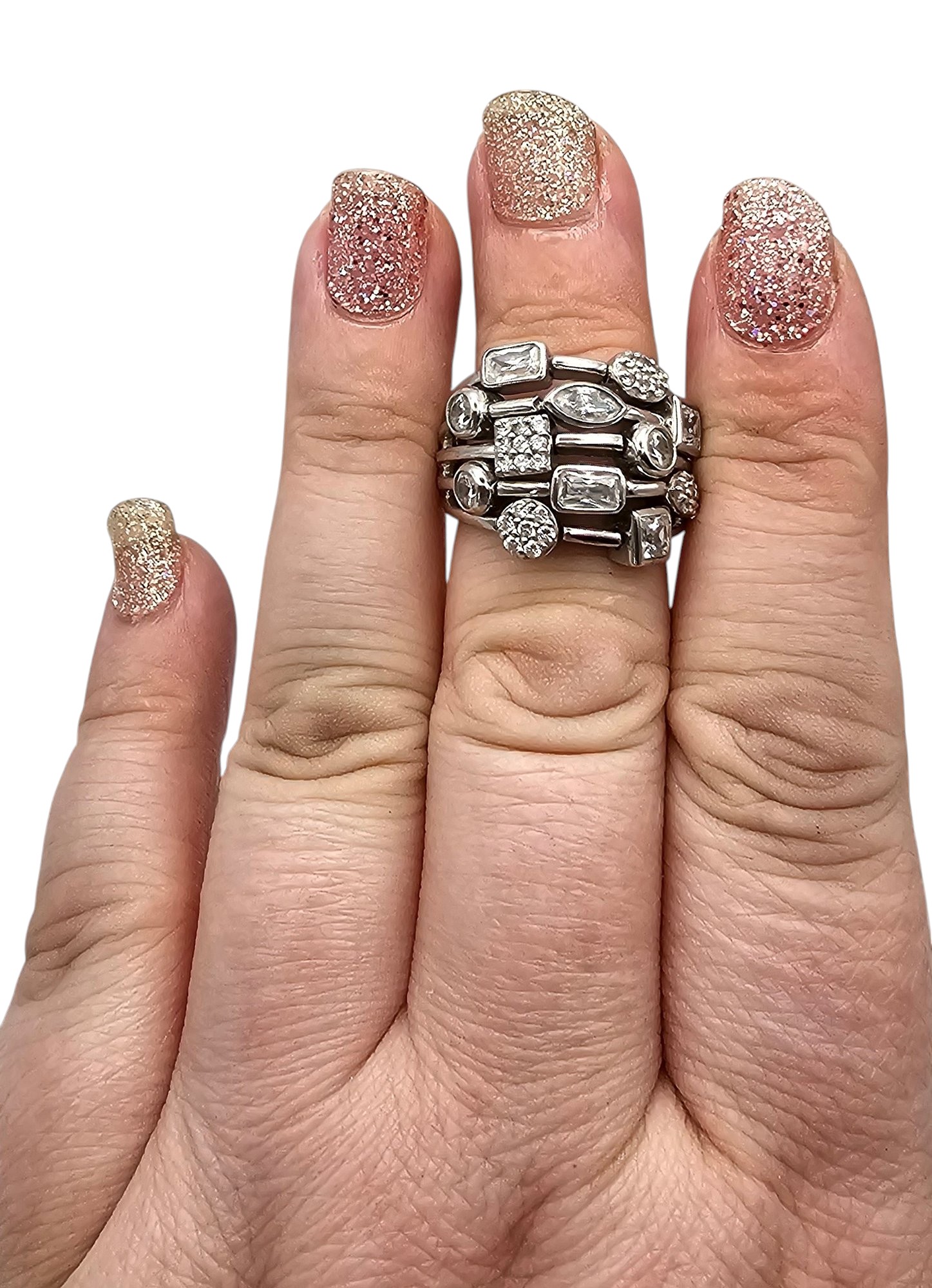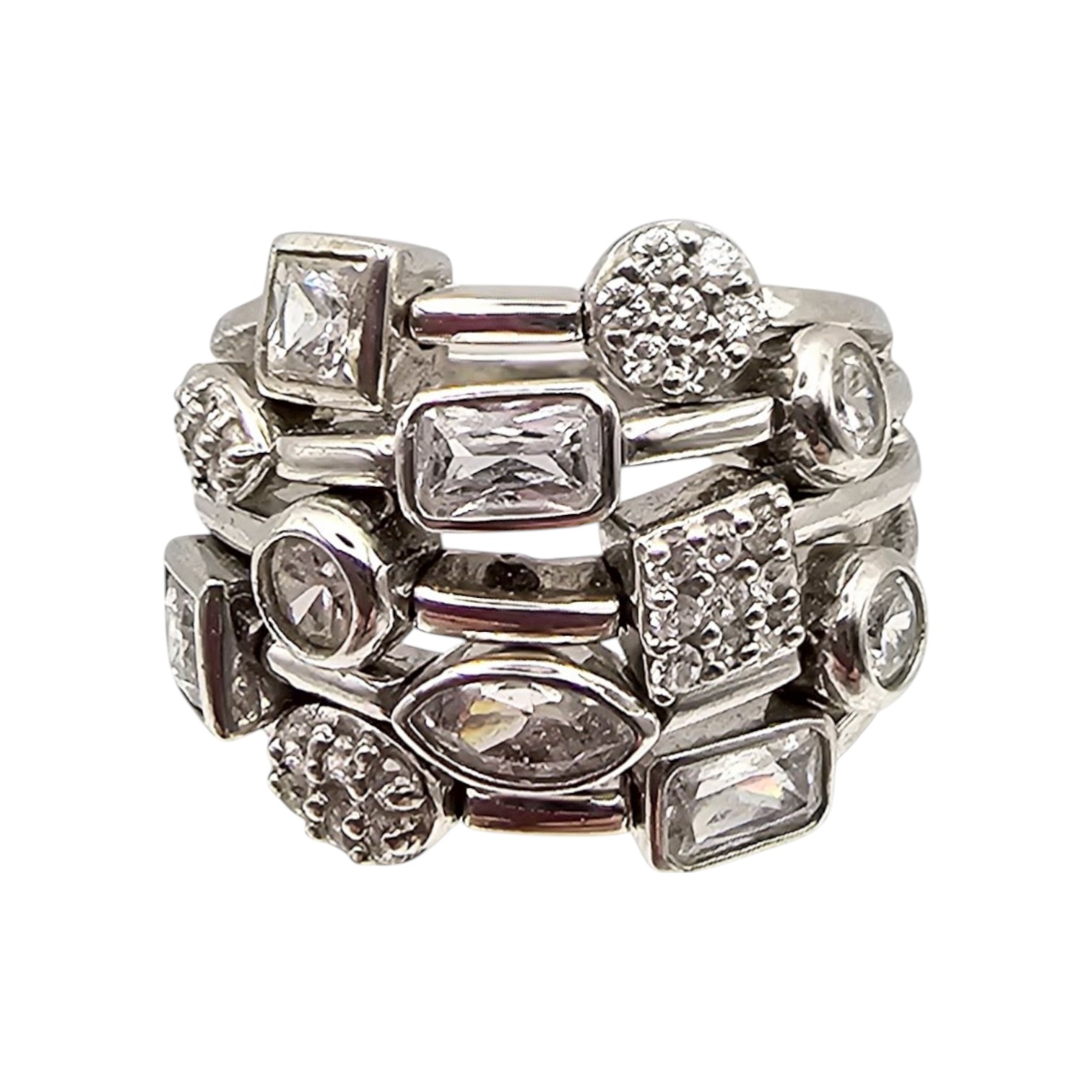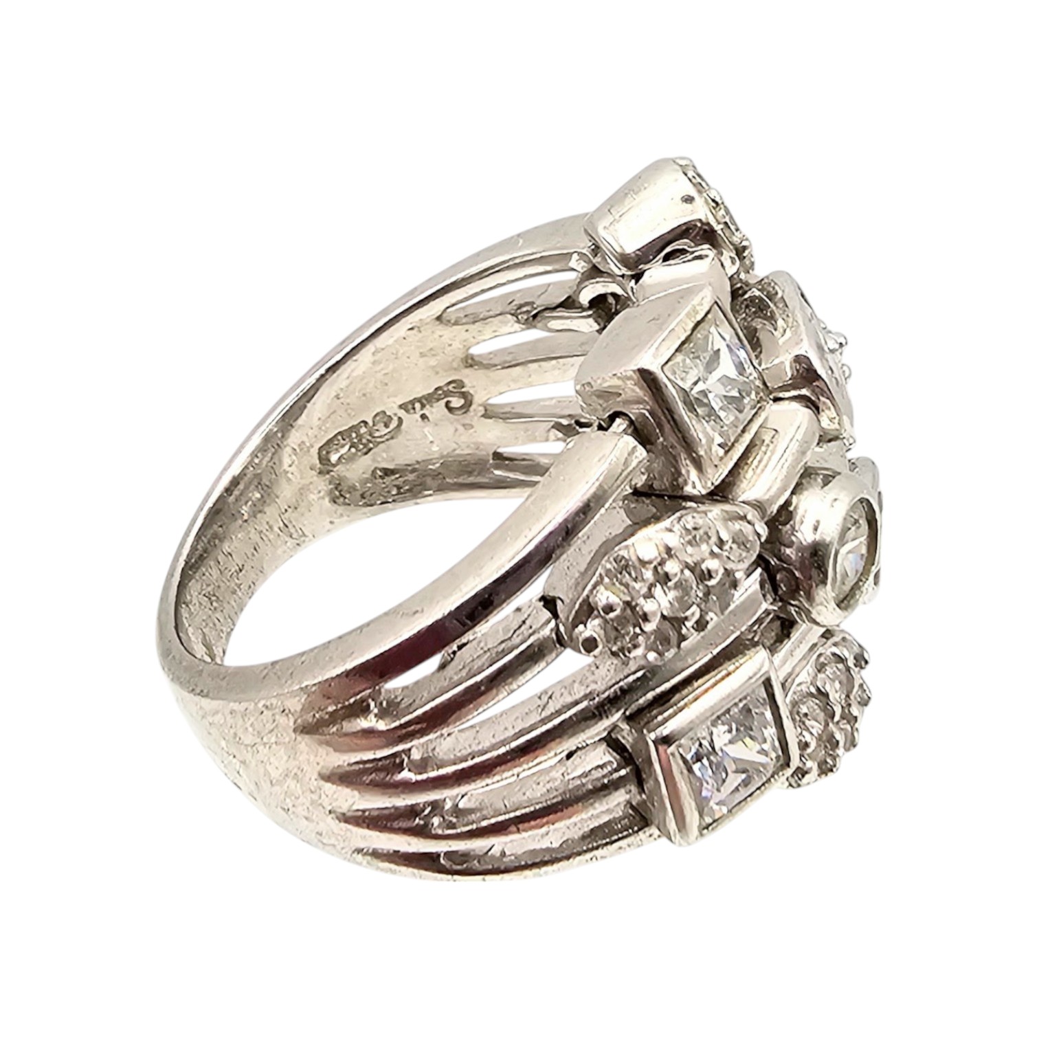 GCM Cubic Zirconia Sterling Silver Cocktail Ring Size 7 10 G
