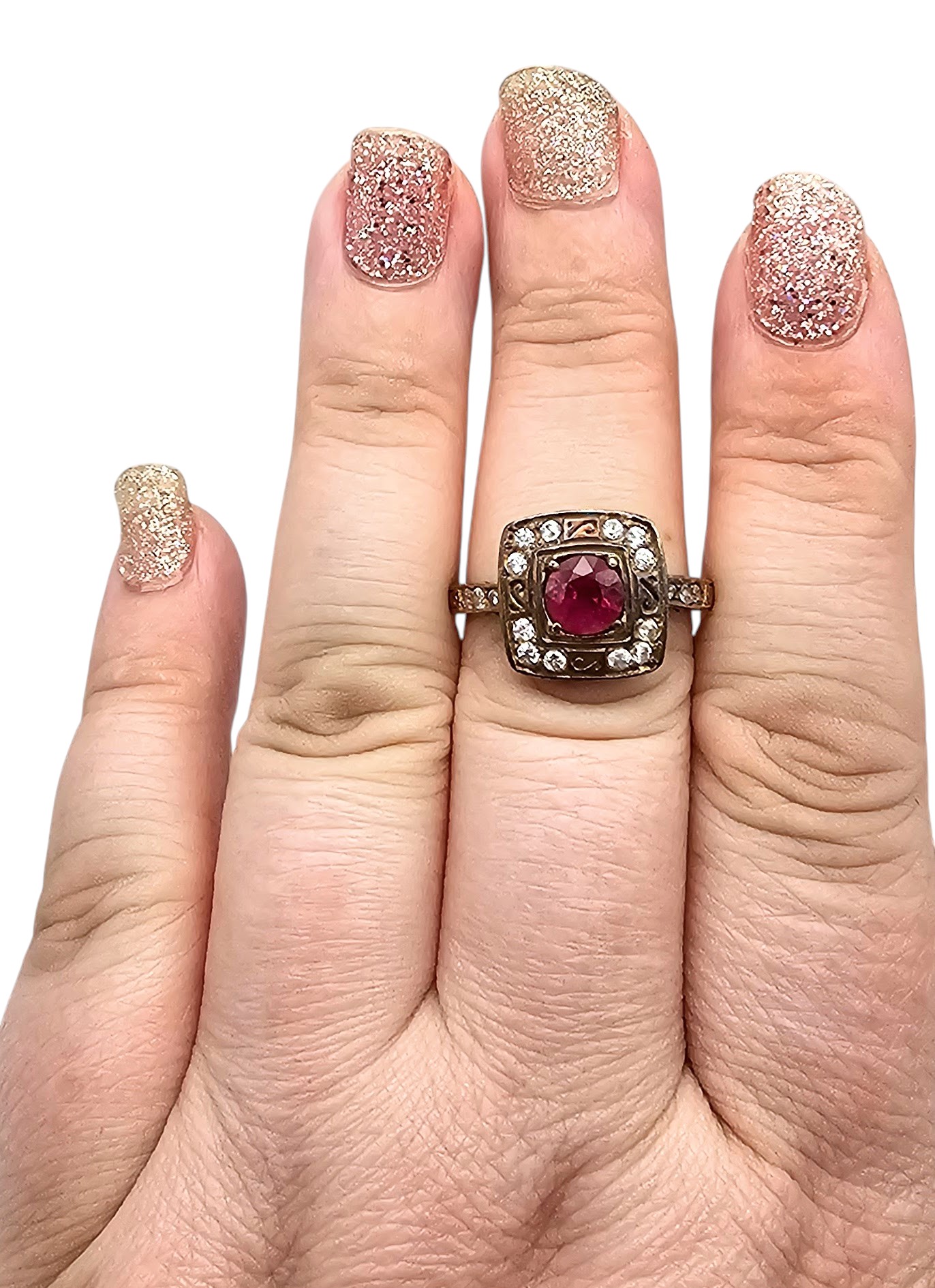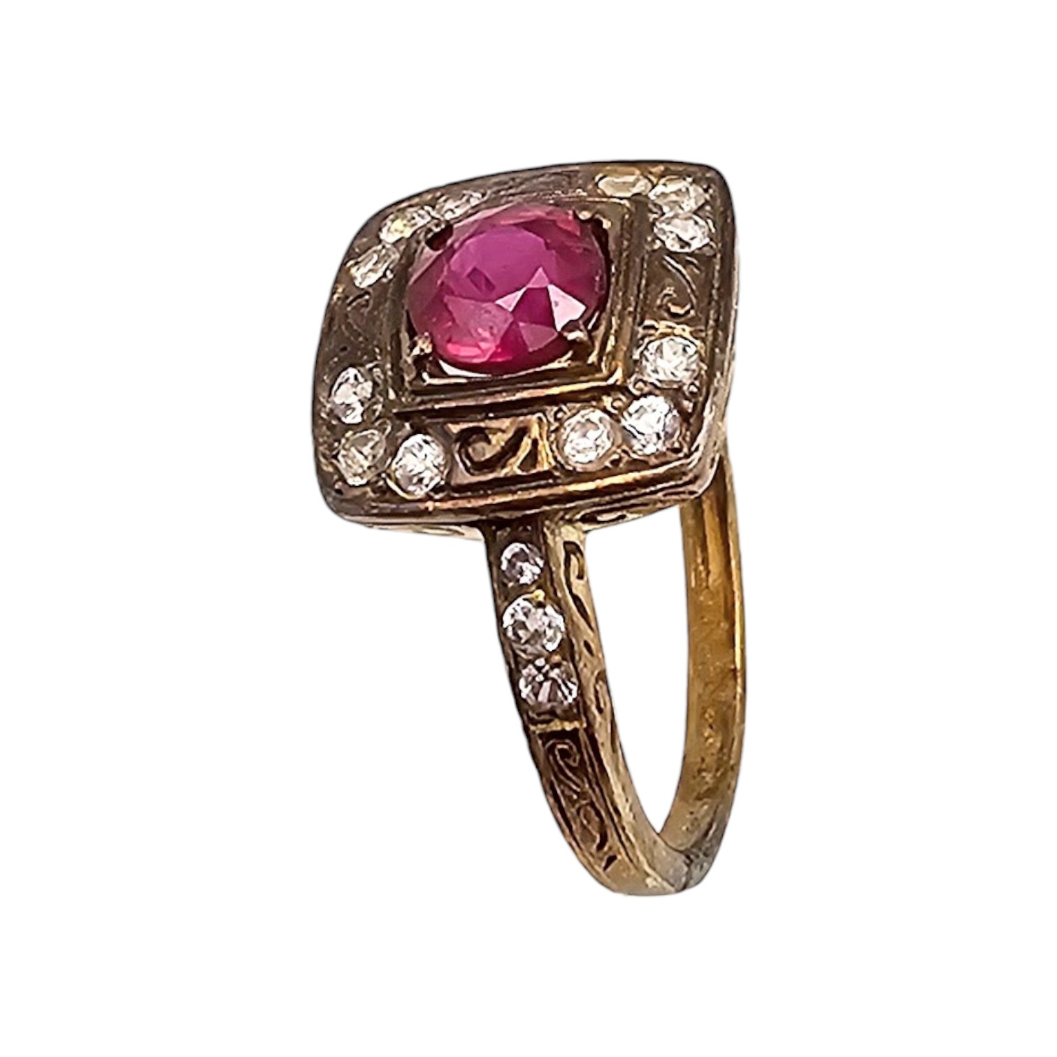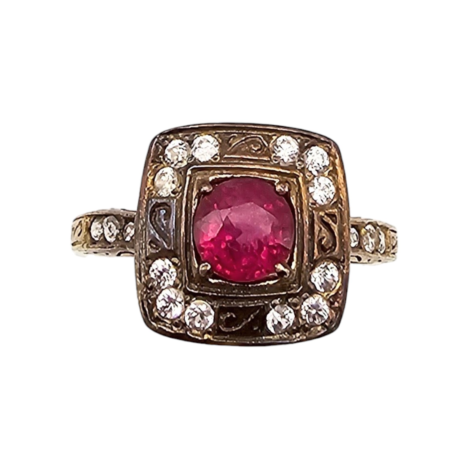 STS Ruby White Zircon Gold Over Sterling Silver Cocktail Ring Size 8.5 3.9 G