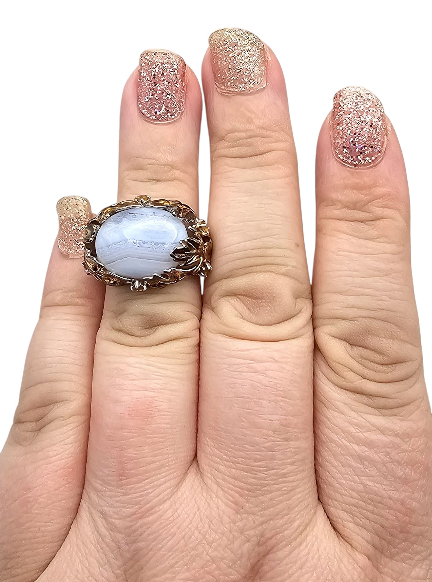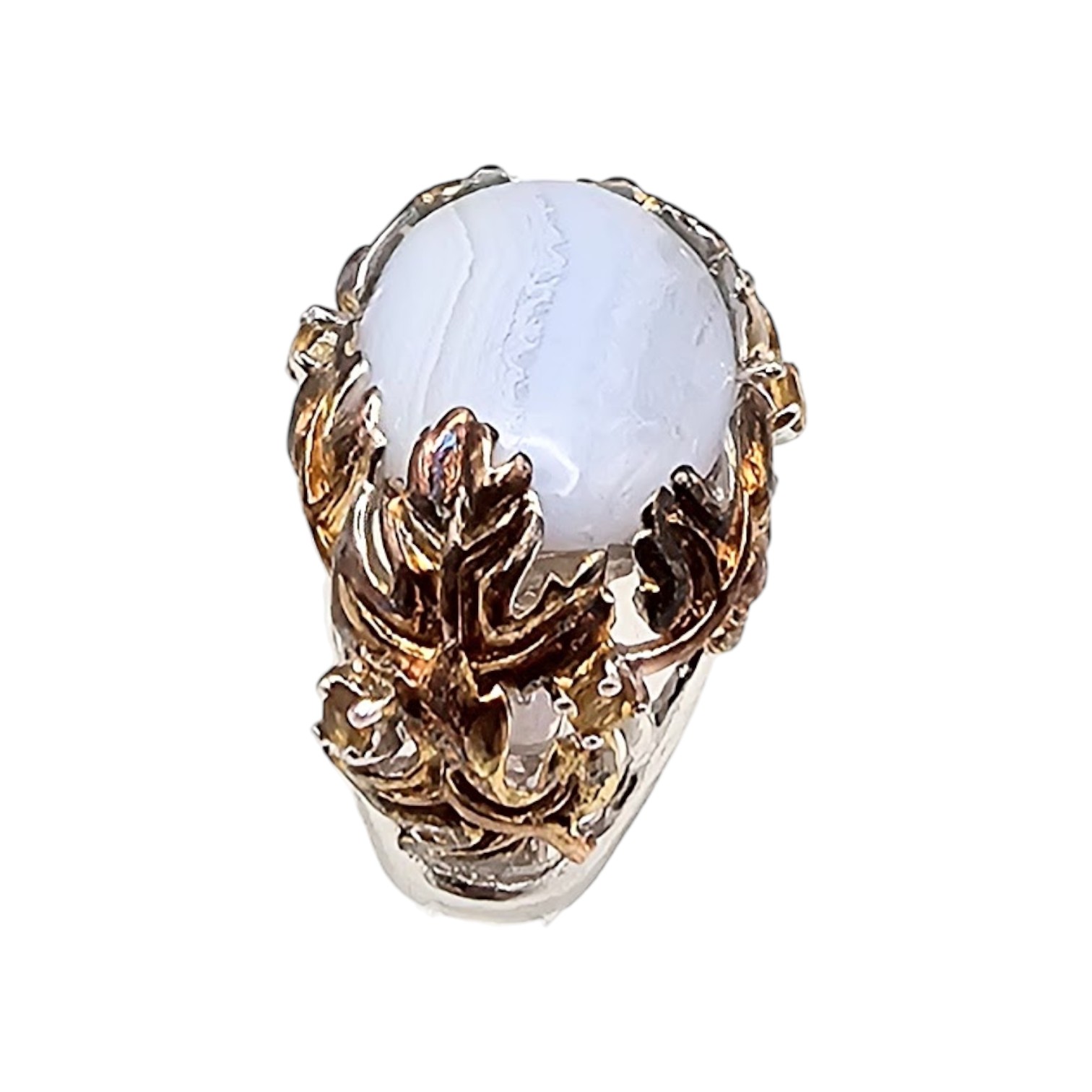Ross Simons Banded Agate Sterling Silver Two-Tone Ring Size 5.5 7.2 G
