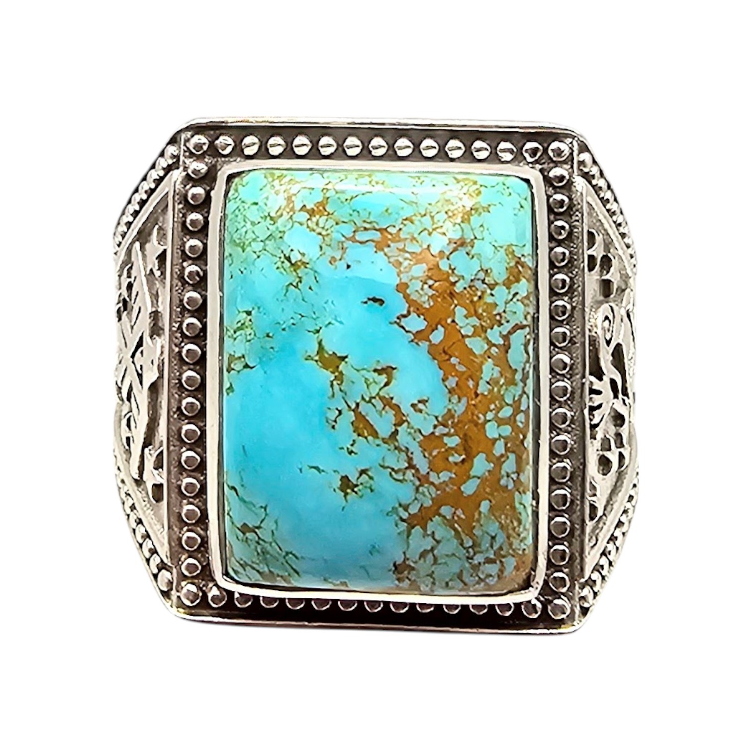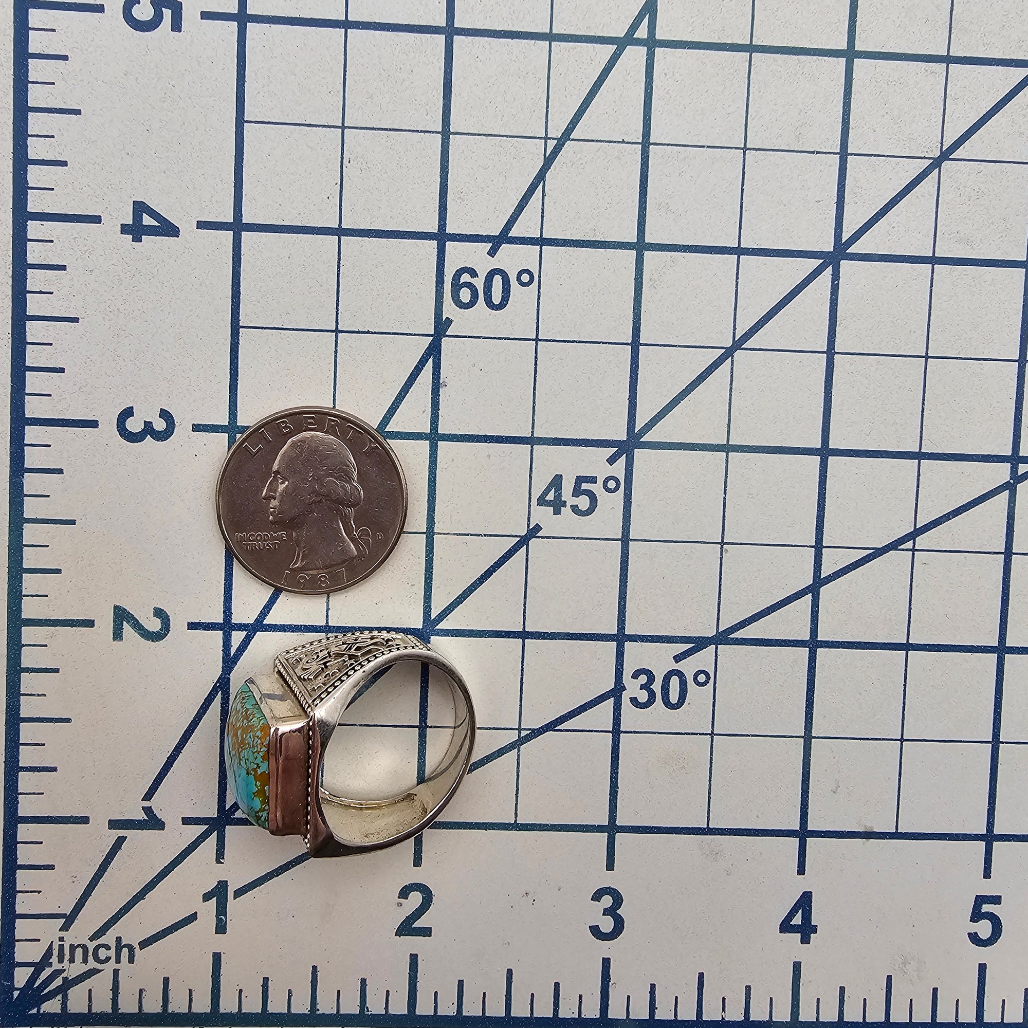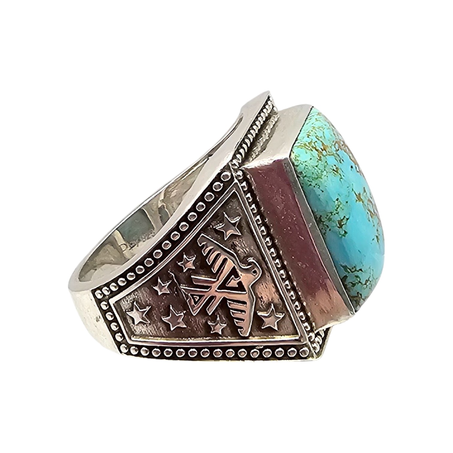 D’Joy Turquoise Southwestern Sterling Silver Thunderbird Kokopelli Ring Size 10.75 10.6 G