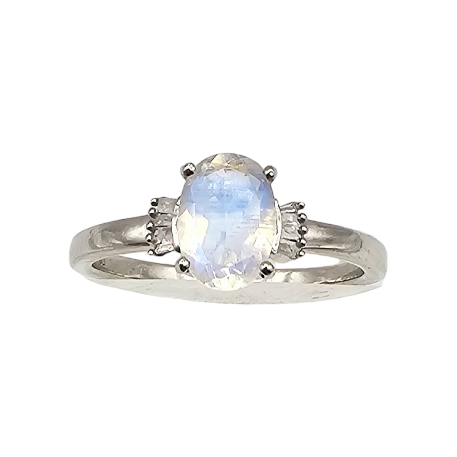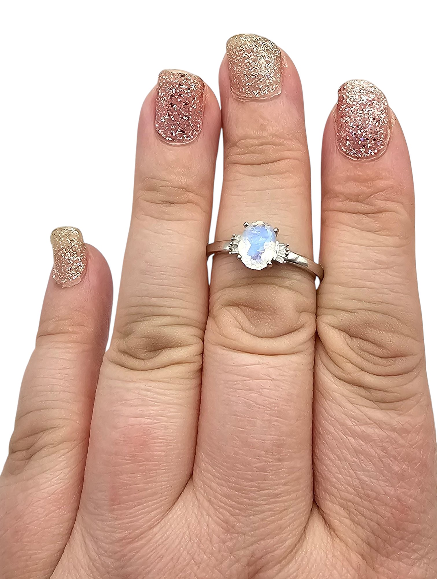 D’Joy Diamond Moonstone Sterling Silver Ring Size 8.5 2.6 G