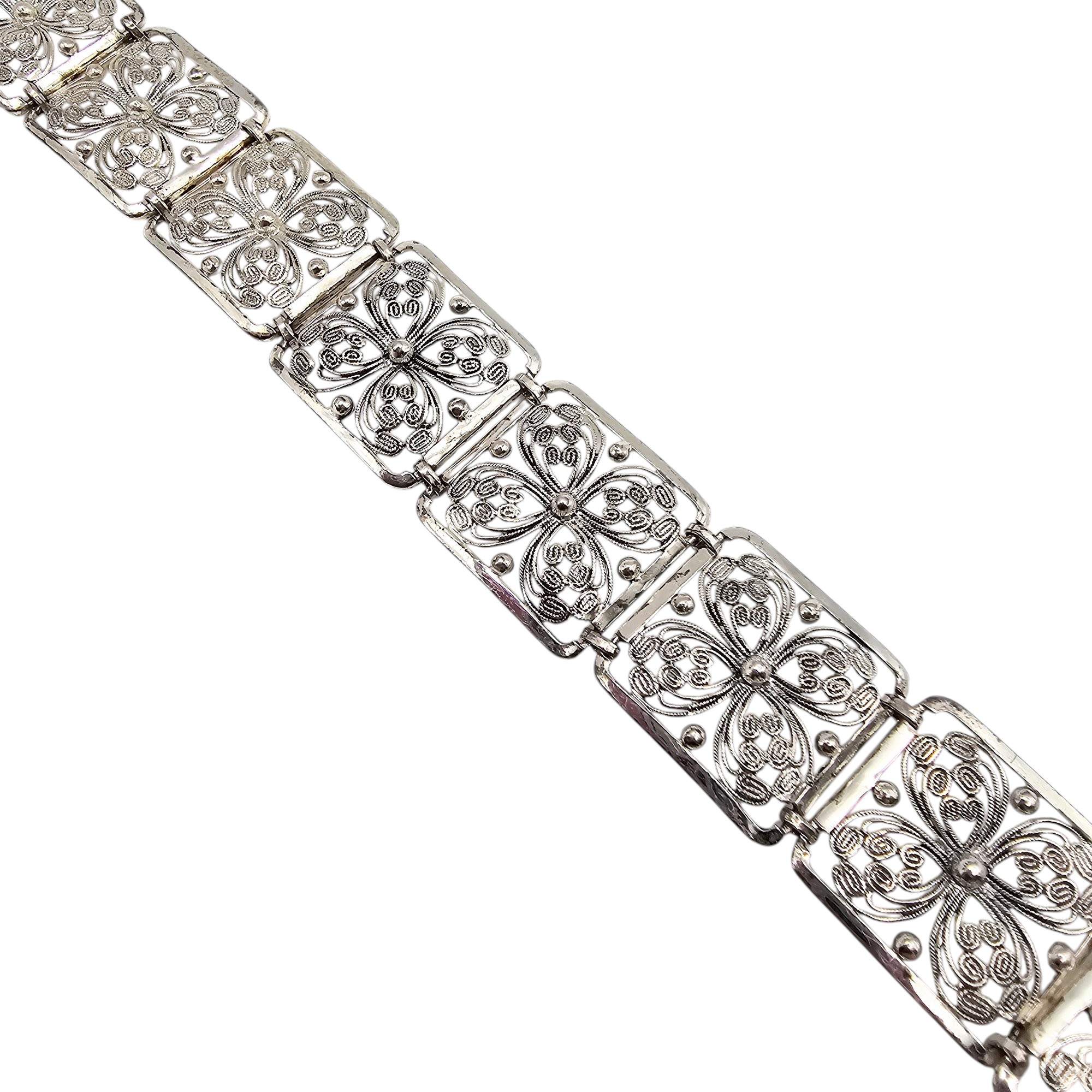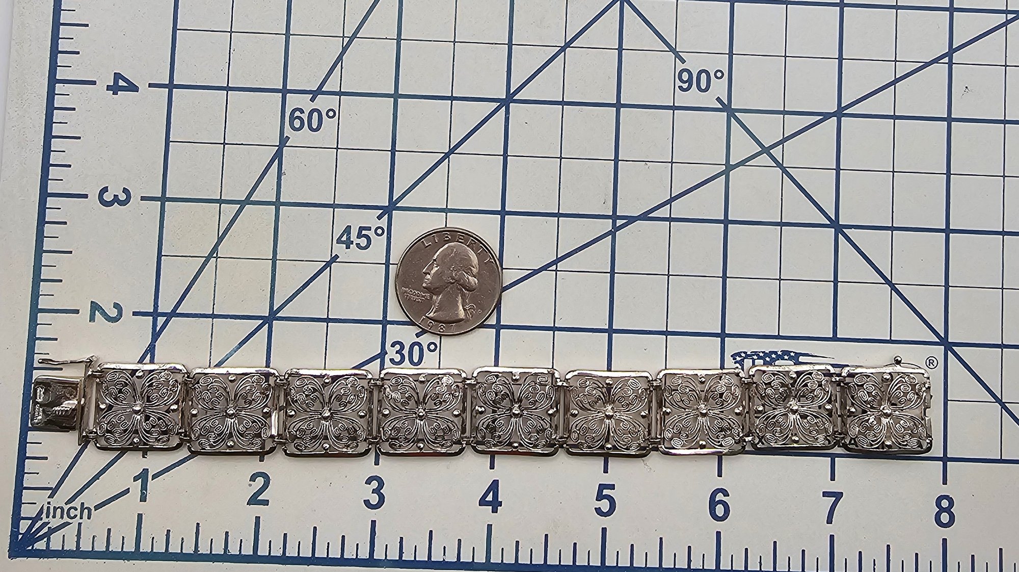 Alice Caviness Sterling Silver Filigree Floral Panel Bracelet 18.2 G