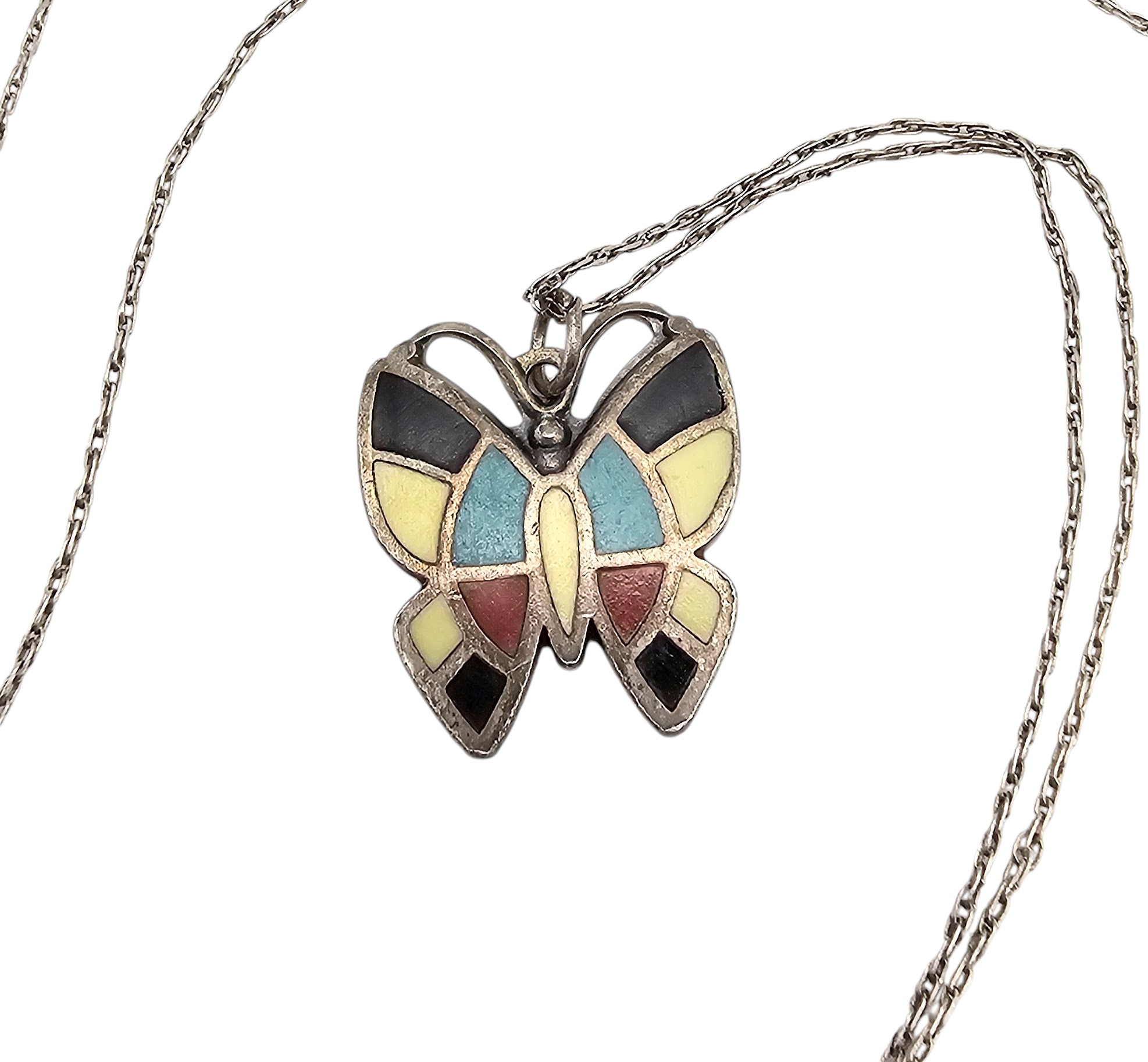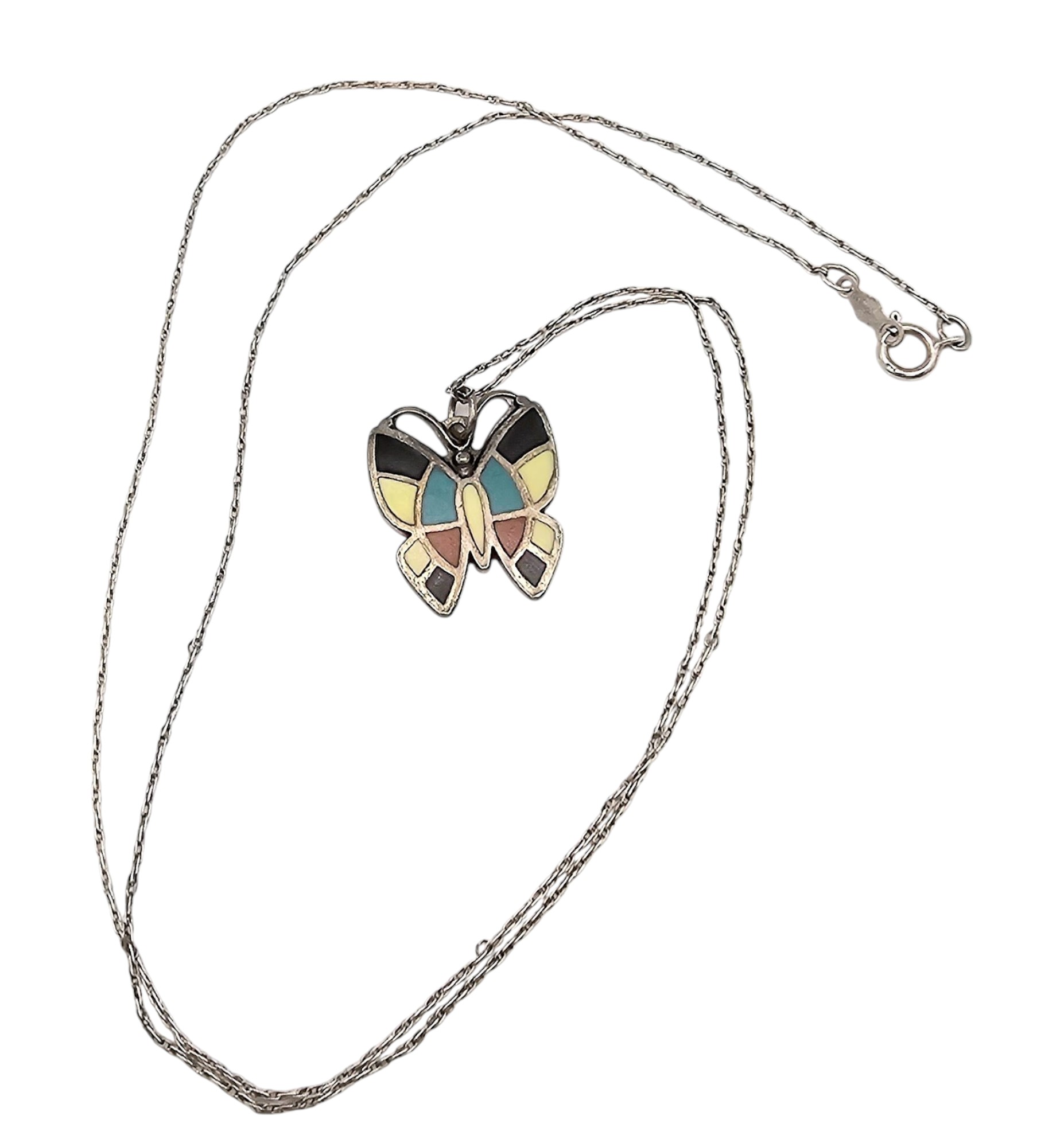 Bell Sterling Mother Of Pearl Turquoise Onyx Coral Sterling Silver Butterfly Necklace 3.1 G
