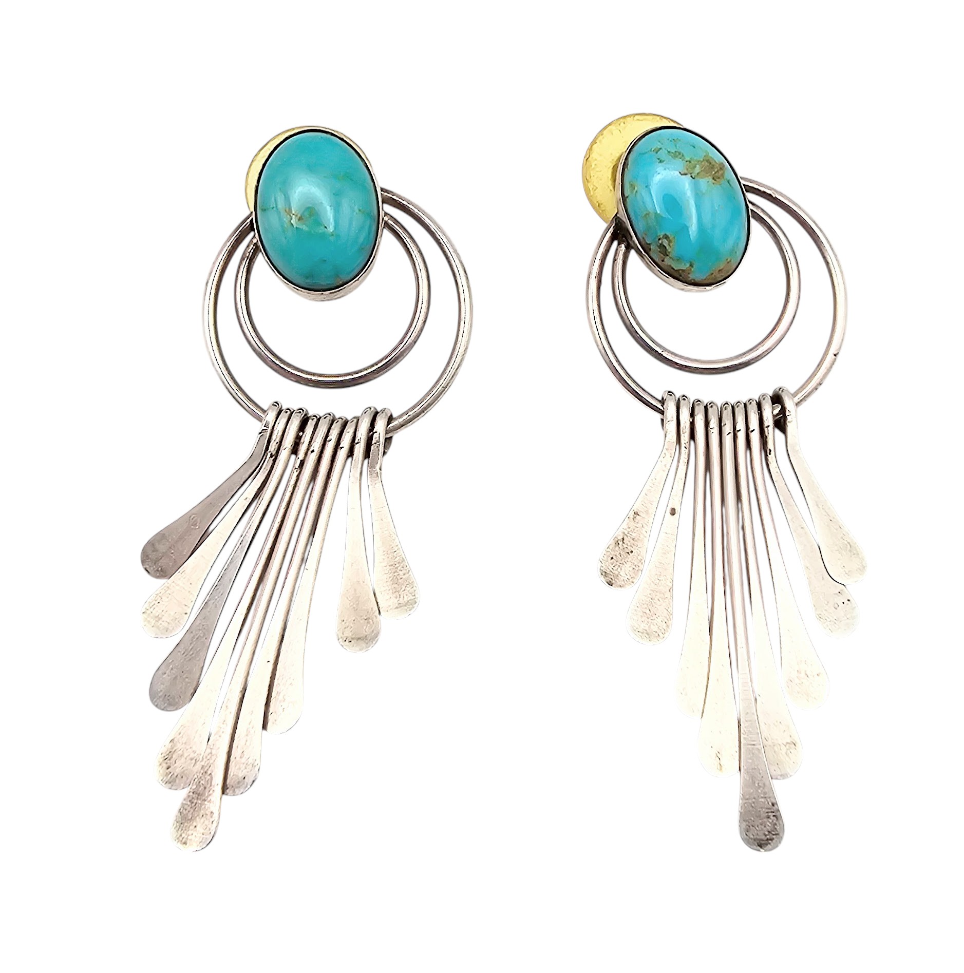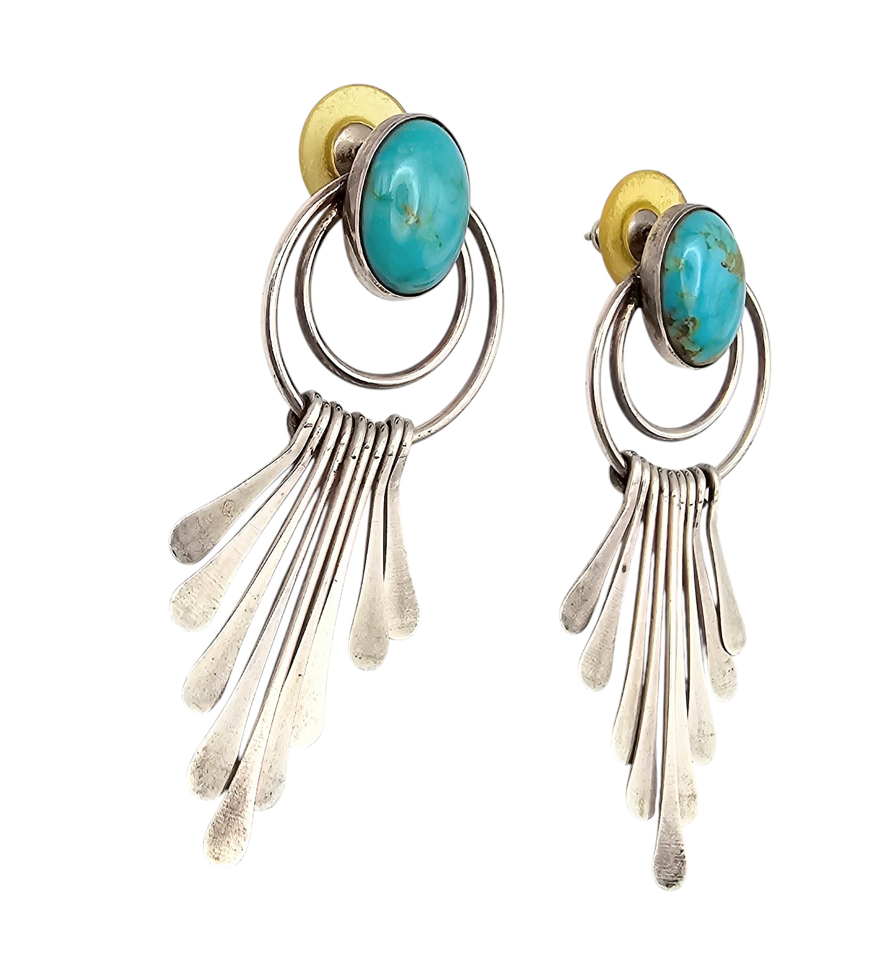 QT Quoc Trading Turquoise Sterling Silver Dangle Earrings 10.9 G