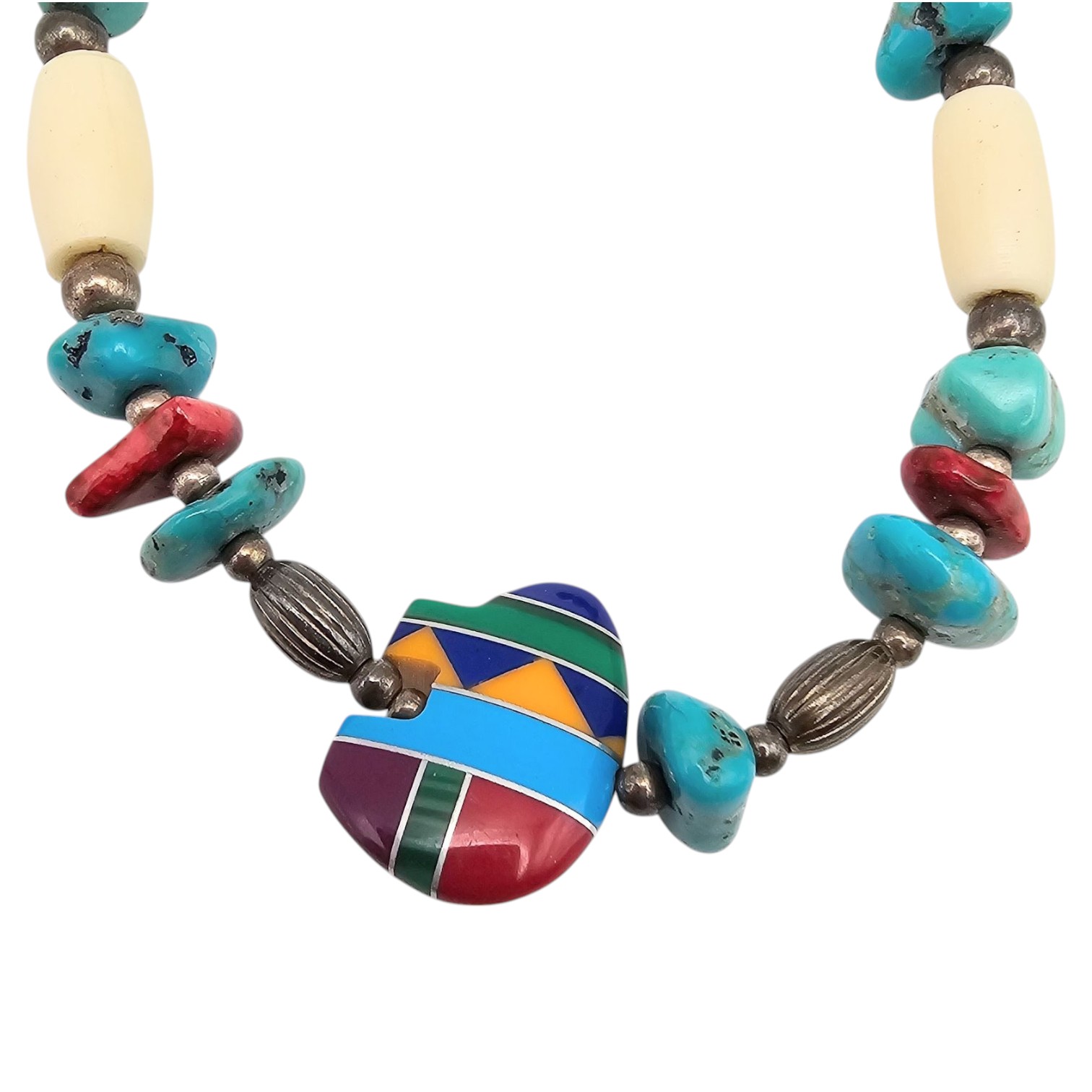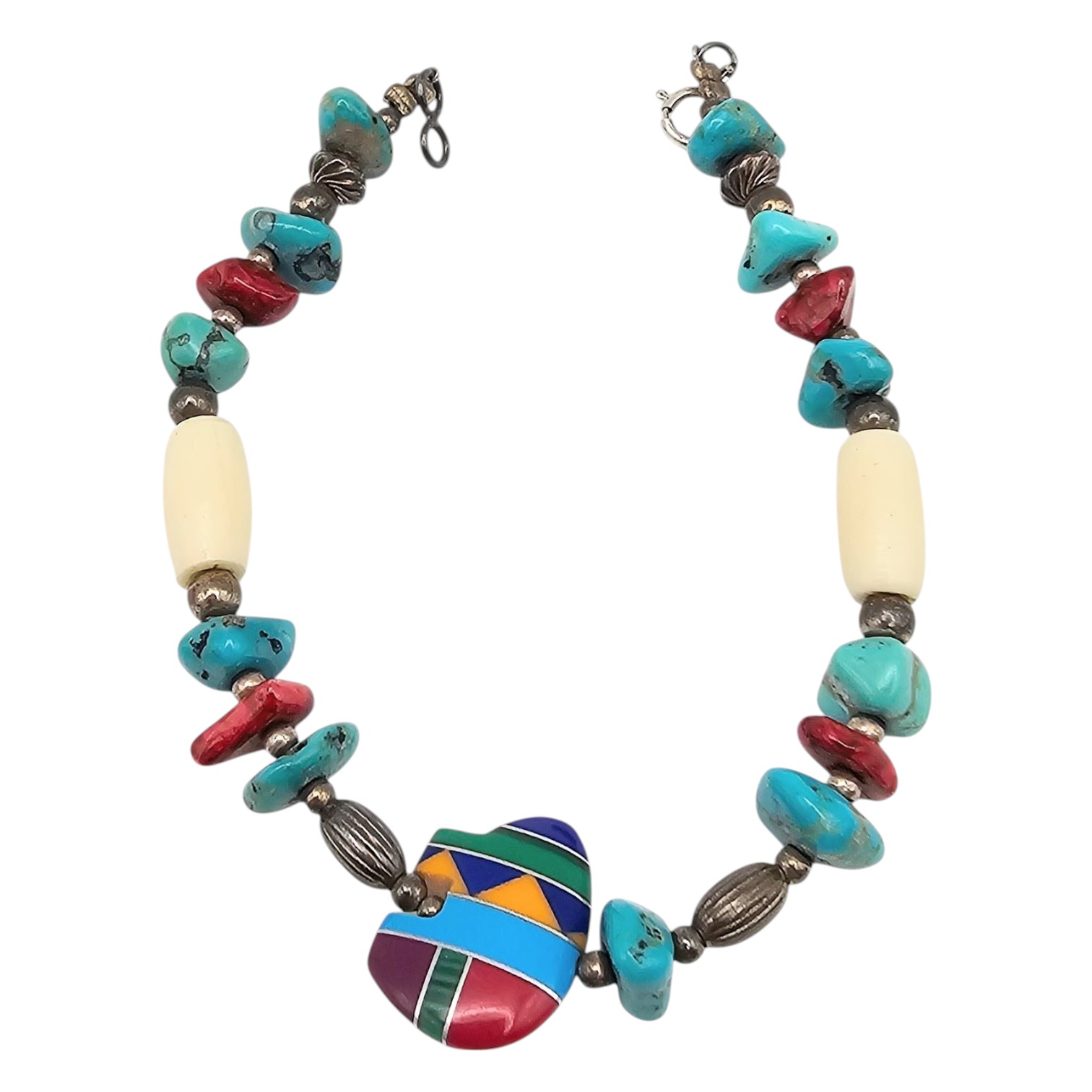 Zuni Multi Stone Sterling Silver Fetish Bear Bracelet 9.5 G