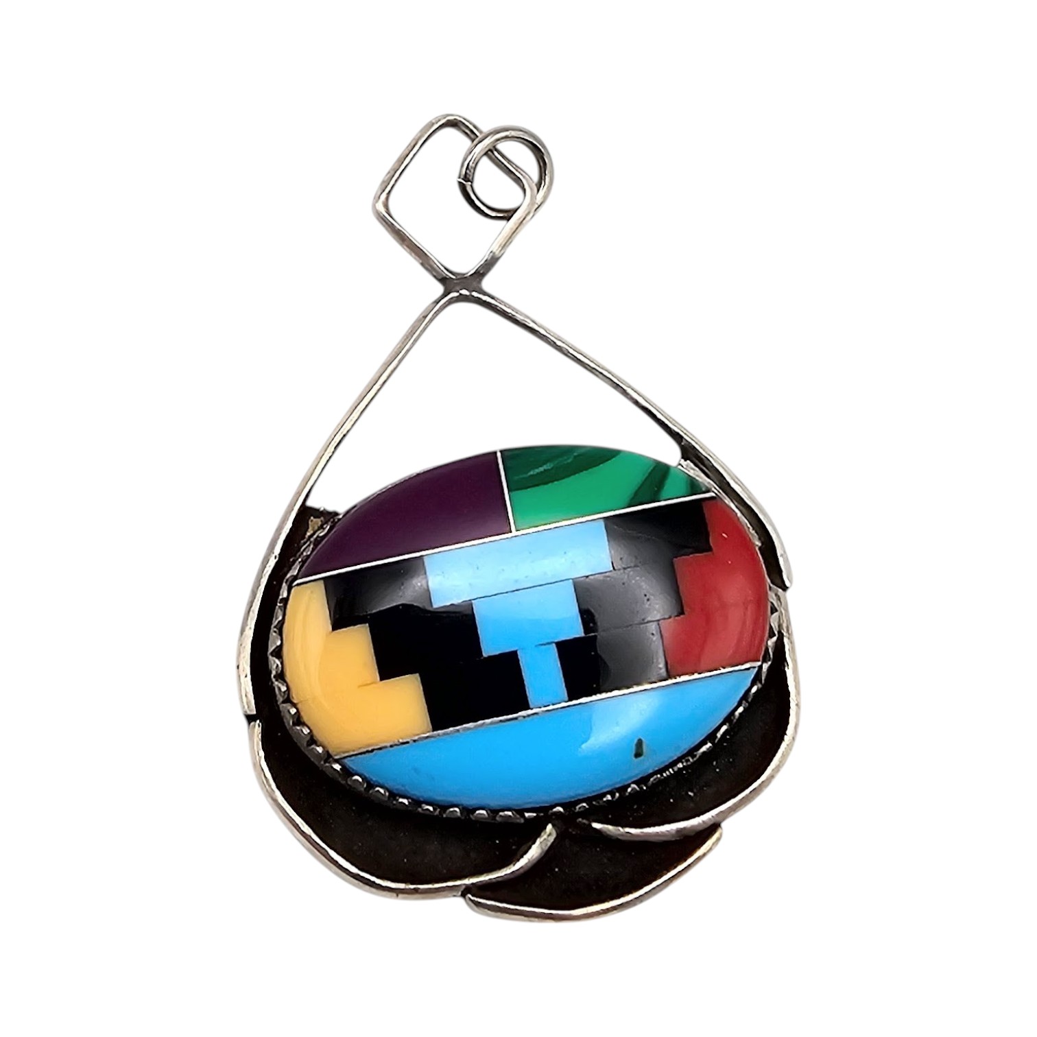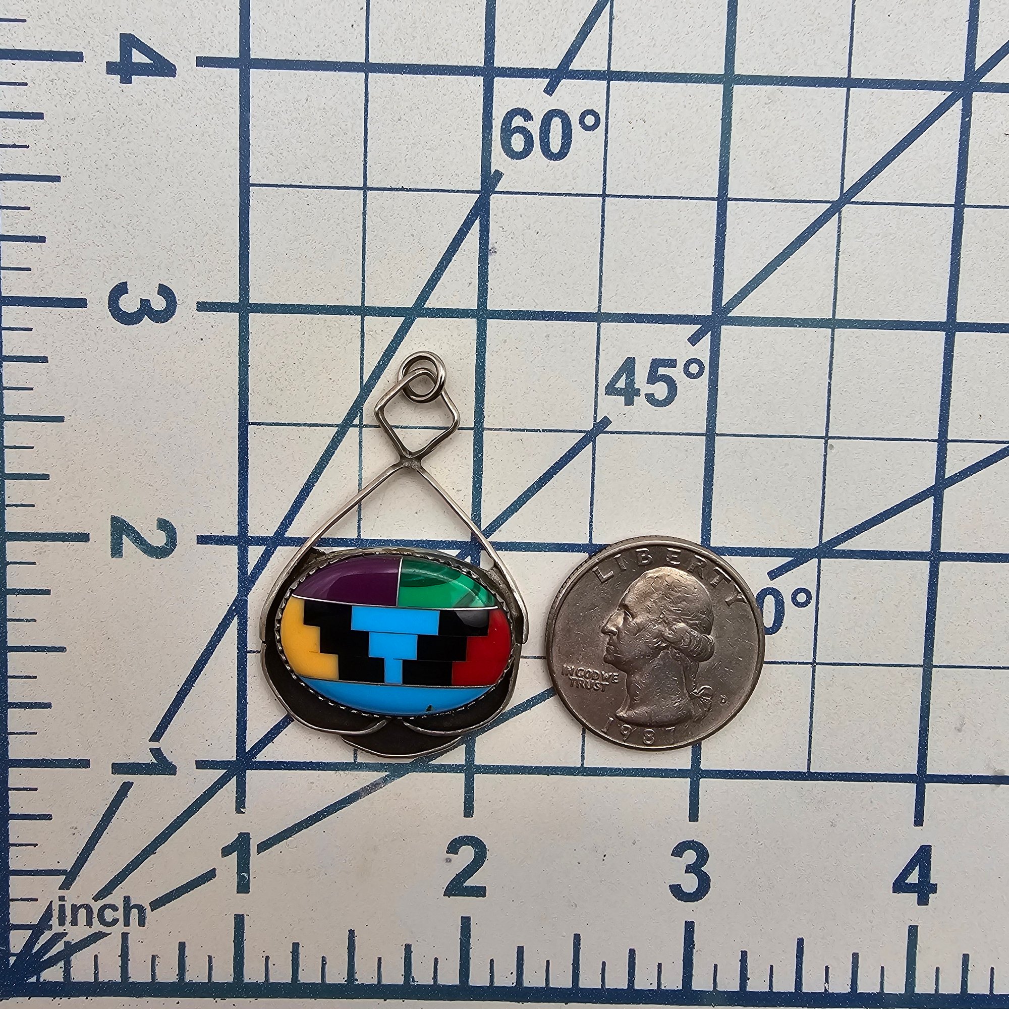 Vintage DOW Multi Gemstone Sterling Silver Pendant 6.7 G